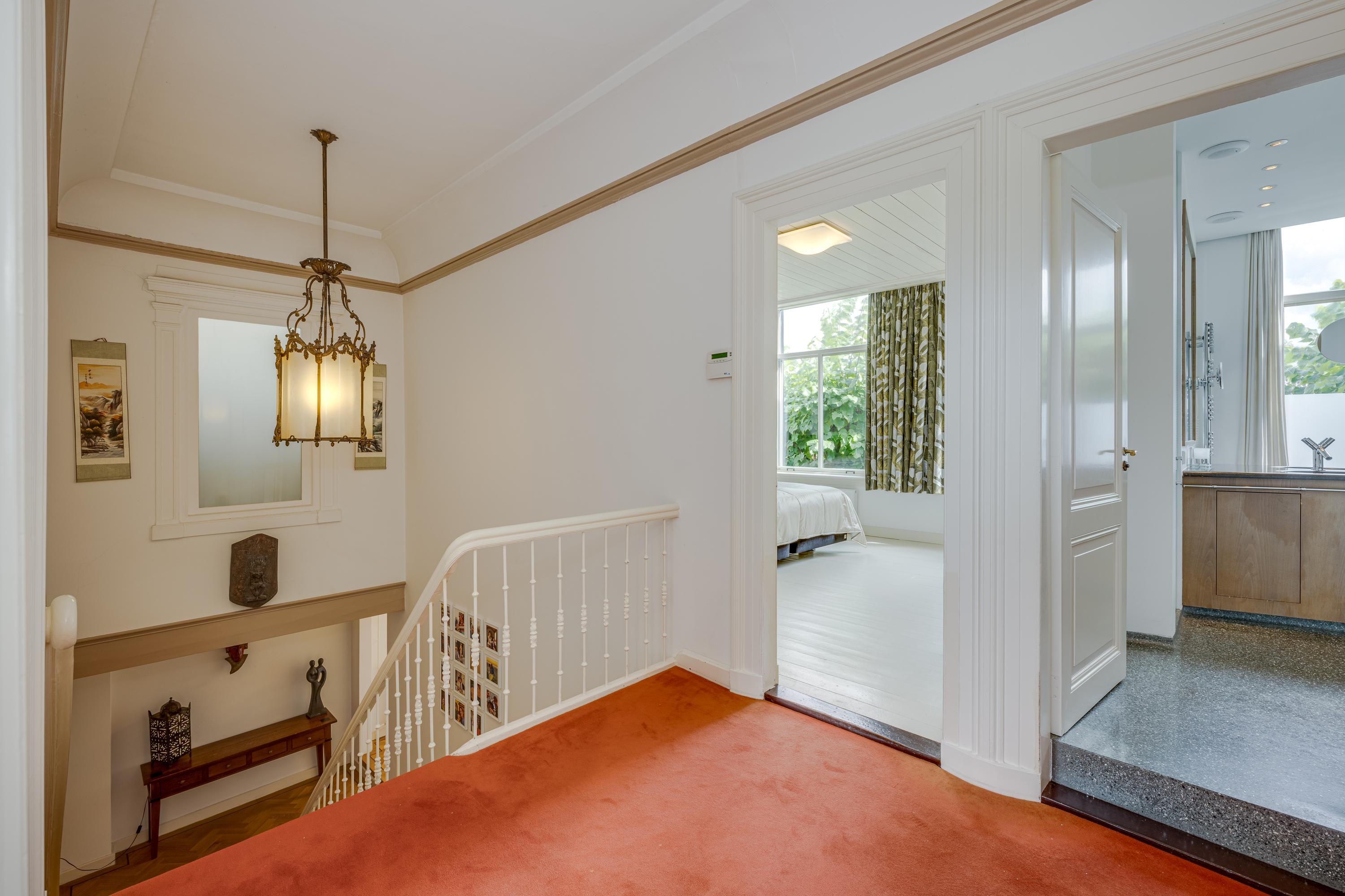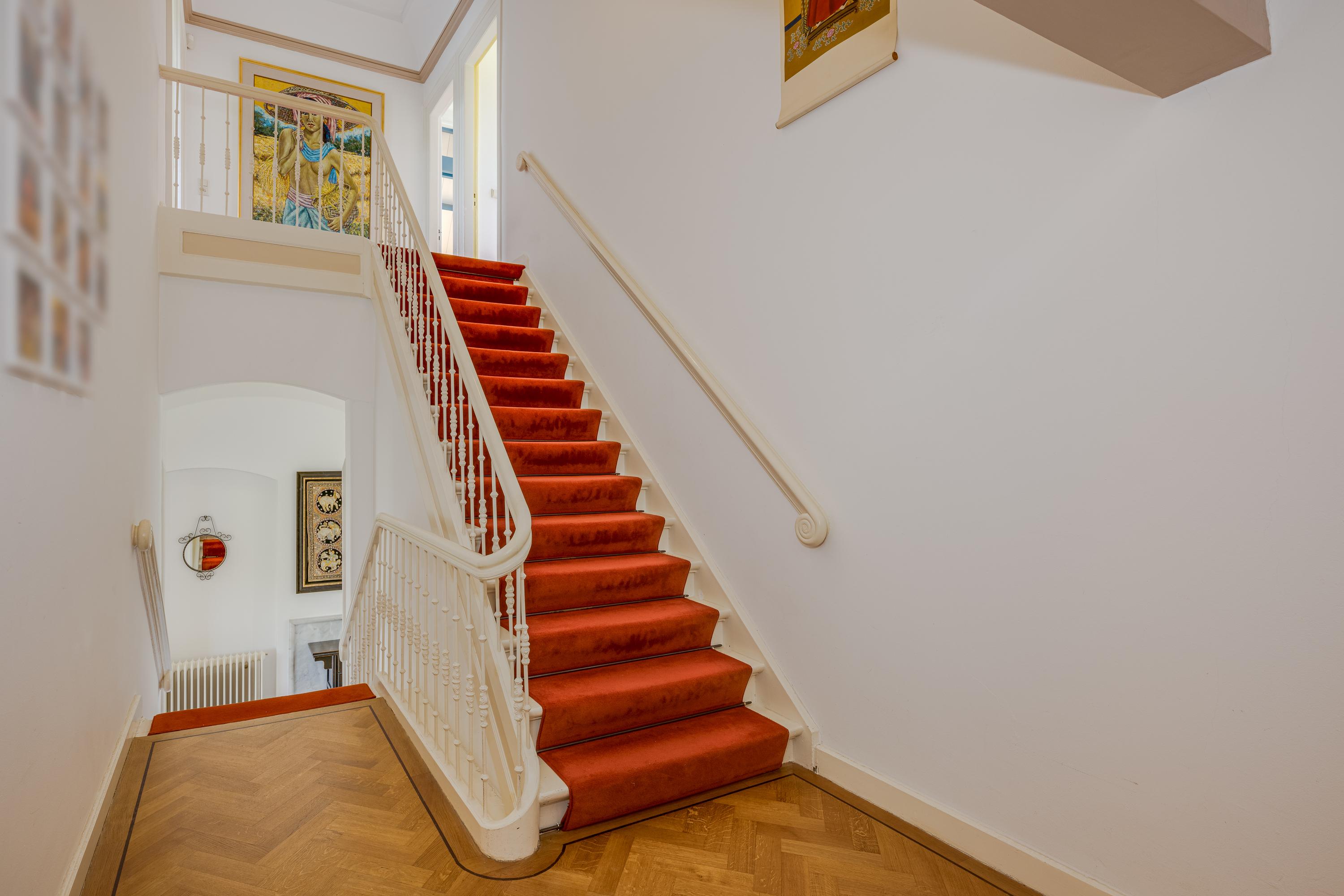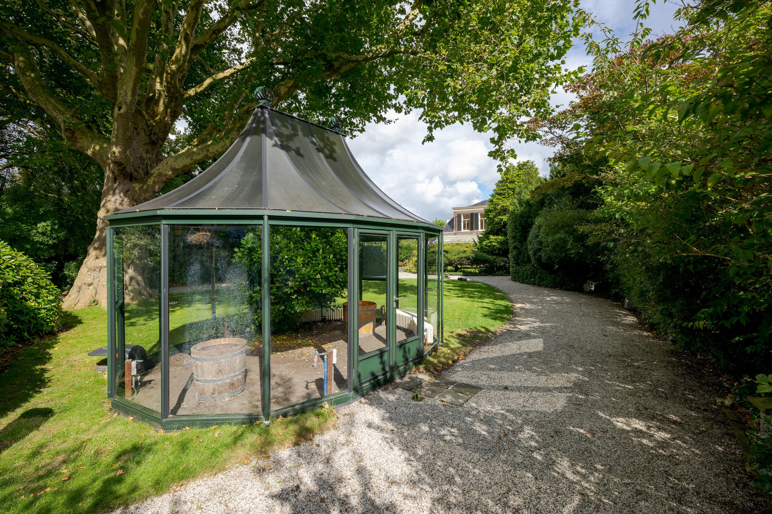 The 1995 gatehouse, designed symmetrically with glass façades and French doors, balances office and fitness space on the ground floor, with a luminous guest room above. Security, modern insulation, sustainable solar technologies, and linked alarm systems ensure discretion and peace of mind. Local amenities, shops, international schools, and the historic heart of Leiden are all within walking or cycling distance, while the A4’s swift connections link city, coast, and airport.