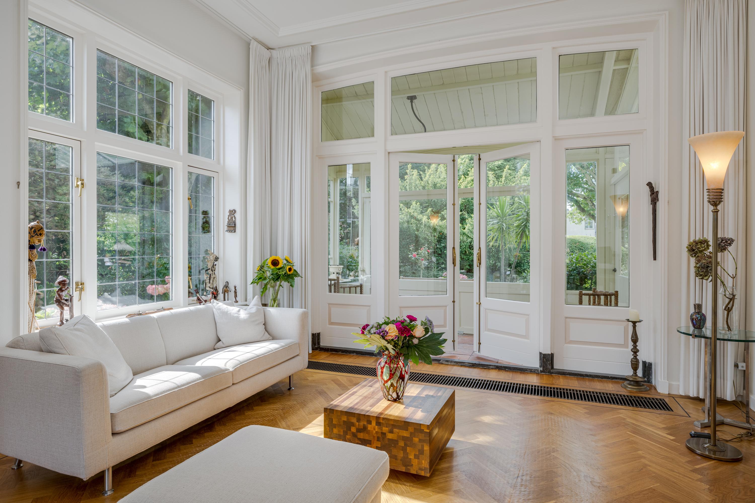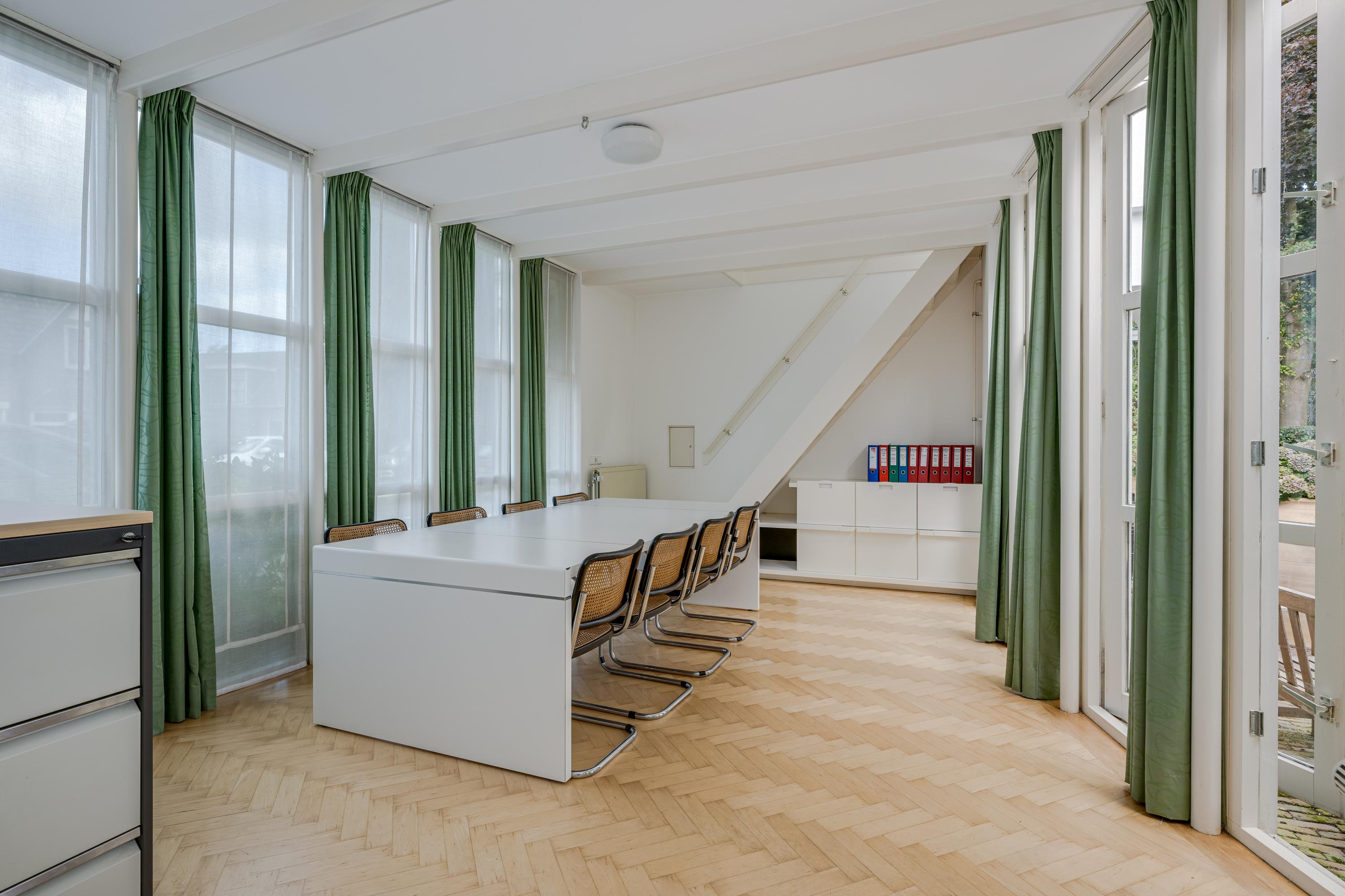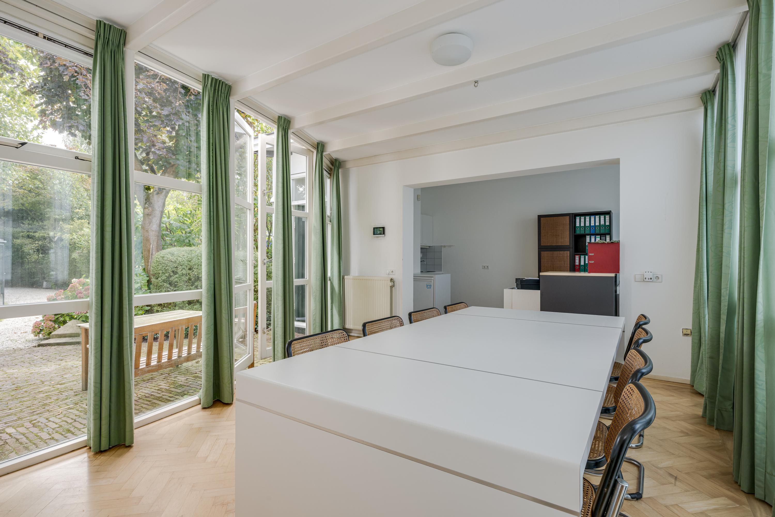 The 1995 gatehouse, designed symmetrically with glass façades and French doors, balances office and fitness space on the ground floor, with a luminous guest room above. Security, modern insulation, sustainable solar technologies, and linked alarm systems ensure discretion and peace of mind. Local amenities, shops, international schools, and the historic heart of Leiden are all within walking or cycling distance, while the A4’s swift connections link city, coast, and airport.
