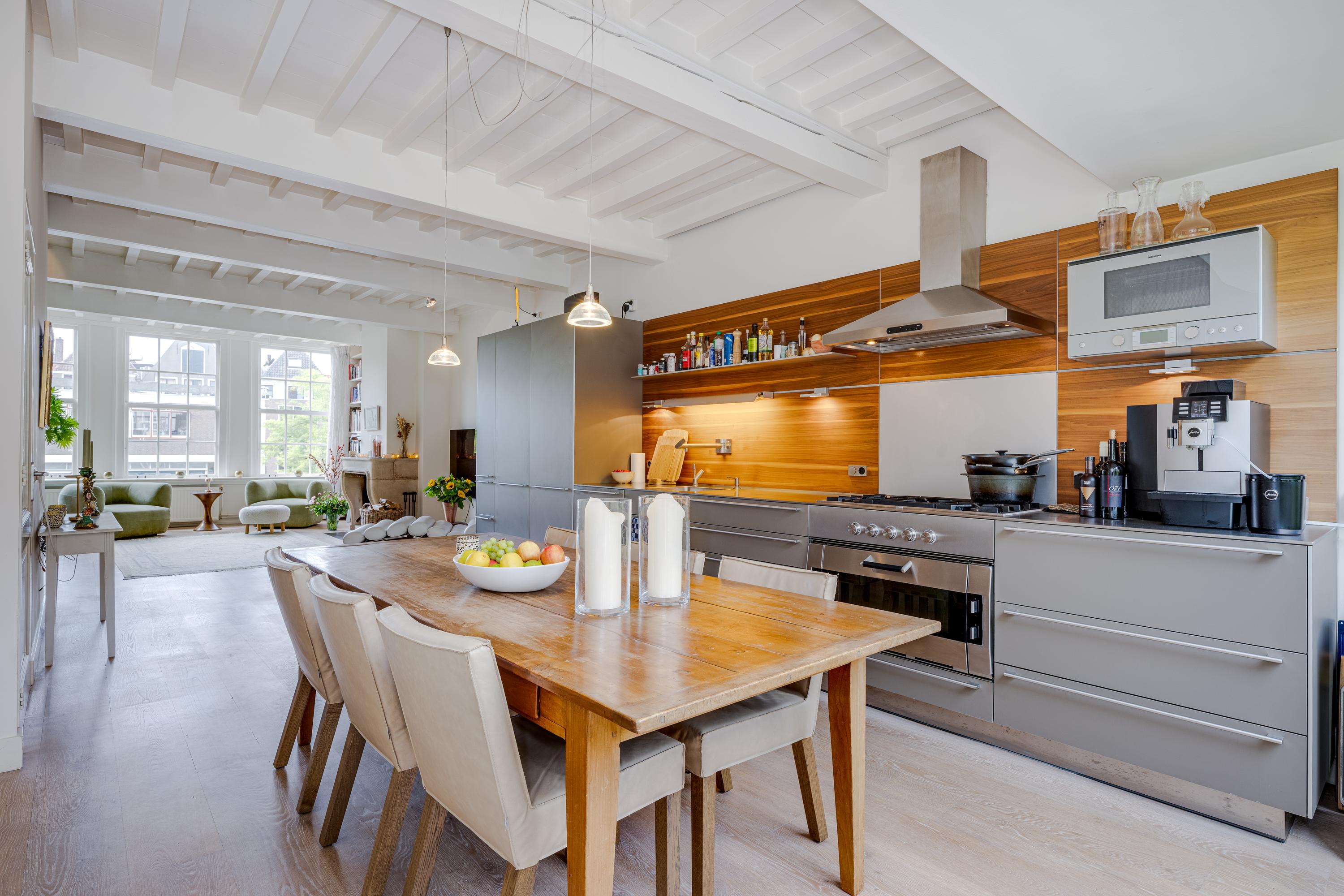 What also makes this property unique is the remarkable combination of a stately, classic façade on the canal side (three windows wide, facing south) and a surprisingly spacious rear garden of over nine meters. On the first floor, at the heart of the house, lies a colorful courtyard garden, and a dozen steps up, a spacious and sunny roof terrace with plenty of privacy and several seating areas.