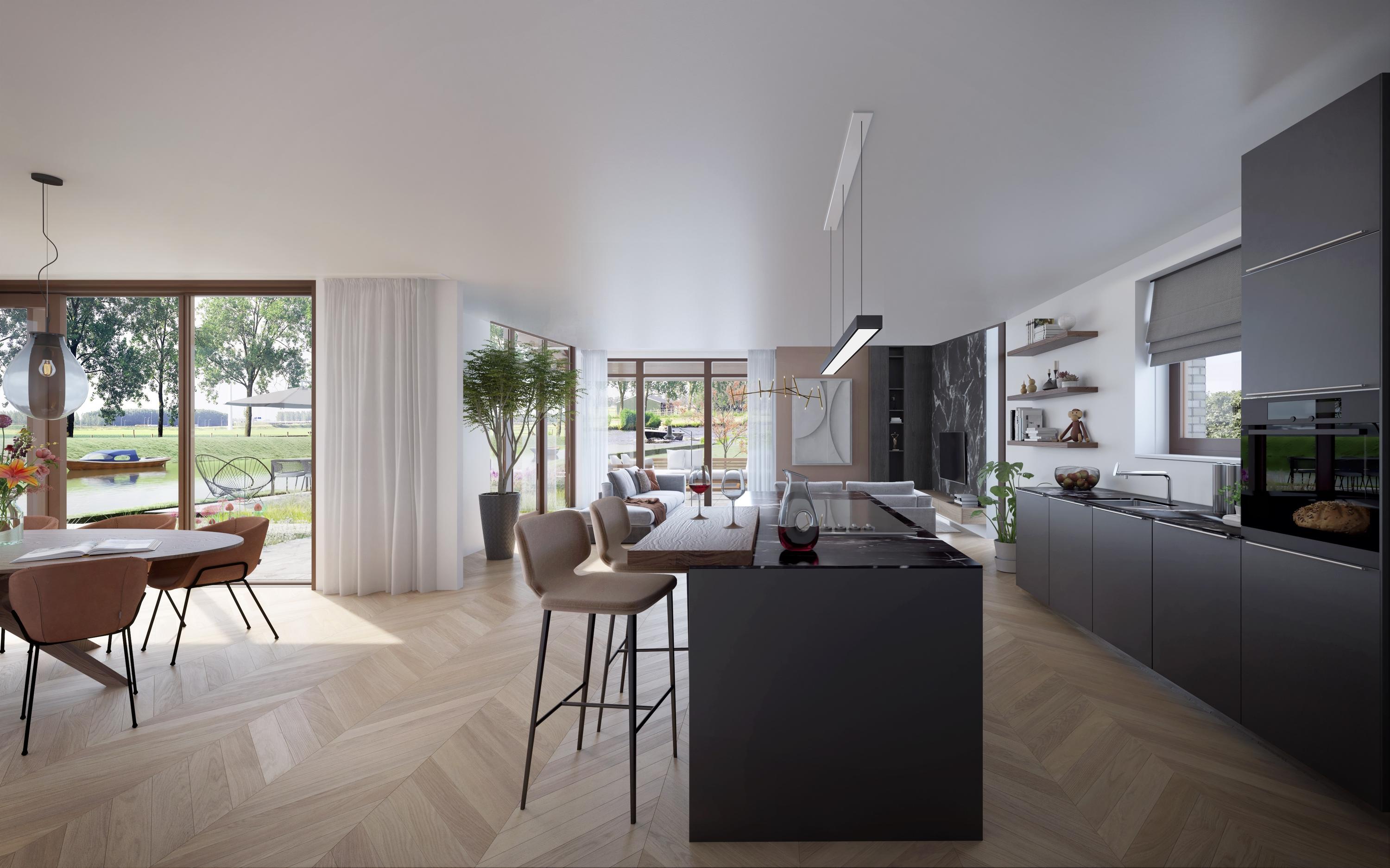 With this extended villa, it all starts outside: on the spacious plot with water on two sides, the sunlight that beautifully surrounds it, and the views over the waterway and meadows. You immediately feel that this is a place you love to come home to.