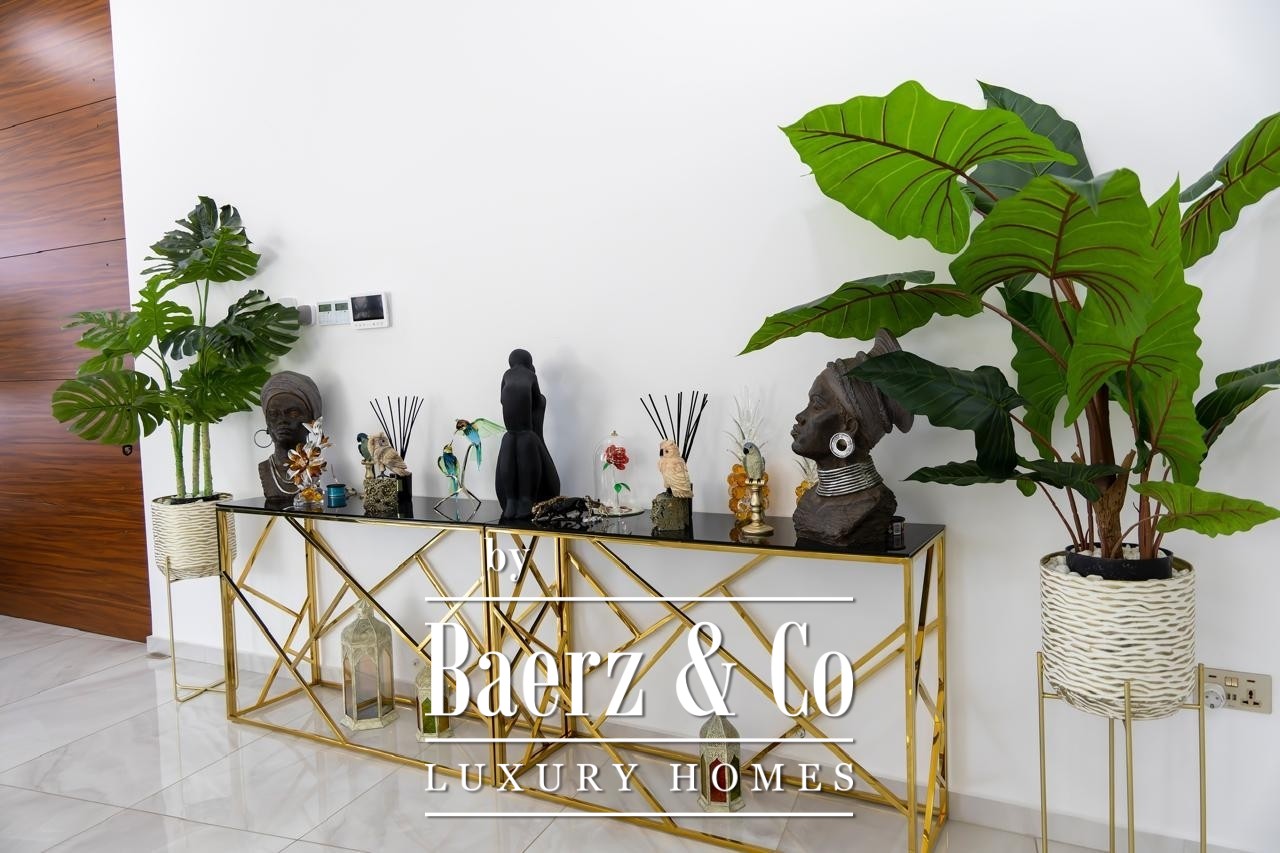 Crafted with elevated ceilings and fluid spatial transitions, the villa is arranged across two principal floors plus a full basement. Seven bedrooms are distributed for privacy and comfort, with five en-suite master suites, a guest room and separate housekeeper’s accommodation. Living spaces are defined by natural light and curated furnishings, underscored by premium finishes and a purposeful layout. Integrated smart home automation, underfloor heating and a VRV climate control system approach modern convenience with understated precision. A private cinema room and full CCTV security further express a discreet take on elite living.