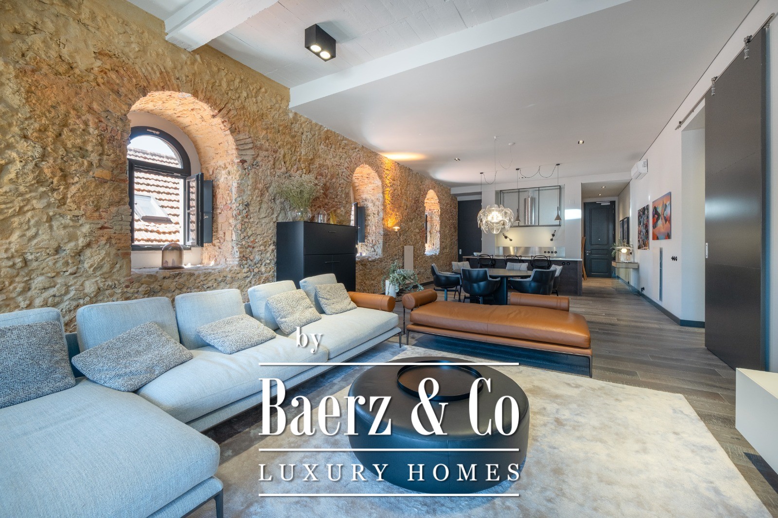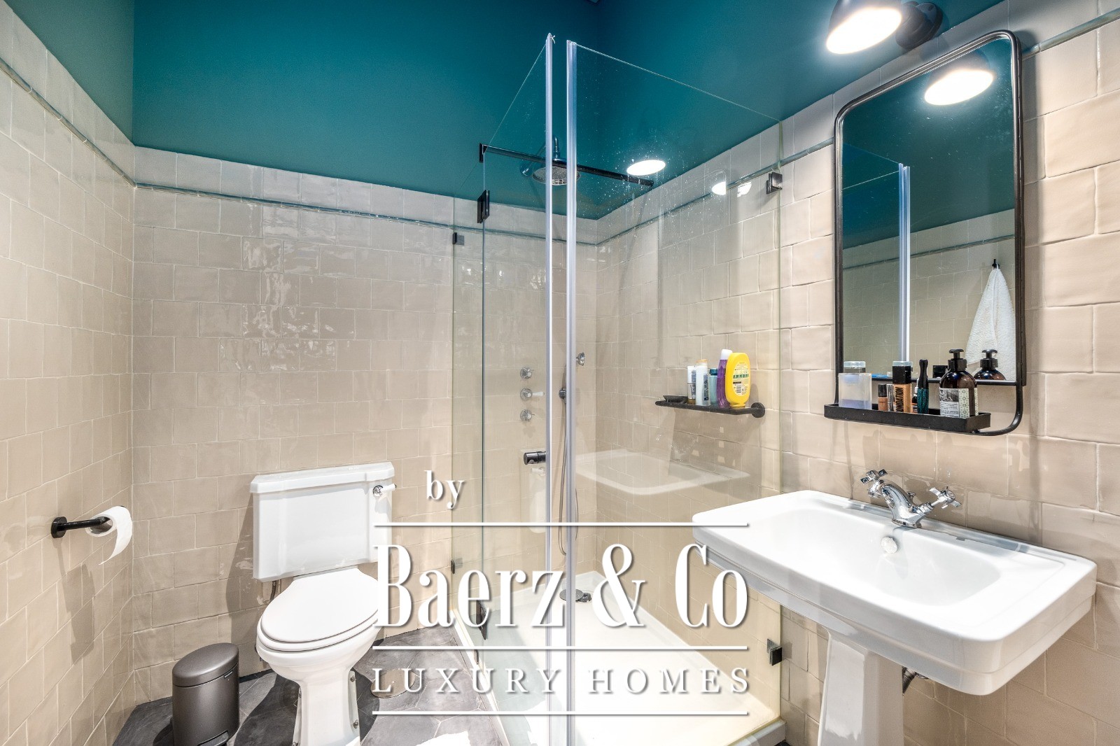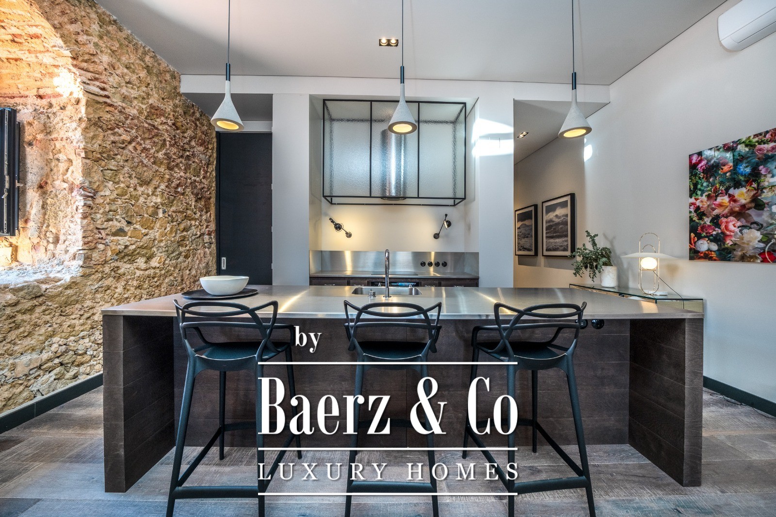 Located on a quiet cul-de-sac in Cais do Sodré, one of Lisbon’s most vibrant and historic neighborhoods, this 173 m² two-bedroom apartment offers a loft-style design with a distinct contemporary touch. Set on the second floor of a 19th-century building with elevator access, it underwent a full renovation in 2019 with meticulous attention to detail and high-quality materials.The generous living area impresses with 3.7 m high ceilings, a striking 14 m exposed stone wall, and large arched windows that fill the space with natural light thanks to its south and east orientation. The kitchen is seamlessly integrated with the living room, combining design and functionality with stainless steel countertops, oak cabinetry, and statement lighting.The living experience extends