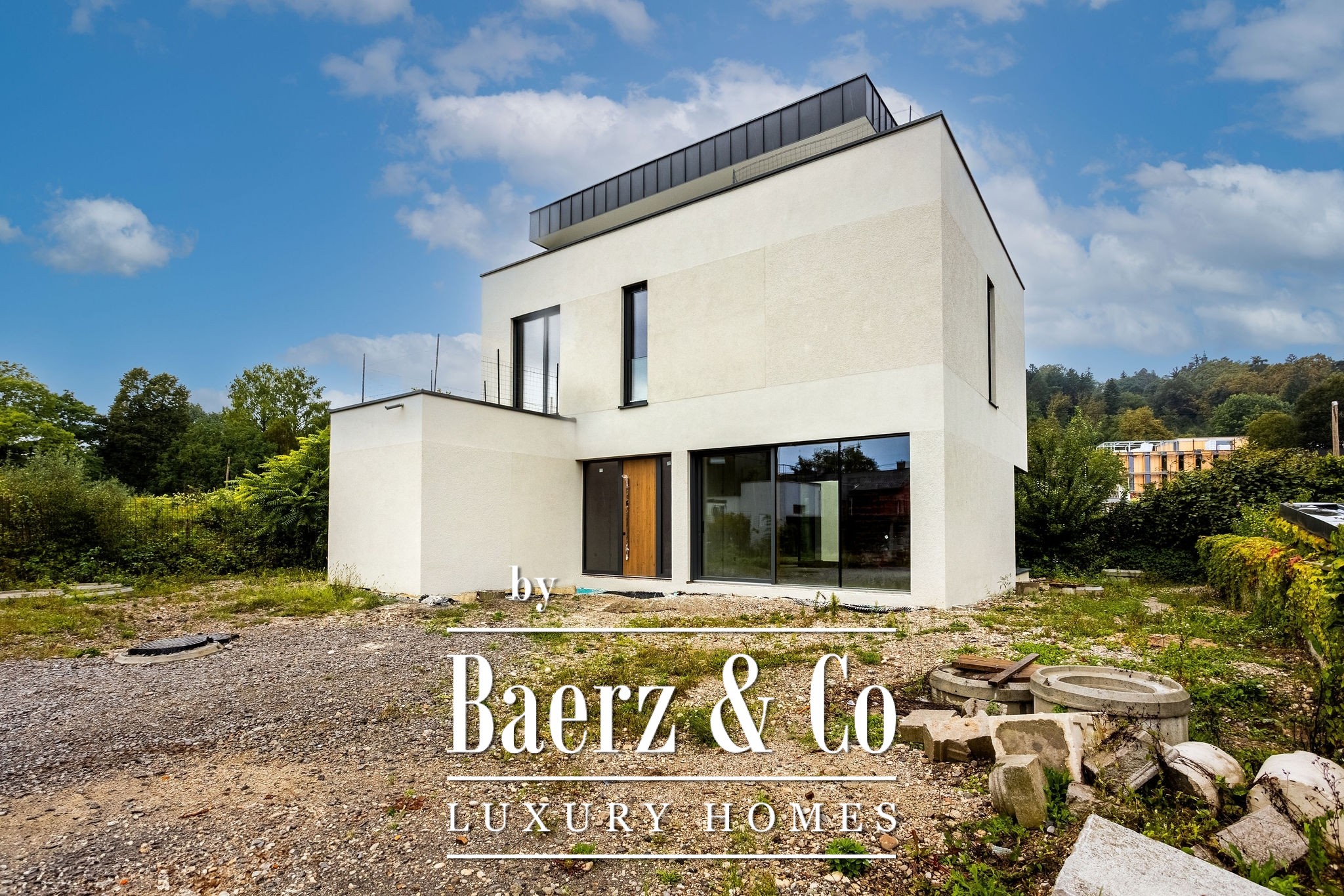 In one of the most desirable and elite locations in Ljubljana, in the heart of Rožna Dolina, a spacious and bright villa in the extended third construction phase is for sale. With its contemporary architecture, high ceilings, and panoramic windows, it creates a sense of space, airiness, and openness towards nature.