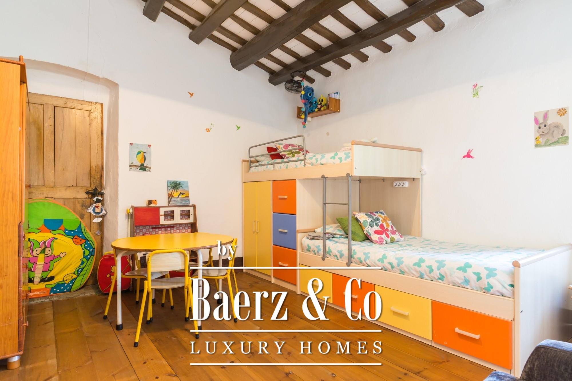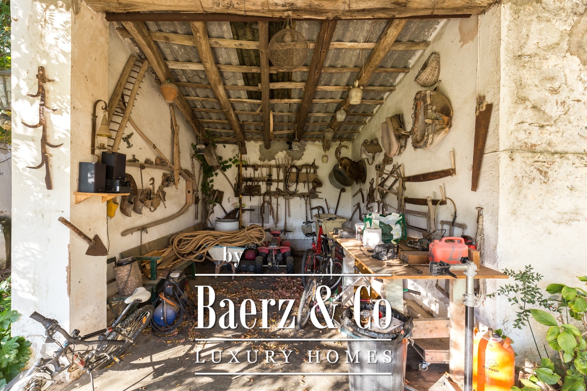 The pool is situated in an elevated location, creating a tranquil retreat within the estate’s natural rhythm. An elegant driveway approaches the property, where a garage enhances convenience. Opportunity exists for bespoke refinement within spaces ready for renovation, suited both for residential use or as an exclusive retreat. This farmhouse for sale in Llagostera is poised between history and possibility, in the heart of inland Costa Brava.