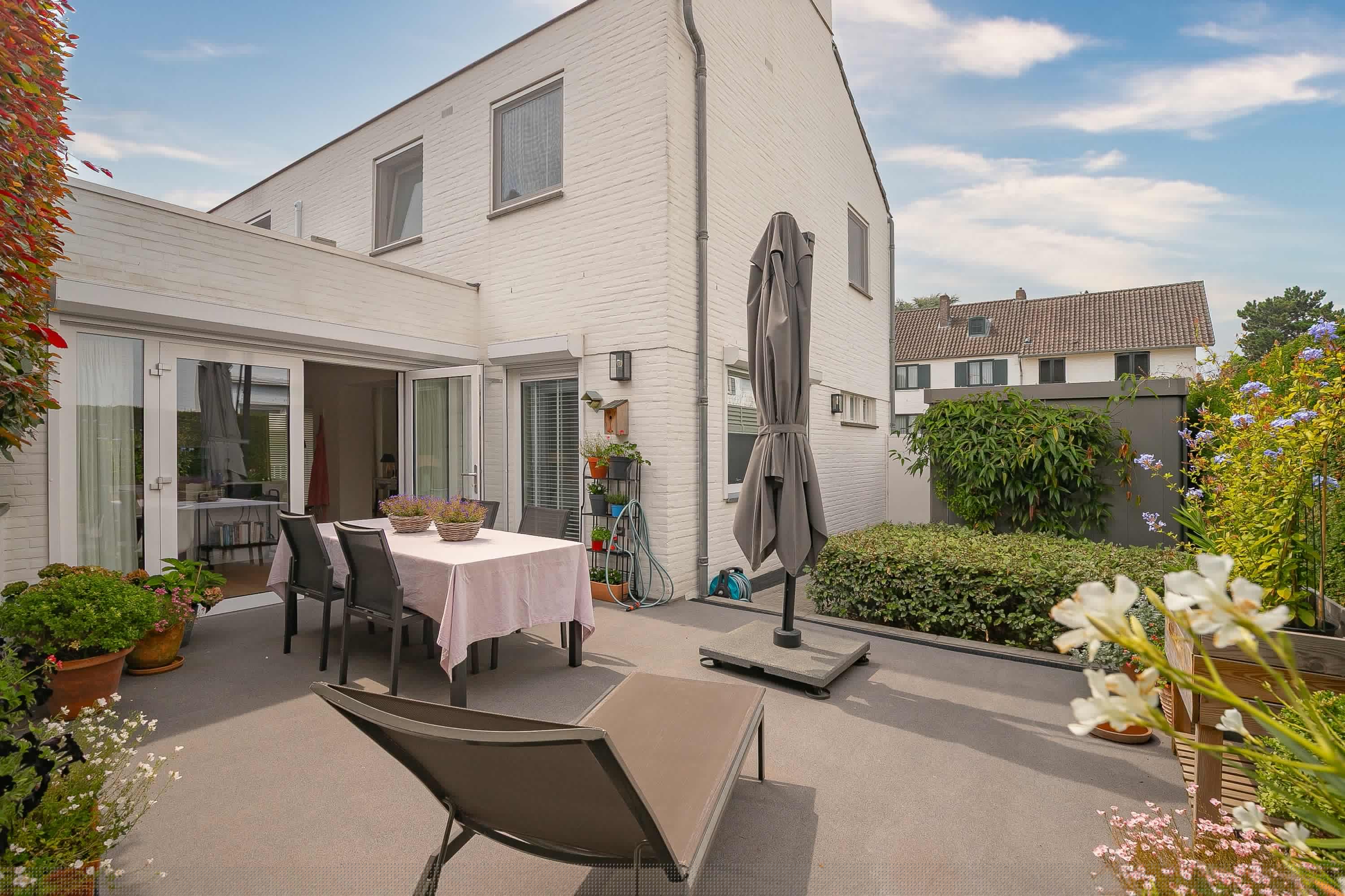 The beautifully landscaped and enclosed city garden faces northeast and offers plenty of privacy. Thanks to the awning, the garden forms a natural extension of the living space. At the front is an attractive front garden with evening sun. The back garden also has a practical external storage room of approx. 5.3 m². The garden also has a back entrance.