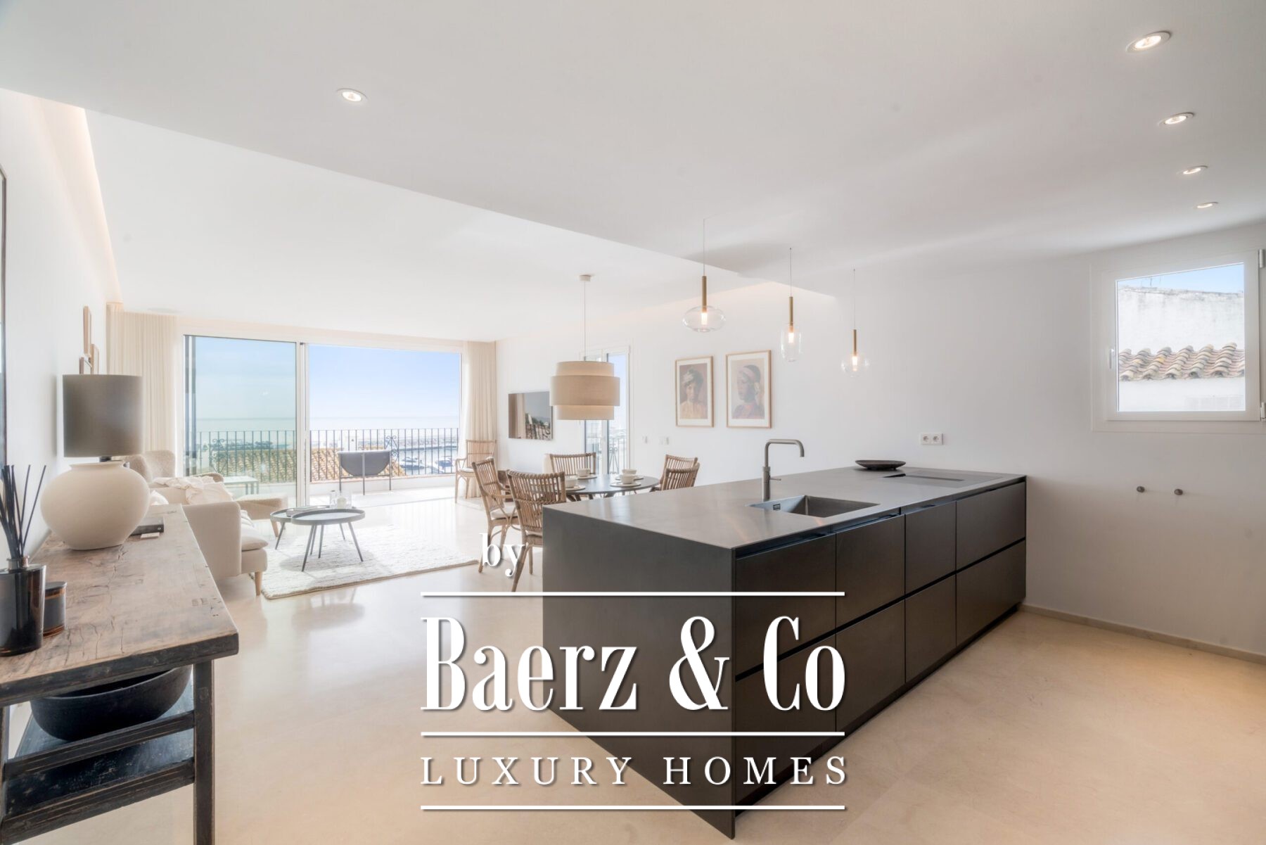 Penthouse apartment Puerto Banus Marina occupies a coveted frontline position above the Louis Vuitton flagship, in one of the most discreet and well-maintained settings in Marbella. This completely renovated 111 m² residence delivers uninterrupted sea and marina views from its elevated vantage point, just 200 metres from the beach and surrounded by renowned boutiques, restaurants, and cafés.