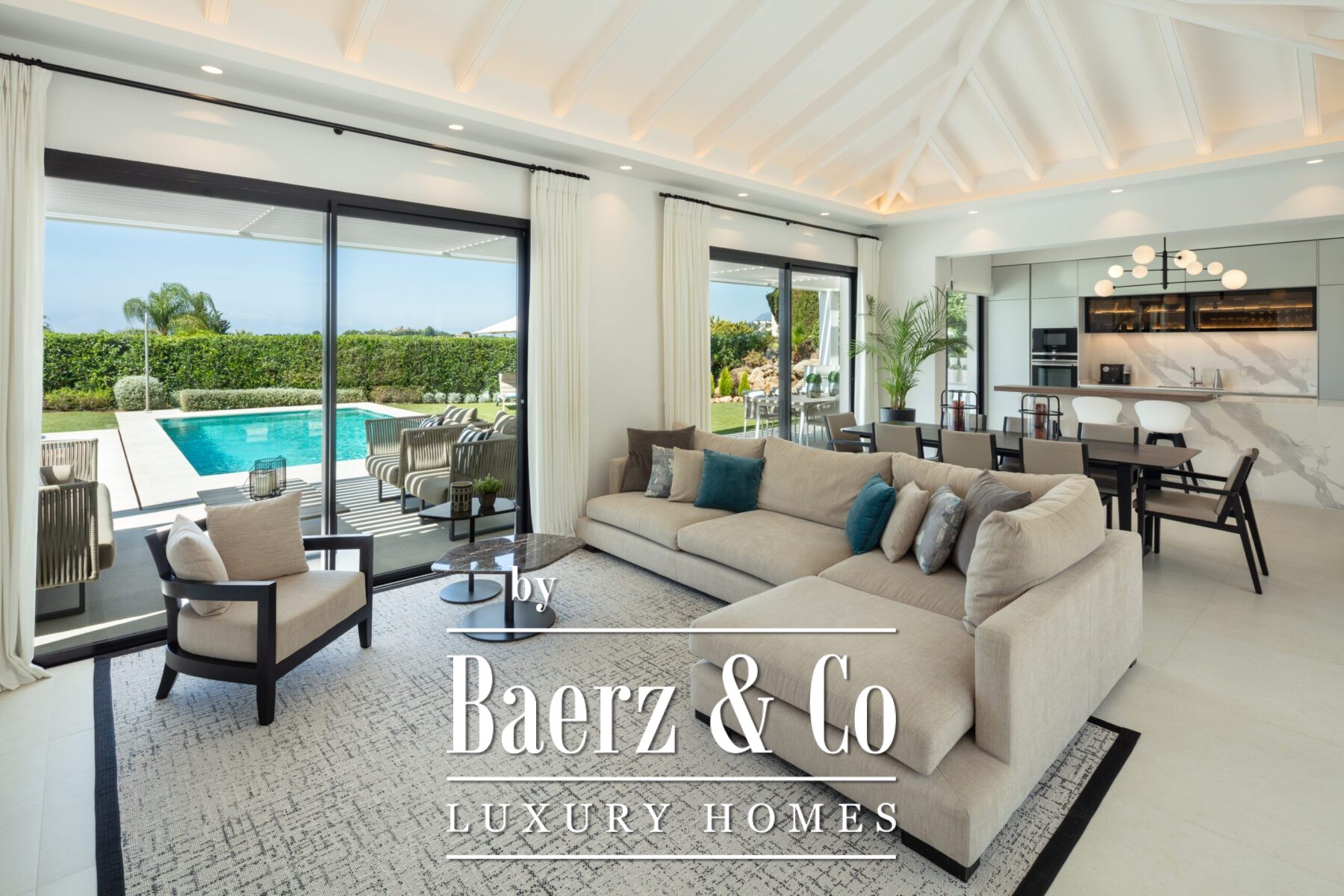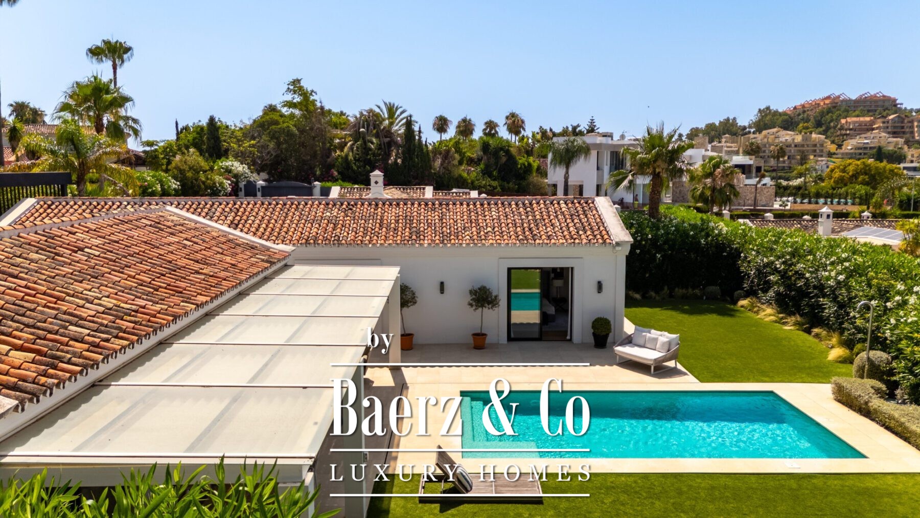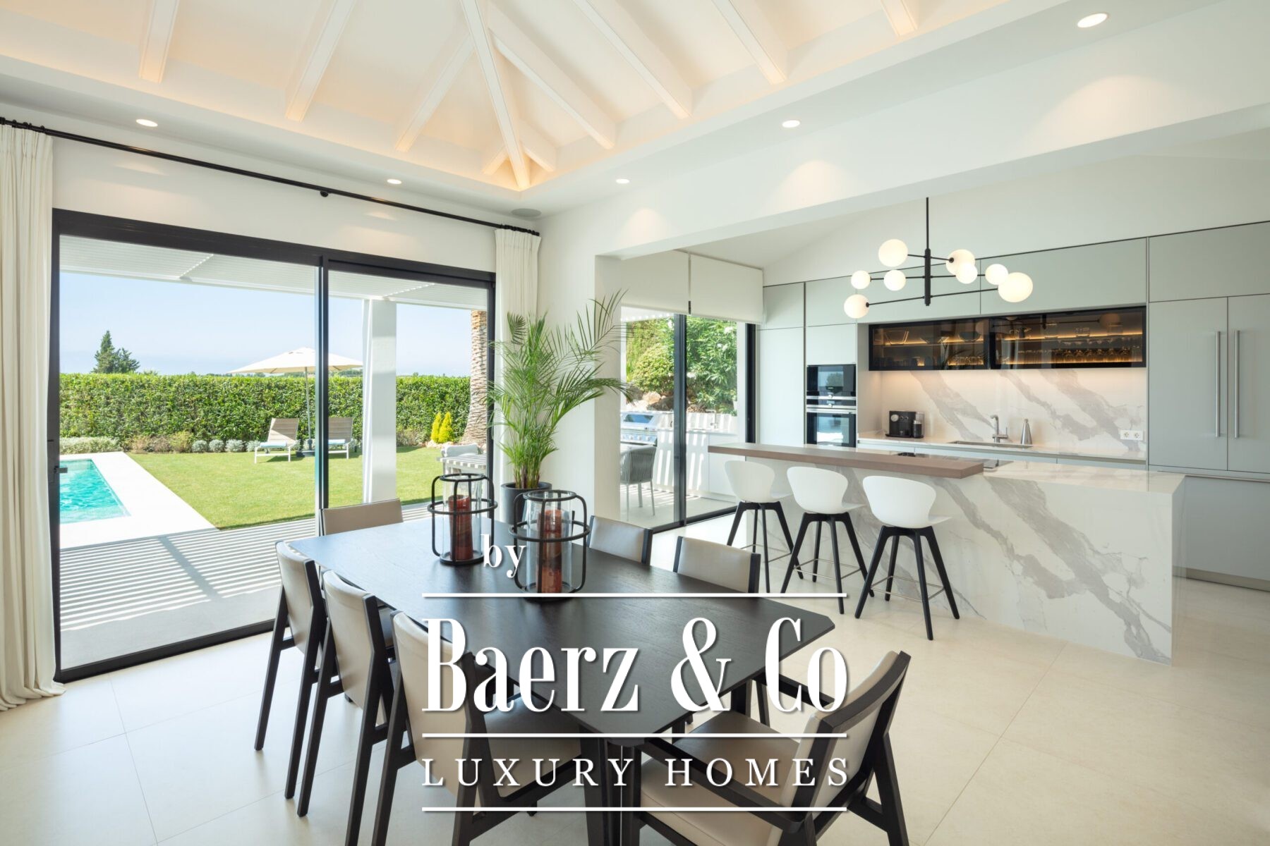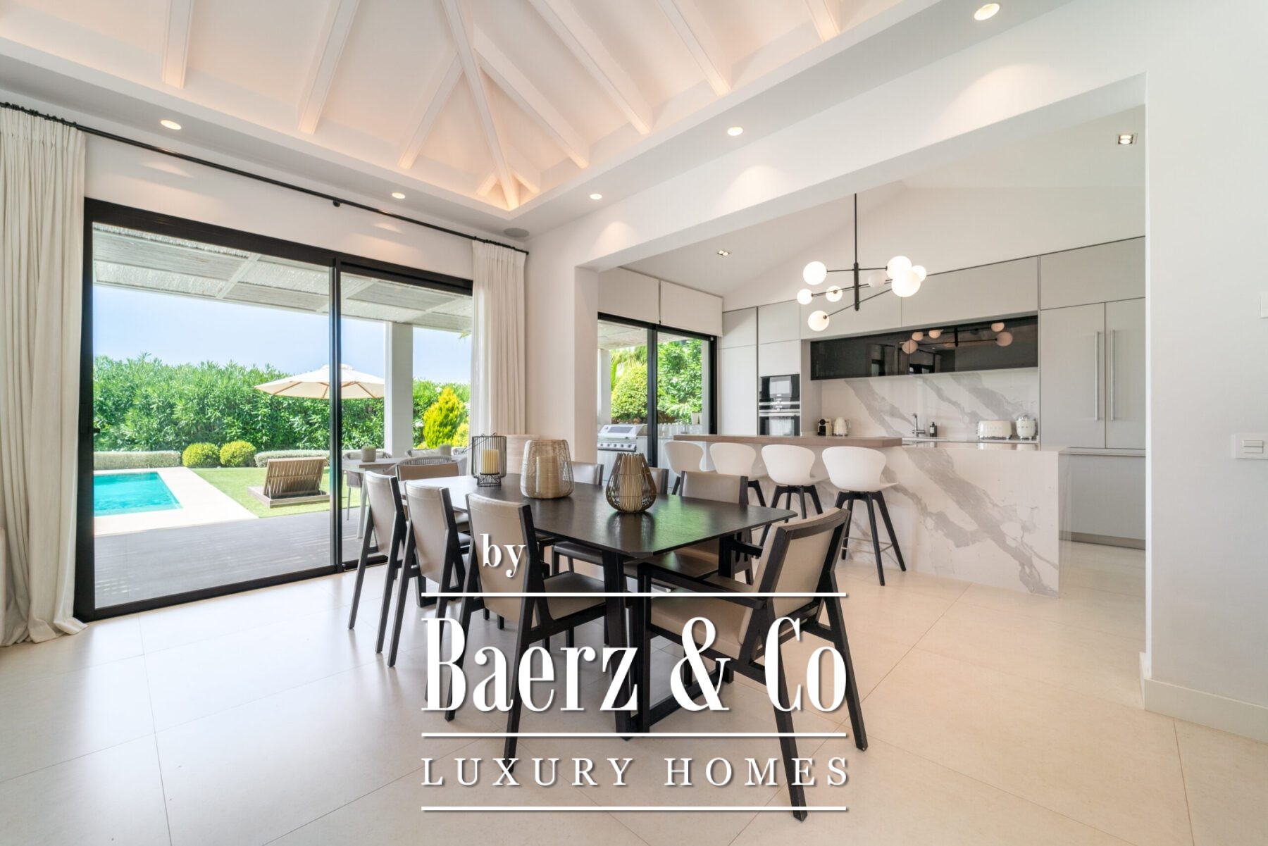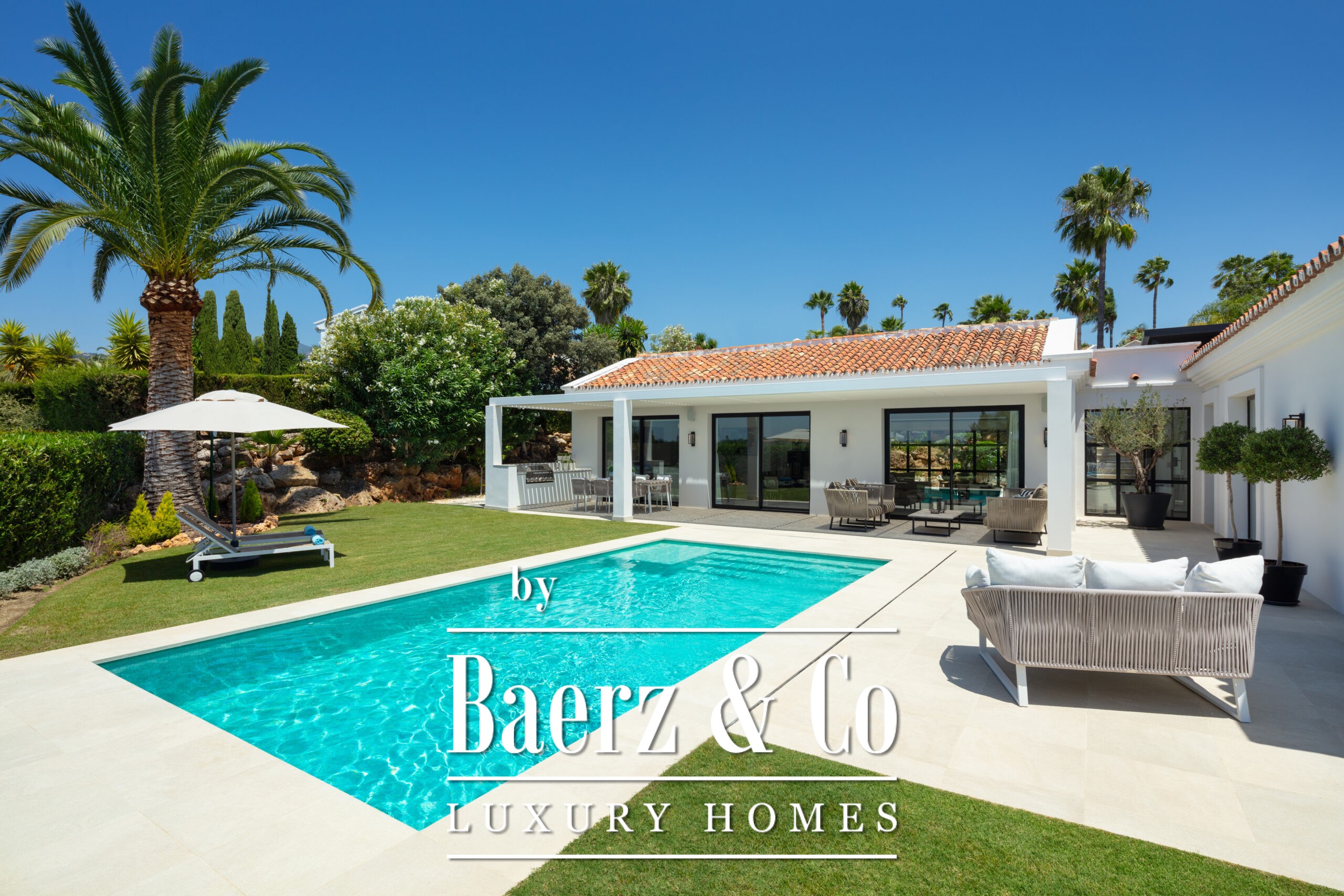 This stunning modern Andalucian villa located in boutique gated community walking distance to Los Naranjos Golf club, offers a modern internal living style, while keeping its Andalucian tiled roof and charm. This beautiful one-level villa set on a south west plot, offers incredible amounts of light and sun all day long.