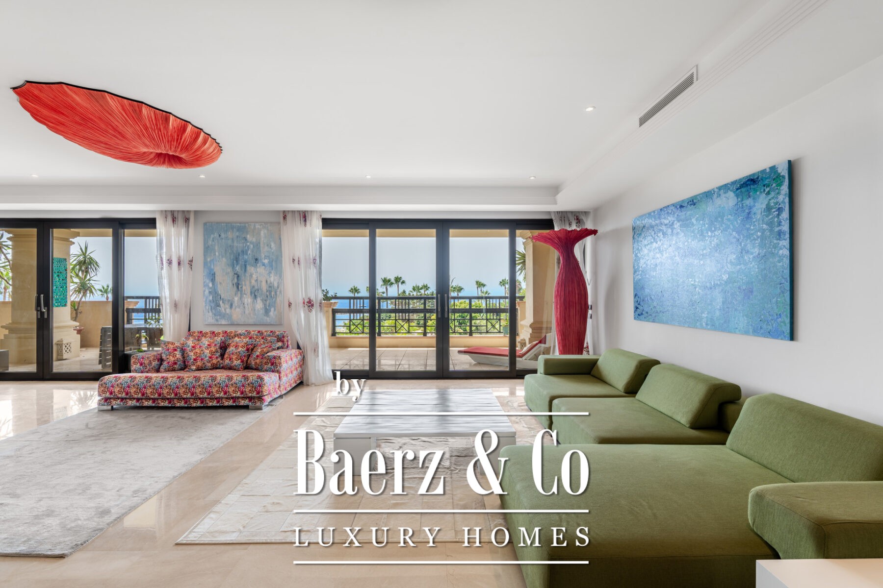 This beachfront apartment Marbella melds expansive interior living with the allure of direct Mediterranean access. Encompassing 394 m² of indoor space and 67 m² of terraces, the first-floor residence enjoys south-west orientation, flooding the home with light and revealing tranquil sunset vistas over the sea. The address is set amidst one of Marbella's most private coastal enclaves, moments from Puerto Banús, celebrated dining, designer boutiques, and necessary amenities.