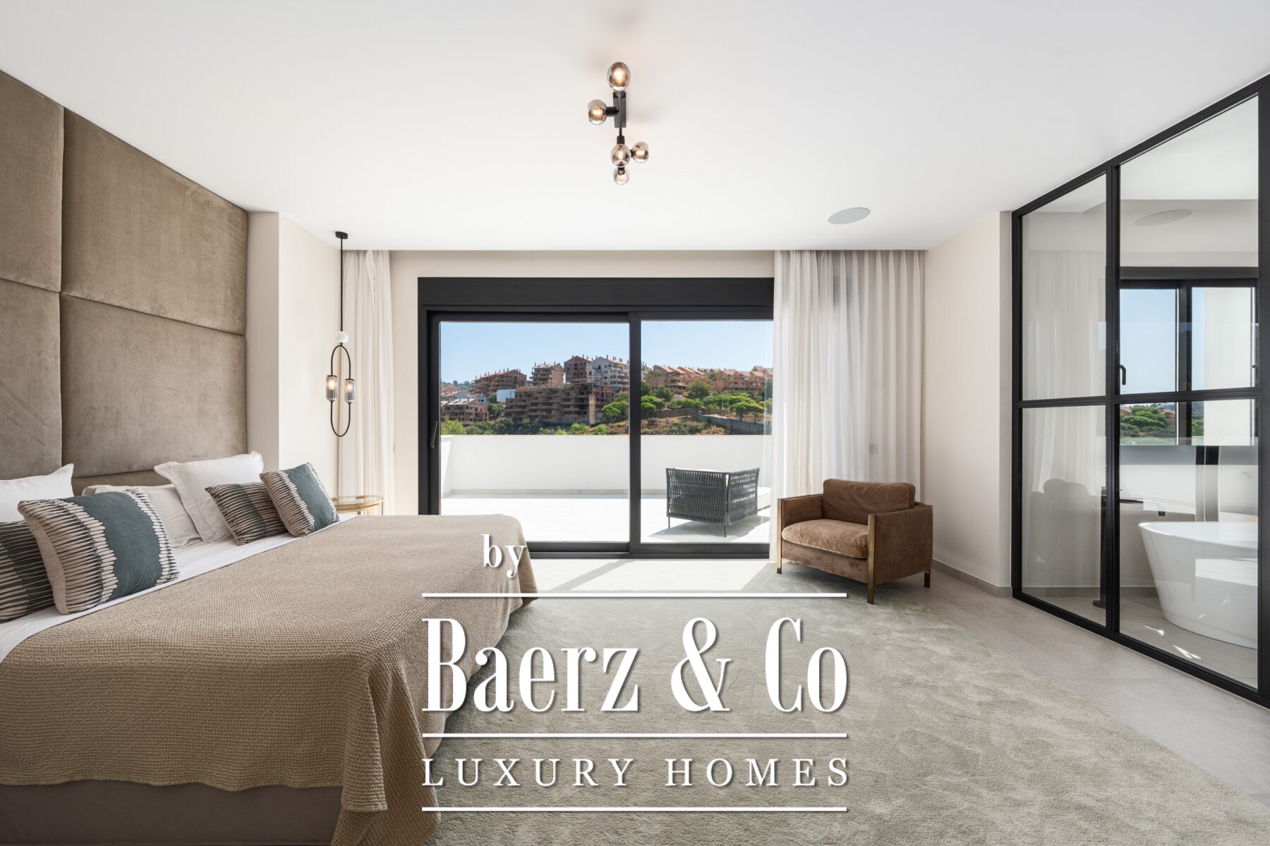 Frontline golf villa Marbella encapsulates the essence of elevated living within the renowned Golf urbanization of Elviria. Conceived in 2021 on a 1,743 square meter plot, this villa presents 902 square meters of constructed space, integrating 264 m² of expansive terraces that create an intelligent connection between interiors and the outdoors. Designed across three levels, accessible via a lift and generous staircase, five en-suite bedrooms provide both privacy and an effortless flow, with three suites conveniently positioned on a single floor.