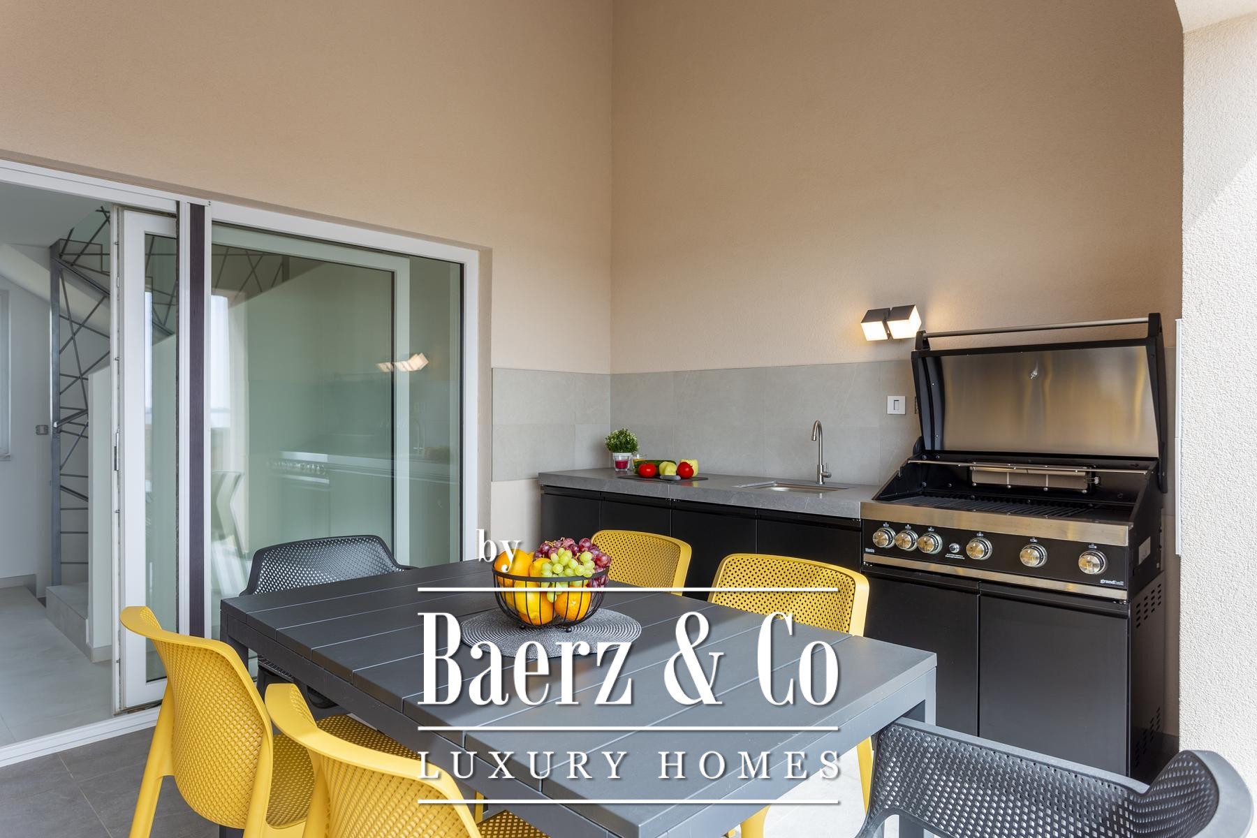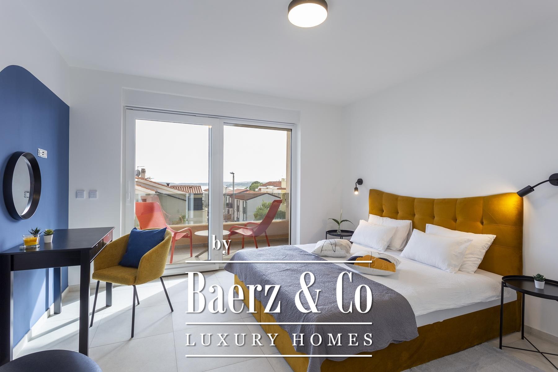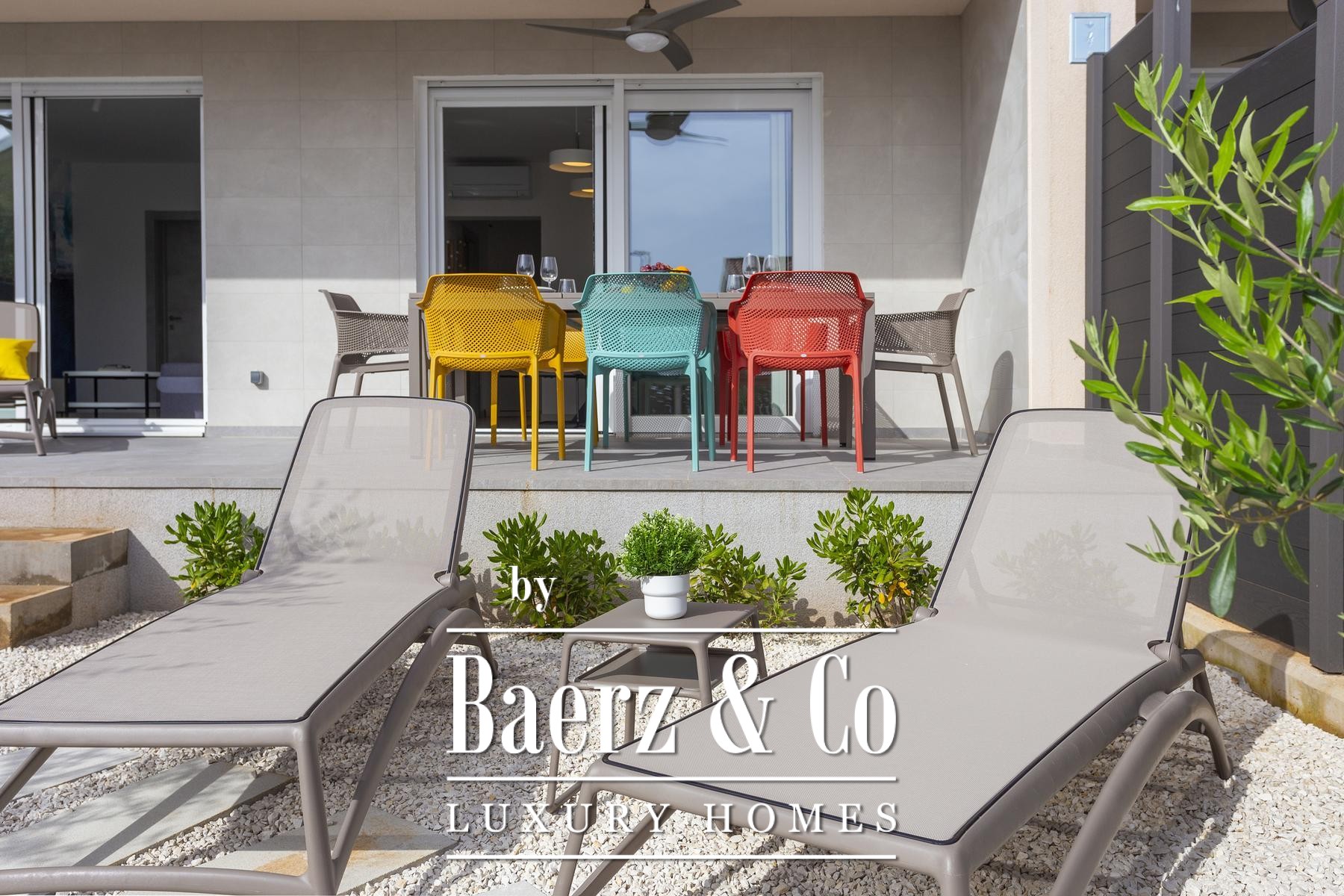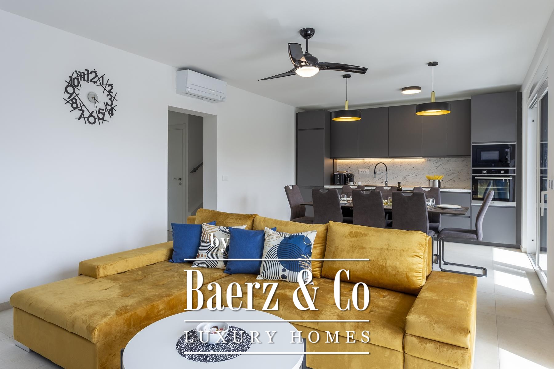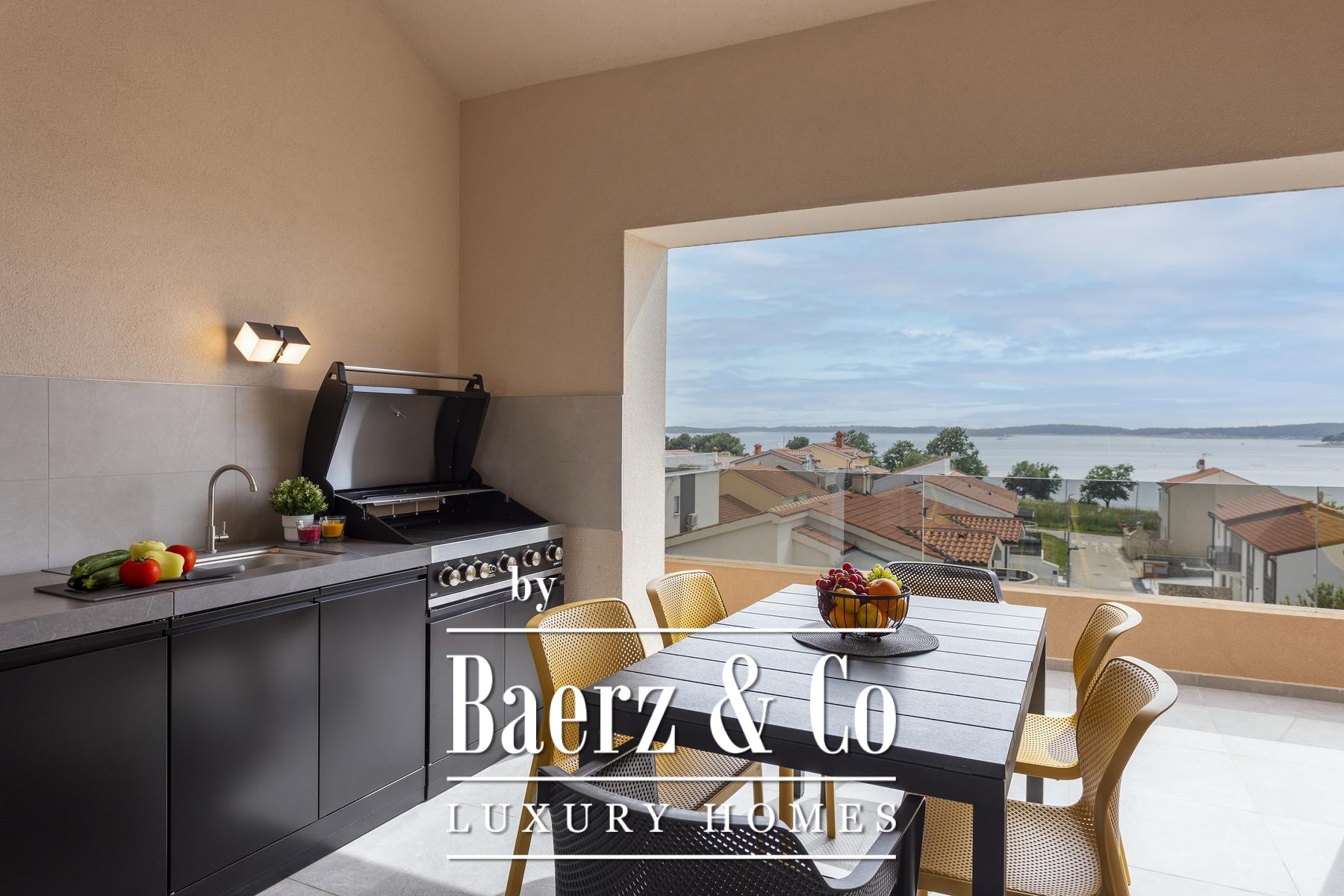 Contemporary terraced house Medulin presents a crisp, modern residence in one of Croatia’s most desirable seaside settings. This property, with a living area of 208 m² on a 350 m² plot, is positioned just a short stroll from the Adriatic, where well-groomed beaches and an open sea view define the daily rhythm.