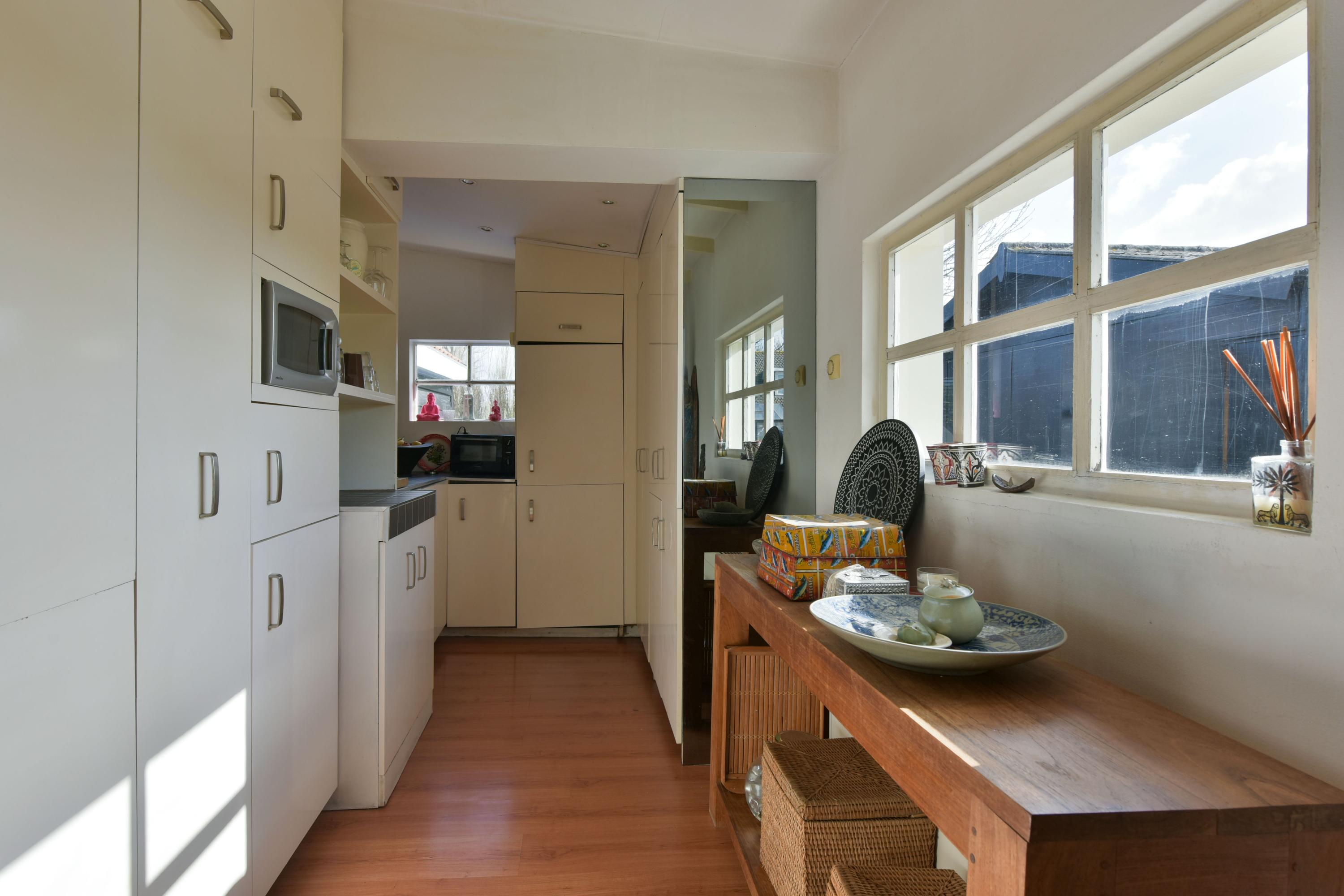 The garden surrounding the home is well maintained and offers ample space to enjoy outdoor living. With a playful layout of gravel, lawn, and terrace, there is always a spot to be found in the sun or shade. The large plane trees provide cooling on warm days and give the garden a distinctive character.