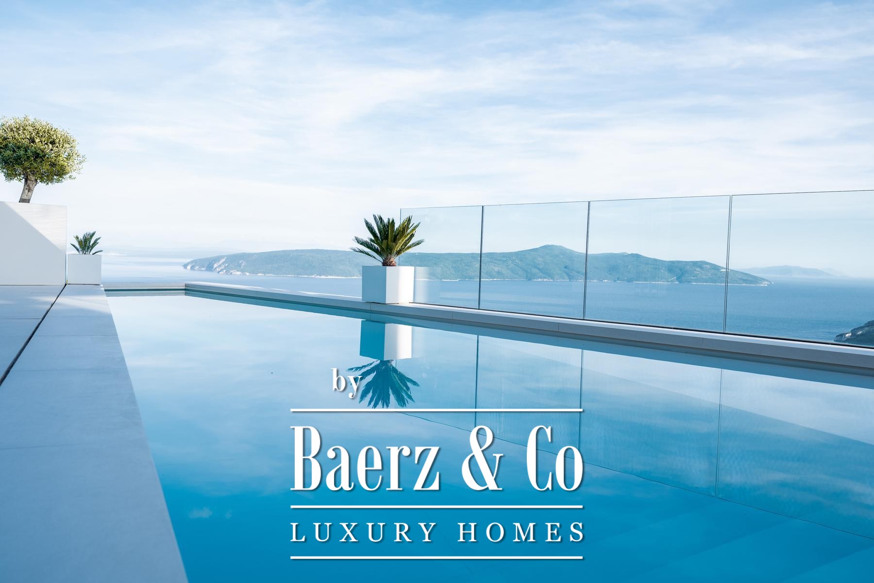 Discover a unique, newly built luxury villa in Mošćenice, above picturesque Mošćenička Draga. Completed in 2023 it offers panoramic views of the Kvarner Bay.This multi-story property, spanning 184 m2, is situated on a 917 m2 plot, perfectly blending modern design and functionality. It features four spacious rooms and four elegantly appointed bathrooms. Finished with meticulous attention to detail and premium materials, the villa includes an advanced smart home system and an elevator connecting all floors. This home is completely ready for immediate occupancy.The residence offers exceptional amenities for relaxation. Enjoy the outdoor swimming pool with sea views or the indoor swimming pool, available year-round. For ultimate wellness, a private sauna is also at your disposal.