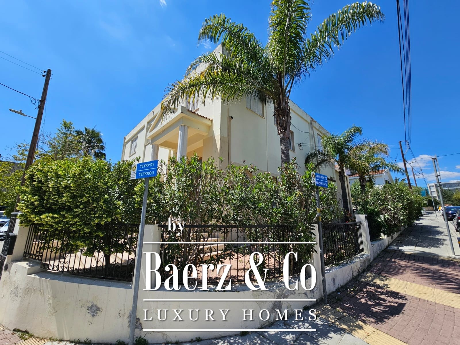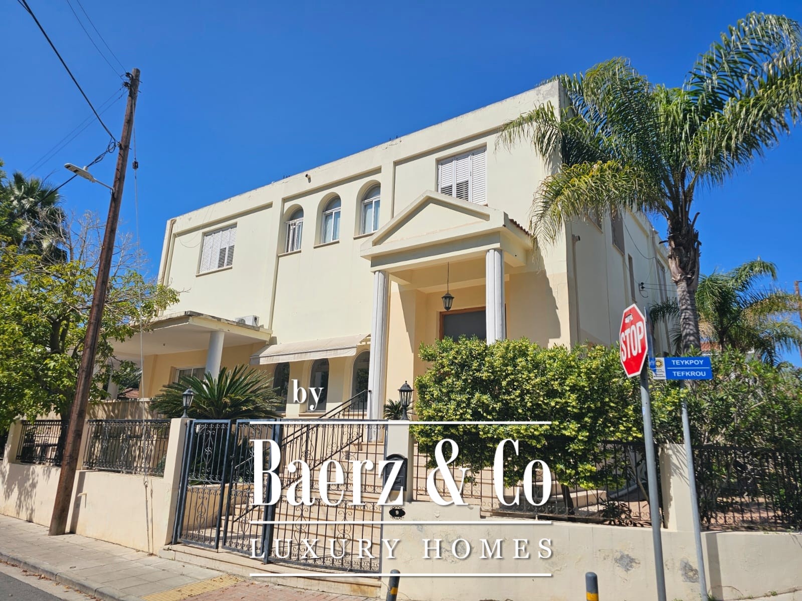 Neoclassical villa Nicosia City is a distinguished property in Nicosia’s city centre, set on a 1,450 m² plot. With an internal area of 500 m² across two levels, the residence offers seven bedrooms and six bathrooms, complementing a refined neoclassical character. Built in 1970 and renovated in 2001, the villa remains in very good condition, embodying light-filled, airy spaces distinguished by a blend of tile, wooden, granite, and marble flooring.