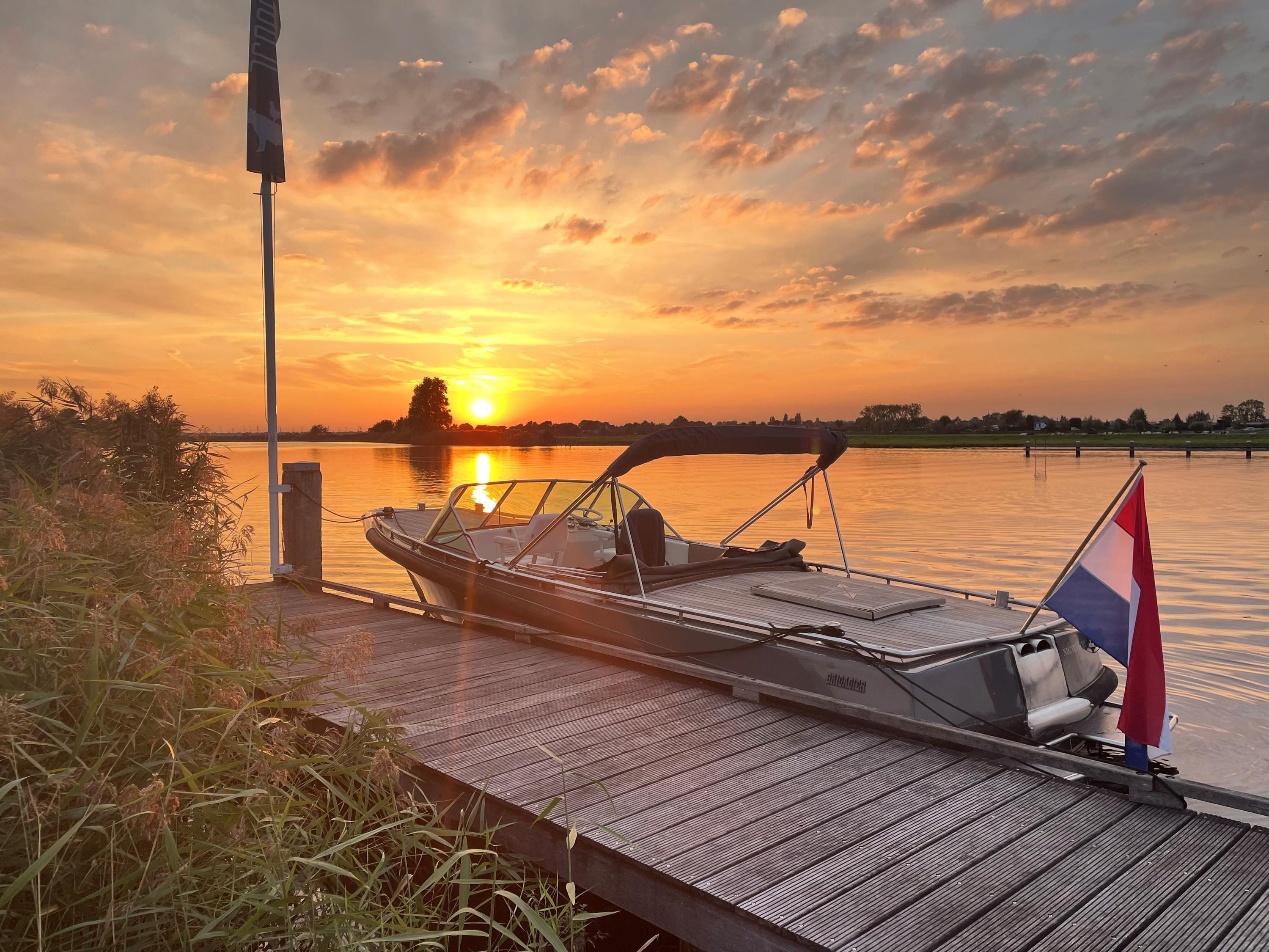 A small boat can be moored alongside the houseboat, allowing you to head straight onto the water. From your own terrace you can sail onto the Vecht for a relaxing trip past historic estates, charming villages and green riverbanks. Imagine long summer evenings on the water, spontaneous boating trips on sunny days, or quiet mornings accompanied only by the sound of gently moving water.