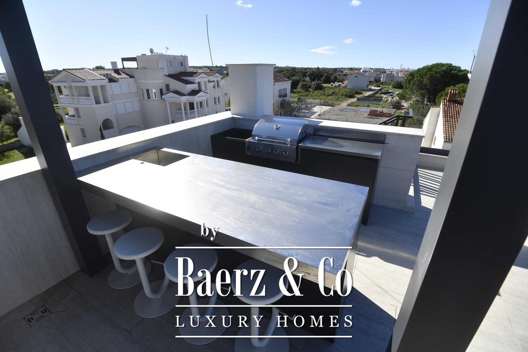 Zadar, Zaton, just fifty meters from the azure Adriatic Sea, presents this exceptional penthouse - a masterpiece of contemporary architecture and design in one of the most exclusive locations. With a total area of an impressive 231.84 m², enriched with spacious terraces and a private garage, this residence offers an unparalleled level of comfort and luxurious living.When you step into this penthouse, you will be greeted by a spacious living room illuminated by natural light through large glass walls that open to the sea and terrace, creating a seamless transition between indoor and outdoor space. Discreet luxury is visible in every detail: a steam fireplace with changing flame colors, a top-notch Sonos sound system and ambient lighting create an atmosphere of peace and elegance. Handcrafted furniture perfectly complements the refined interior, while carefully selected materials promise top quality and longevity. The kitchen, equipped with state-of-the-art Miele appliances, features an elegant waterfall island with LED lighting and granite countertops - the ideal place for culinary delights and socializing.Three luxurious bedrooms are designed with an emphasis on comfort, style and complete privacy, each with a sea view. The master bedroom offers additional luxury with its own bathroom and built-in wardrobes. All bathrooms are equipped with modern Hansgrohe faucets, walk-in showers, underfloor heating and impeccable finishes, guaranteeing a spa-like experience within your own home. An additional guest toilet, a fully equipped laundry room and a functional storage room ensure maximum practicality in everyday life, making this