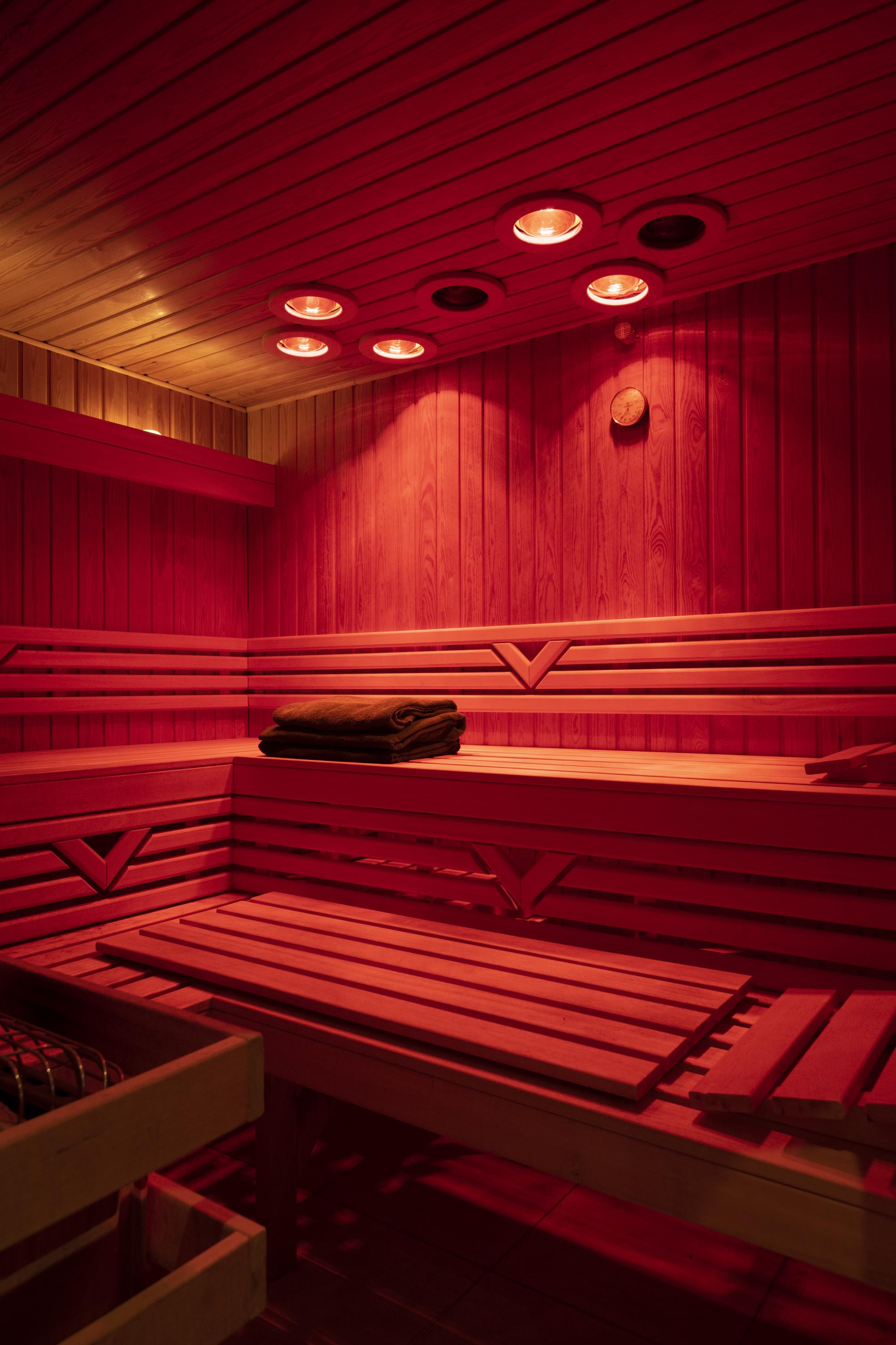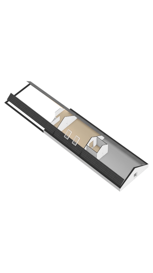 Landing with toilet, guest bedroom cum relaxation room with adjacent spa with walk-in shower, sauna and bathtub under the excellently insulated high roof on the second floor.