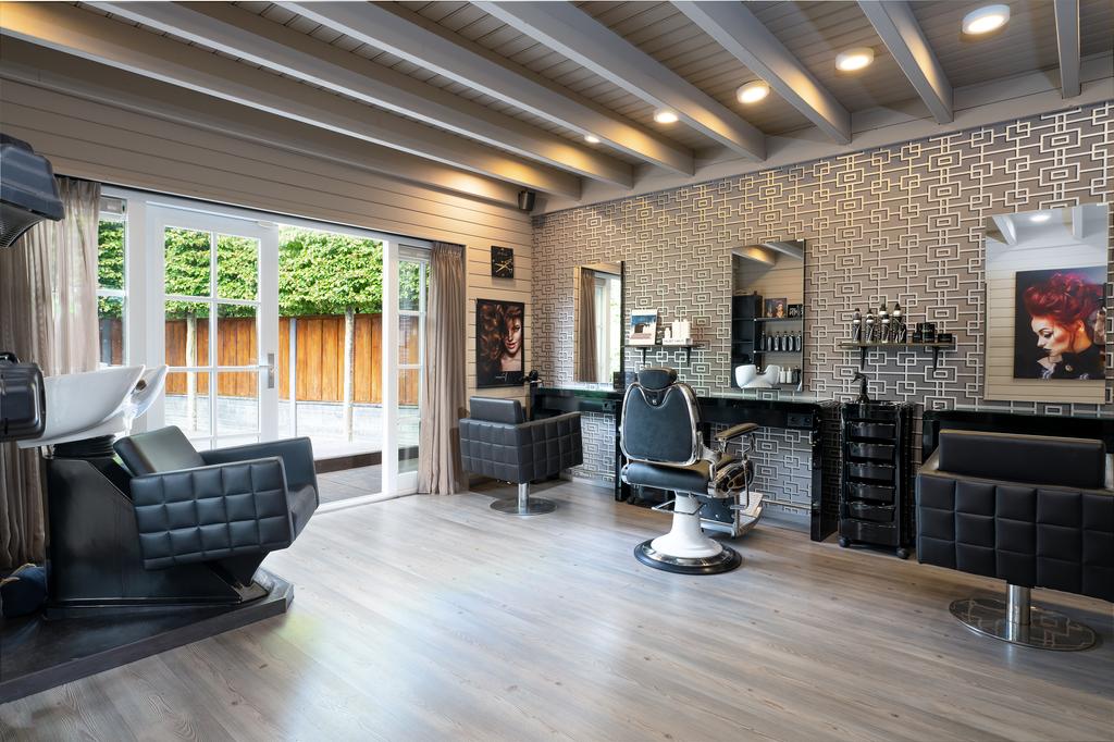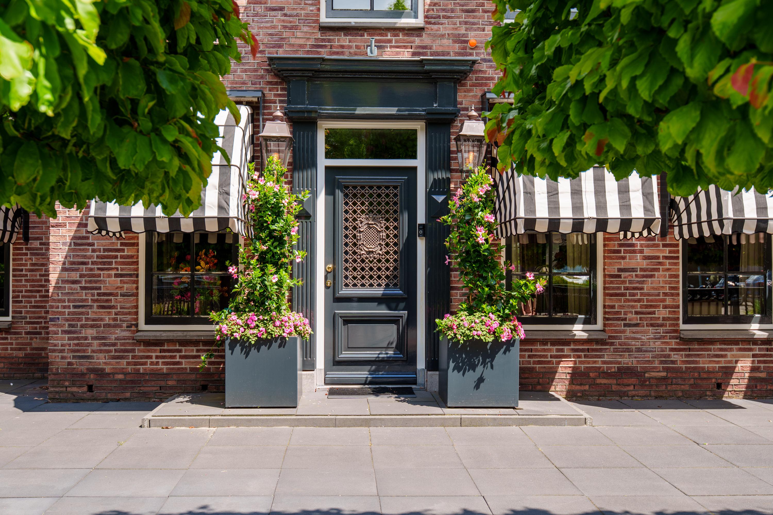 This luxurious annex offers numerous possibilities, including a home office, guesthouse, bed & breakfast, business space, or living quarters for family or an au pair. The annex has its own entrance and features a spacious showroom, an office area with space for three workstations, a pantry, and a second showroom. The ground floor opens onto a sunny veranda that stretches across the entire front.