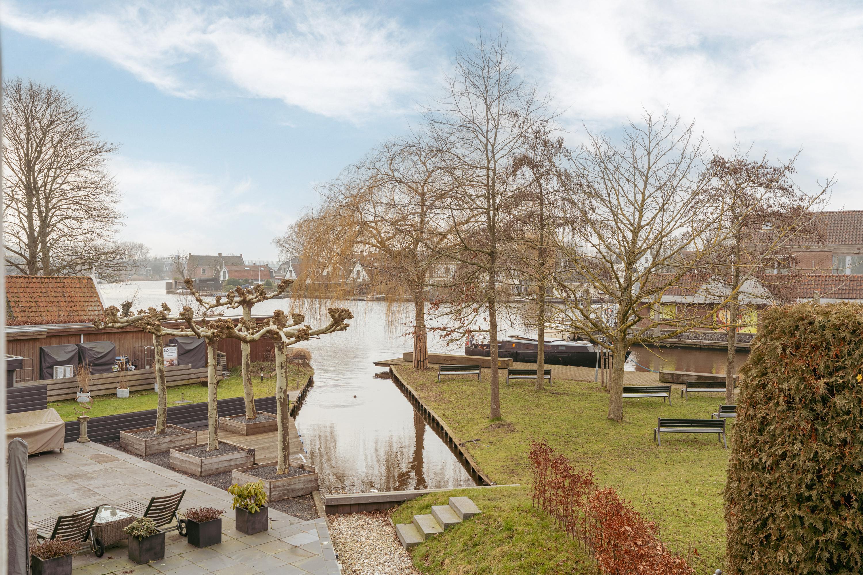 The terrace is finished with anthracite coloured tiles and a fantastic view over the river Amstel. A wonderful place to enjoy drinks with friends on summer evenings while overlooking the water; in winter, skating here is even a possibility. In the front garden, there is a separate storage unit of approximately 7 m², fitted with electricity. A rear access path runs alongside the house.