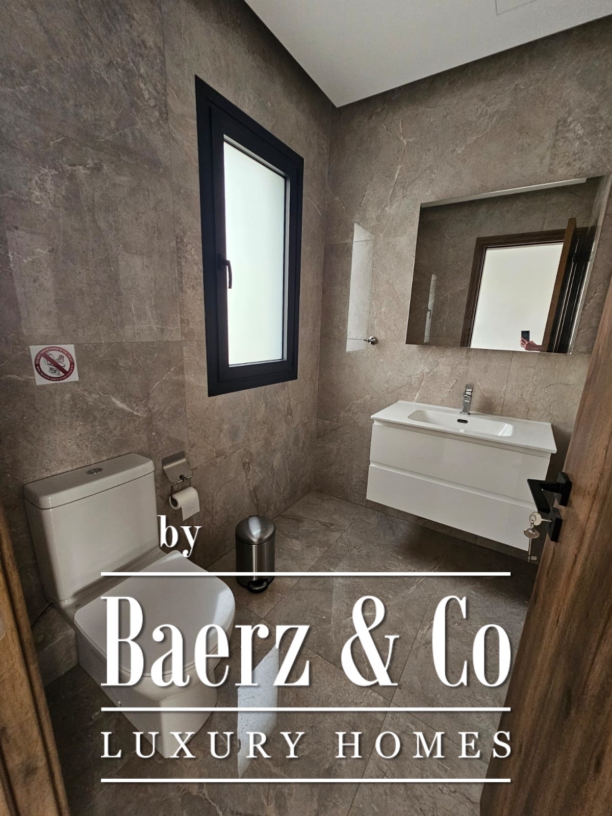 Set within a landscaped 888 sq.m. plot, the villa invites residents to savour quiet moments by the private swimming pool, host gatherings in the sunlit BBQ area, or simply relax in the exceptional living spaces. The layout includes four bedrooms, three bathrooms, and two guest WCs, while a service room adds further convenience. Interiors are finished to exacting standards, featuring large-format tiles, aluminium double-glazed windows for thermal and sound insulation, and a fully integrated underfloor heating and air conditioning system.