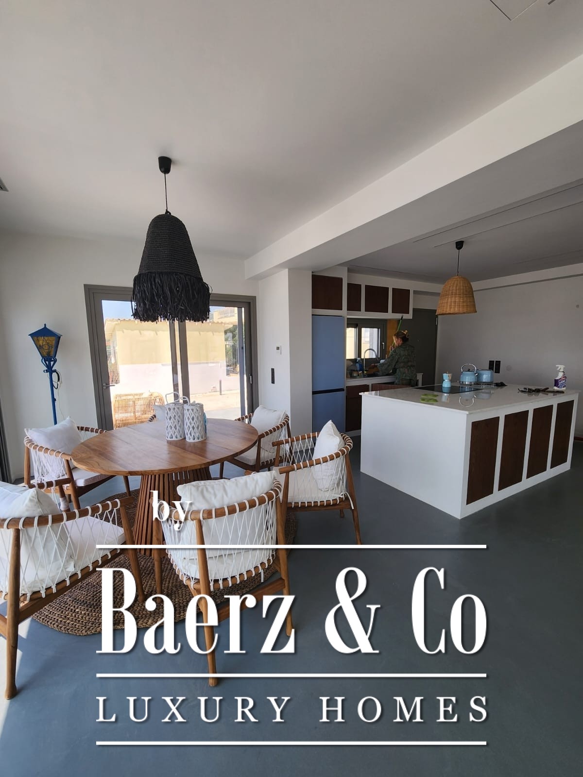 The villa features four master bedrooms, each designed for comfort and seclusion. Interiors are fully furnished with handmade Indonesian pieces, lending the space warmth and character, complemented by high end finishes and a contemporary aesthetic. Every detail, from the equipped kitchen to the carefully curated furnishings, is turnkey and ready for immediate enjoyment.
