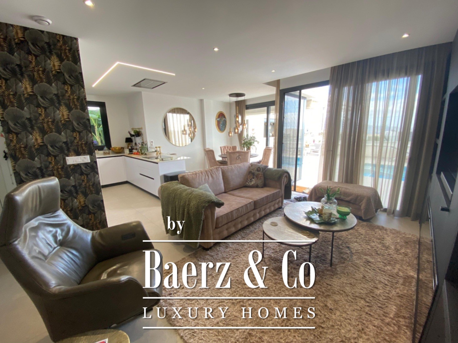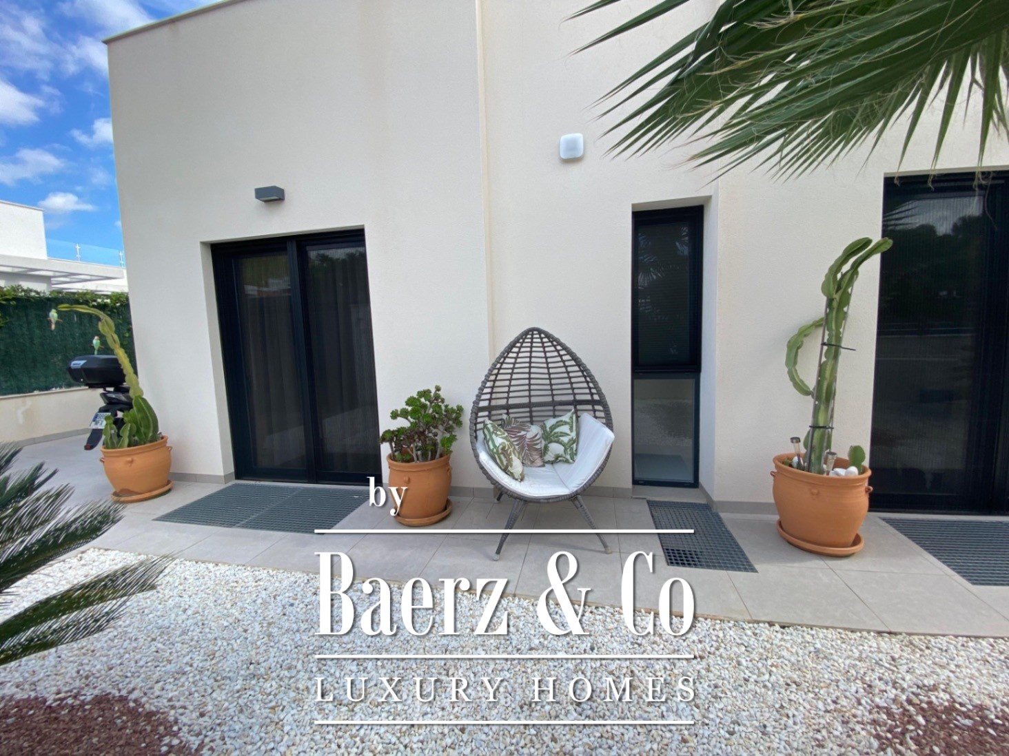 Modern villa Polop anchors its presence in a quiet enclave, built in 2021 and designed for a serene pace of Mediterranean living. This modern villa Polop rests on a 408 m² fenced plot and extends 110 m² across a single level, where light fills a living and dining space that opens into an integrated kitchen. The main floor presents three bedrooms and two full bathrooms featuring showers, each room shaped by clarity and comfort.