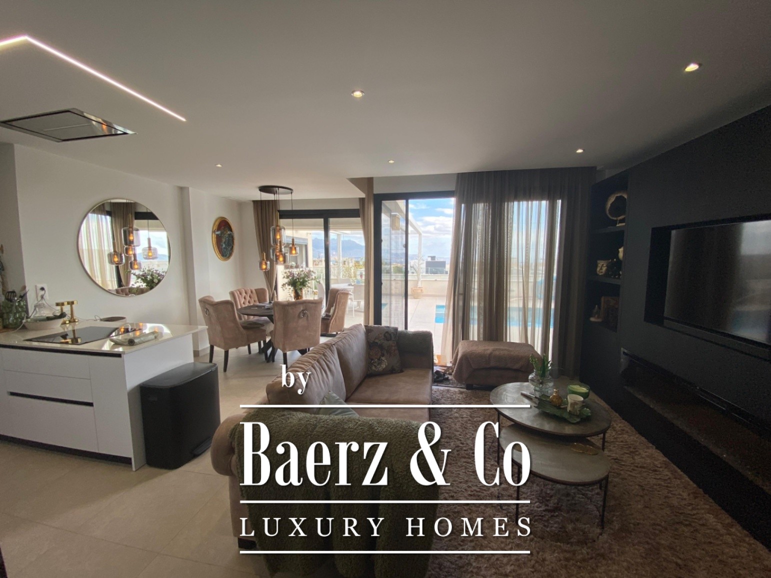 Outdoors, a private pool invites quiet afternoons, complemented by a solarium, barbecue area with a bar, outdoor kitchen, and both open and covered terraces. Private parking, storage room, and laundry facilities add a layer of seamless practicality. This property aligns with the understated expectations of those seeking a spacious family home or the ease of a lock-and-leave retreat in Spain. A luxury villa for sale in Polop where open interiors and purposeful amenities create space for privacy and longevity.