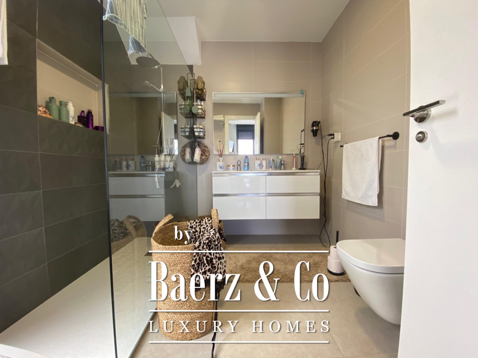 On the lower level, a discreet guest apartment offers two bedrooms, a bathroom, and its own living area—an ideal space for hosting with privacy. Throughout, air conditioning, centralized electric heating, and double-glazed windows with fly screens provide year-round ease.
