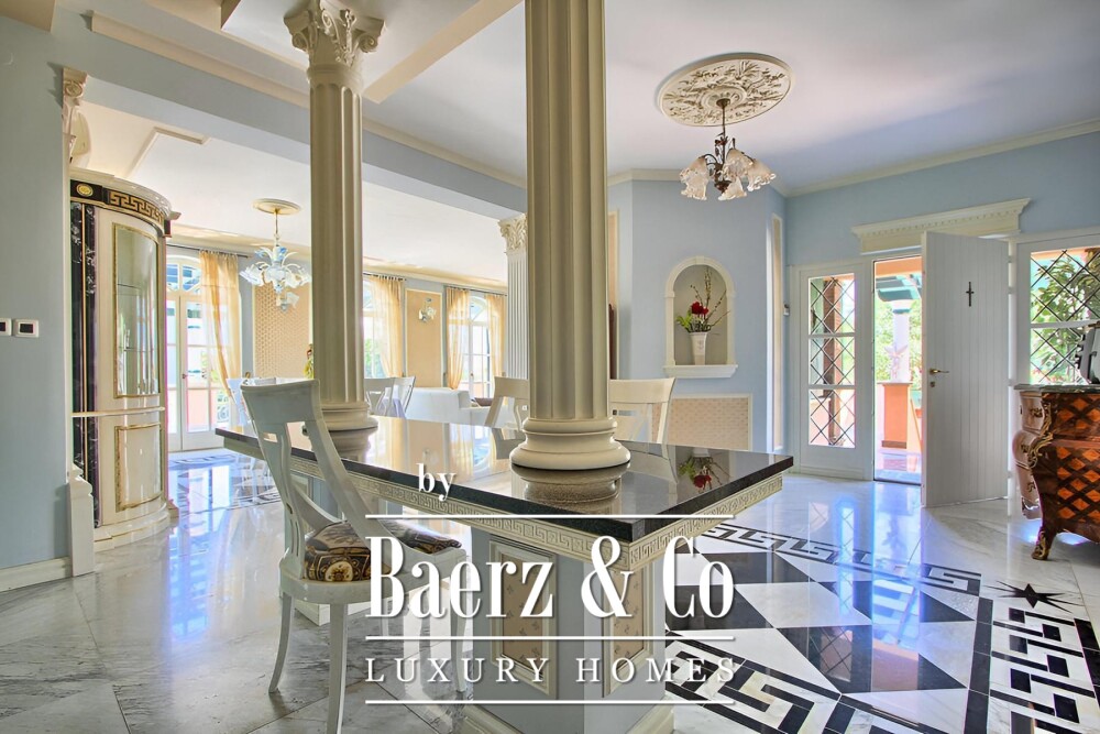 Natural light accentuates distinctive Versace details from exterior facades to curated interior moments, fostering a sense of artistic continuity. Outside, a 783 m² plot accommodates four parking spaces and offers the opportunity for both private enjoyment and potential transformation, should one desire a boutique hotel or refined apartment residence.