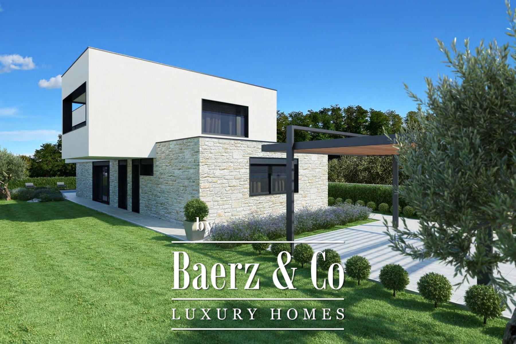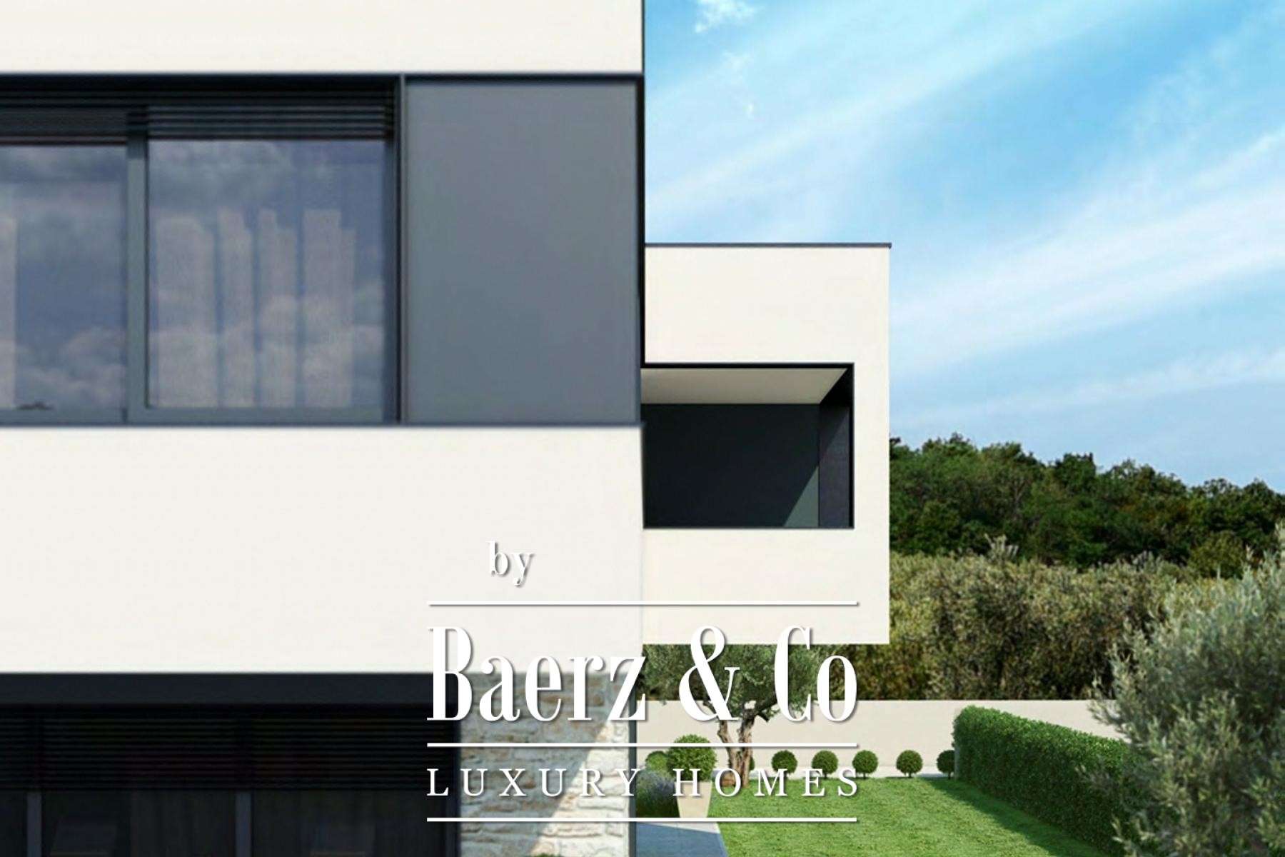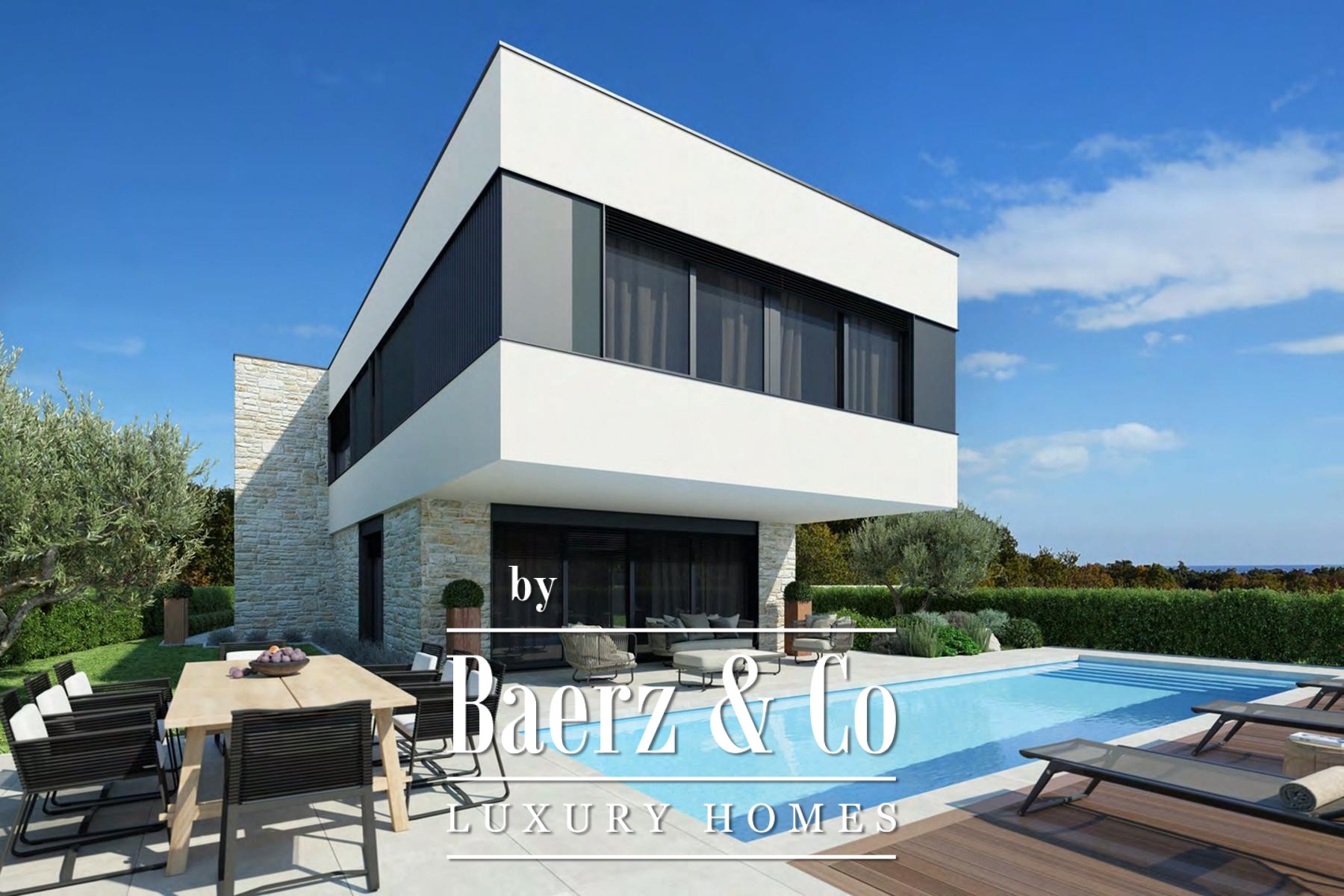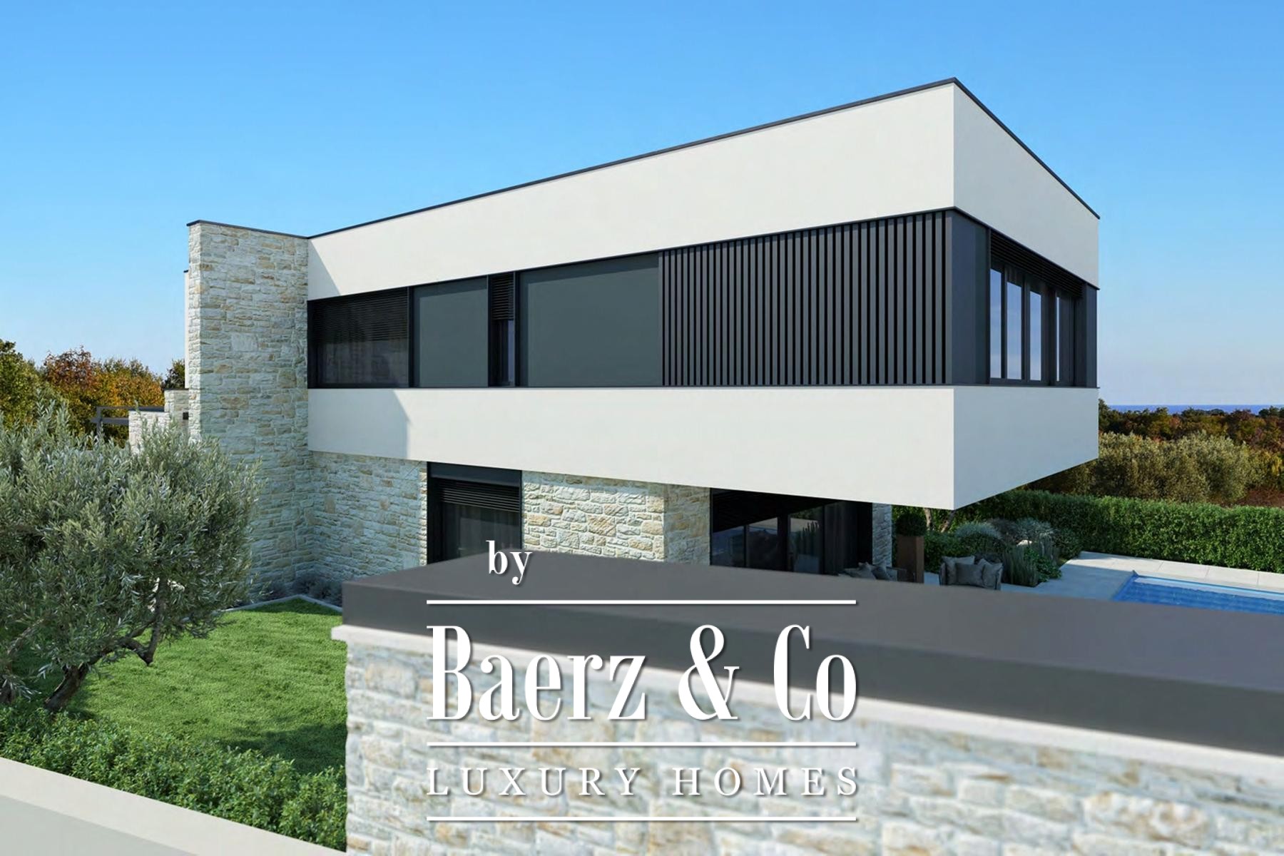 Villa Poreč with sea view offers refined contemporary living just moments from the vibrant heart of Poreč, Croatia. This high-quality villa, currently under construction, is set in a peaceful landscape defined by nature, family homes, and holiday retreats, providing an ideal balance of privacy and access to all urban amenities. The nearest beach lies 4 to 5 kilometers away, while the town center is approximately 5 kilometers from the doorstep.