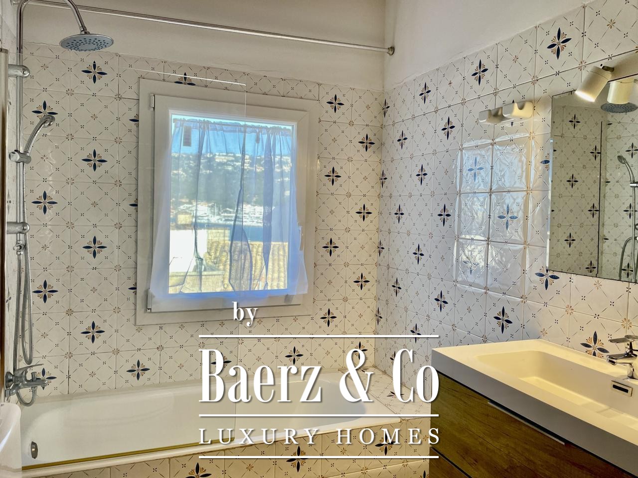 Upstairs, discover a third bedroom and an expansive full bathroom. The crowning rooftop terrace invites relaxation or dining with far-reaching views of yacht masts and Mediterranean skies, all framed by the village’s maritime rhythm.