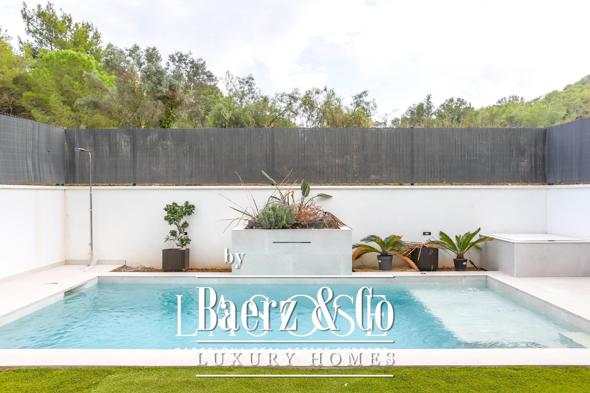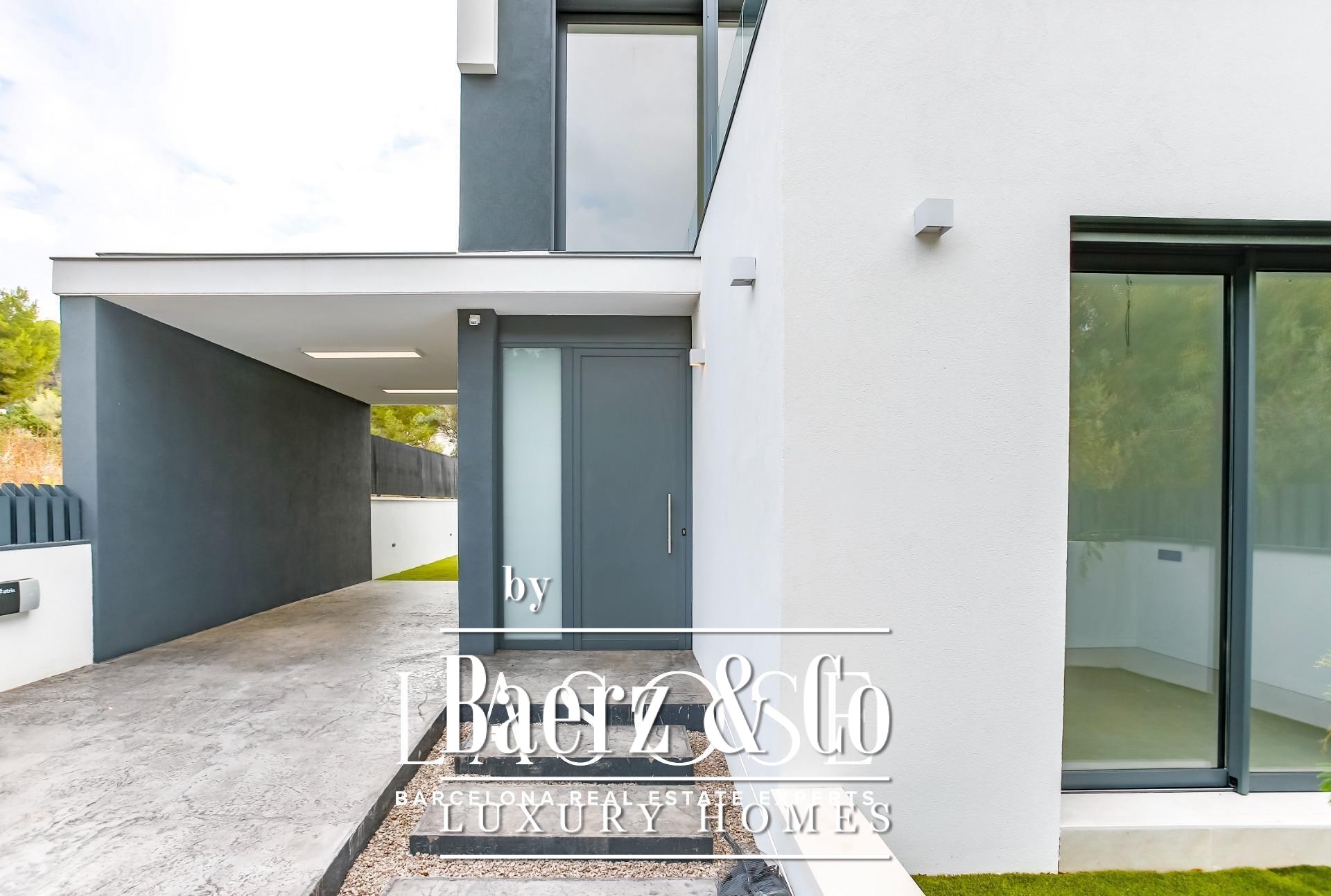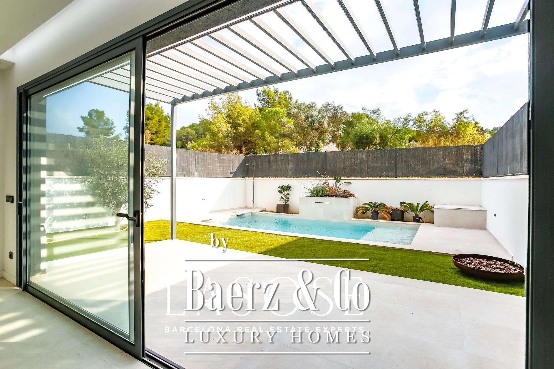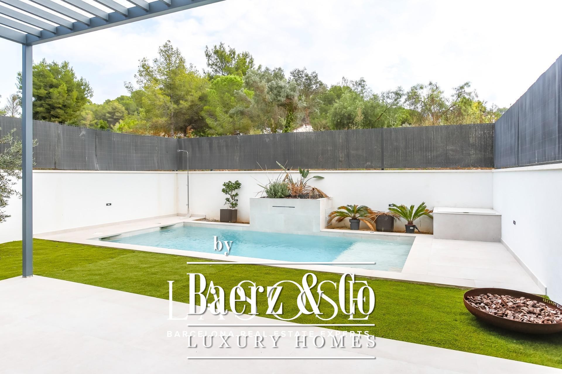 Outdoors, a private swimming pool, terrace, and landscaped garden invite quiet mornings or convivial gatherings. The integrated garage, ample storage, and energy-saving features—including solar panels and aerothermal systems—offer comfort without compromise. This modern villa Sant Pere de Ribes is situated in a coveted residential neighborhood known for its proximity to acclaimed international schools such as the British School of Barcelona, Olive Tree School, Lyceé Bel Air, and Richmond International. Essential services and transport connections are a short distance away, making both daily life and European travel seamless.