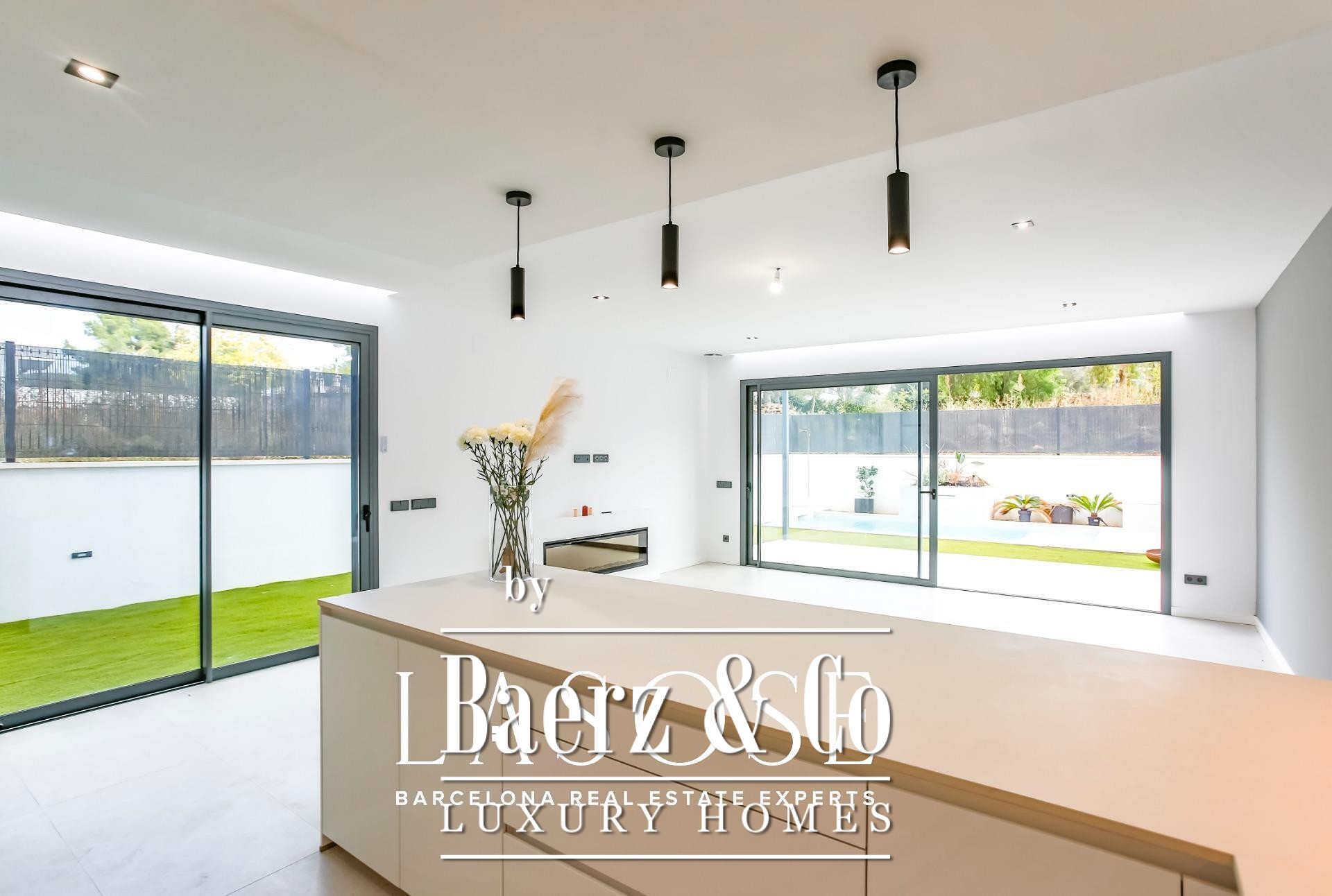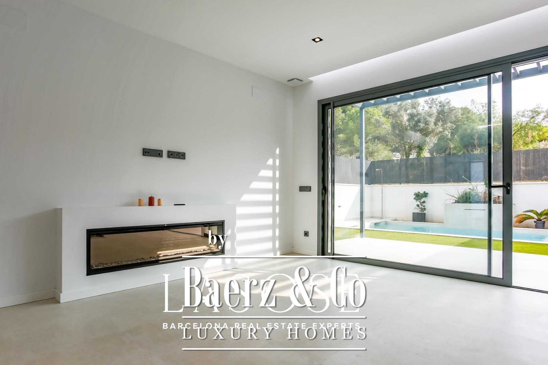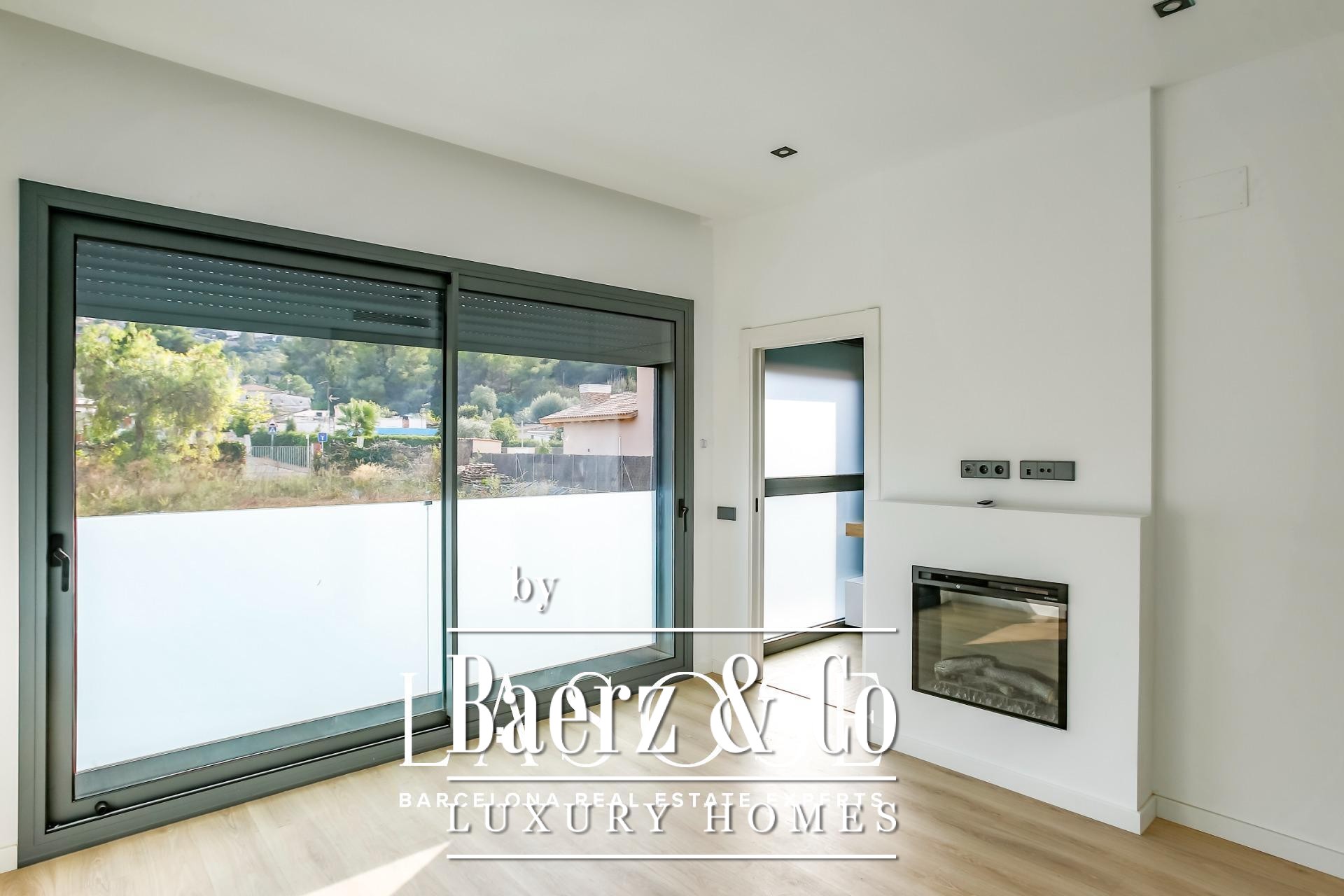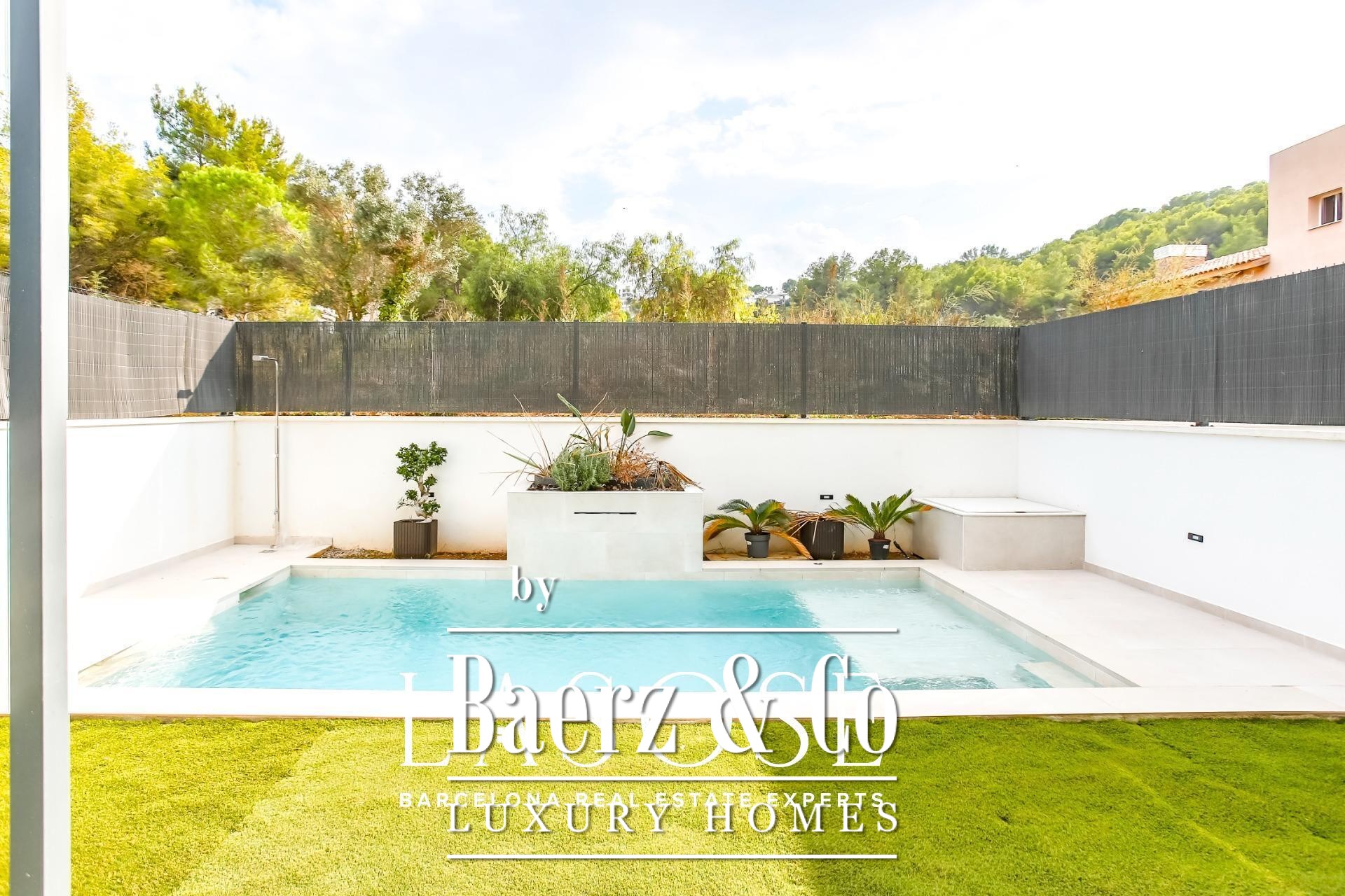 Outdoors, a private swimming pool, terrace, and landscaped garden invite quiet mornings or convivial gatherings. The integrated garage, ample storage, and energy-saving features—including solar panels and aerothermal systems—offer comfort without compromise. This modern villa Sant Pere de Ribes is situated in a coveted residential neighborhood known for its proximity to acclaimed international schools such as the British School of Barcelona, Olive Tree School, Lyceé Bel Air, and Richmond International. Essential services and transport connections are a short distance away, making both daily life and European travel seamless.