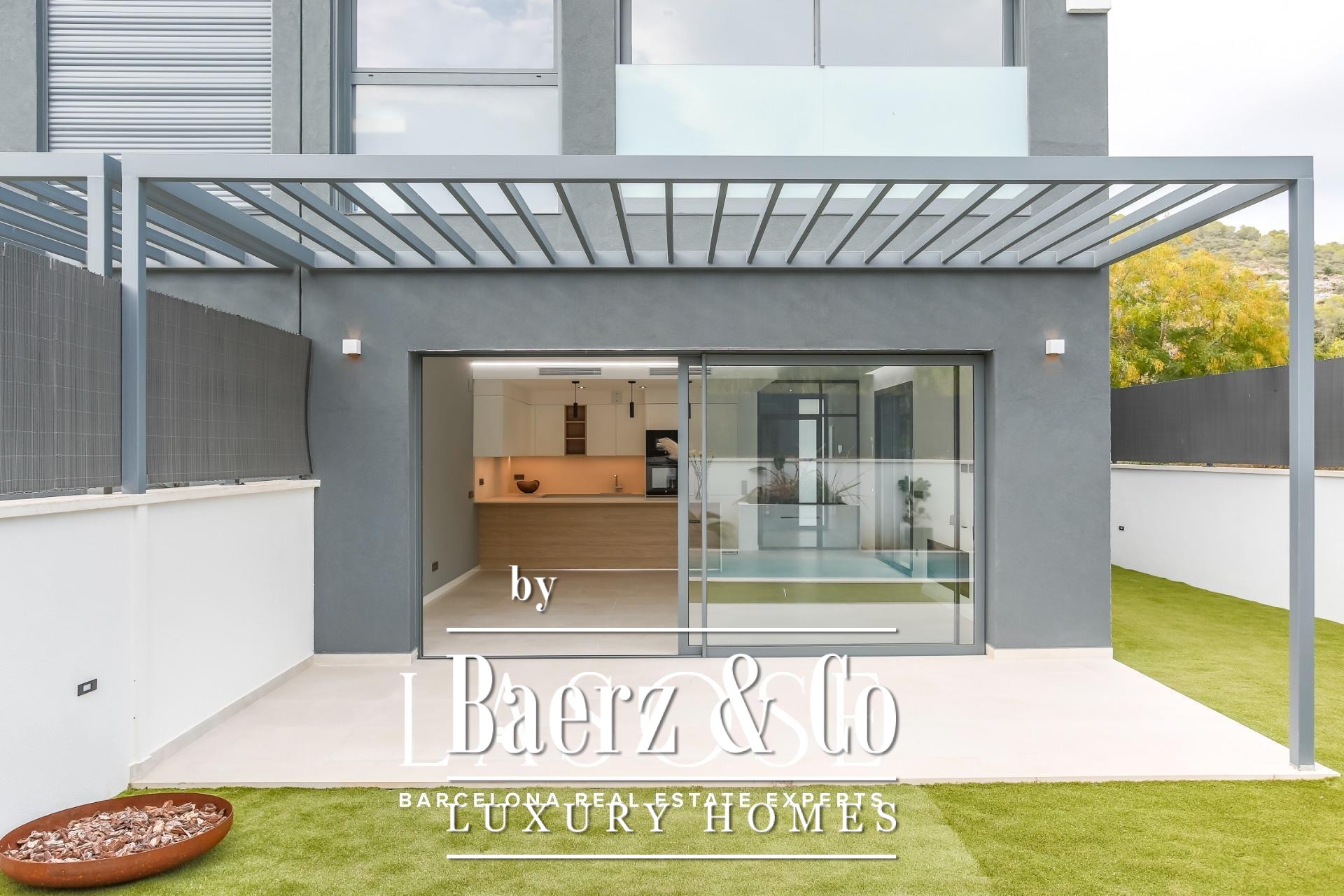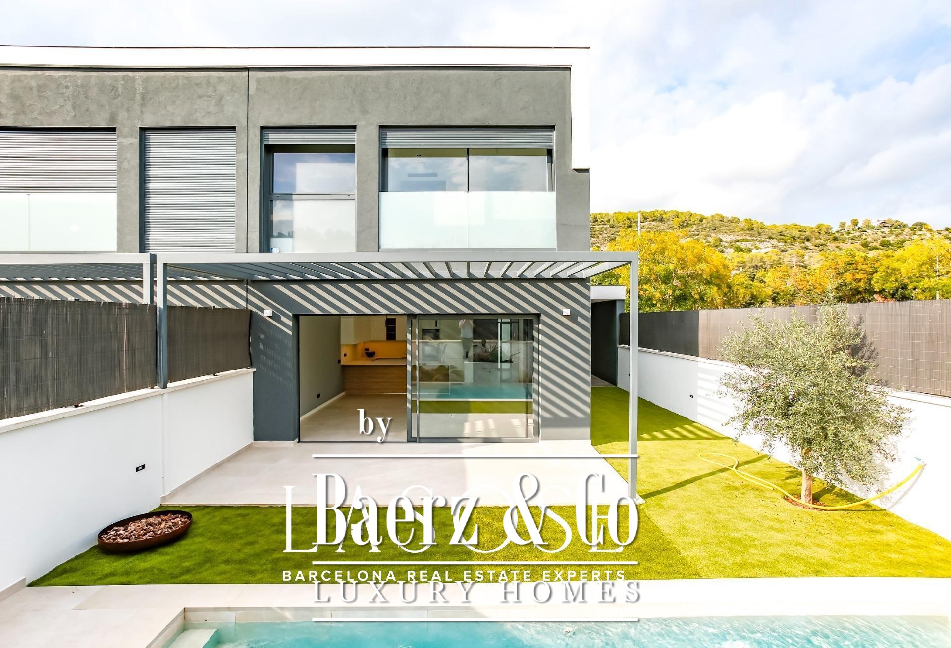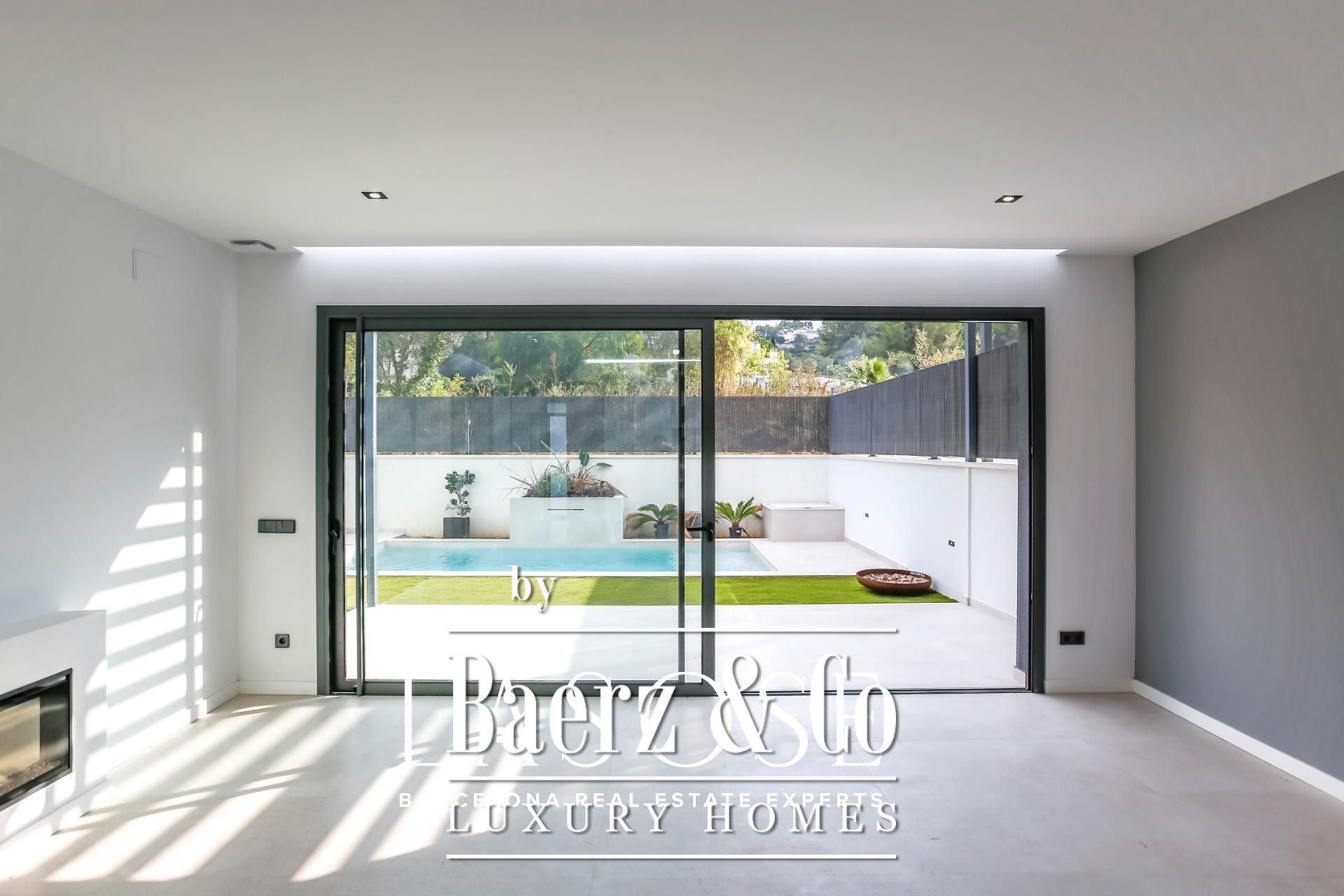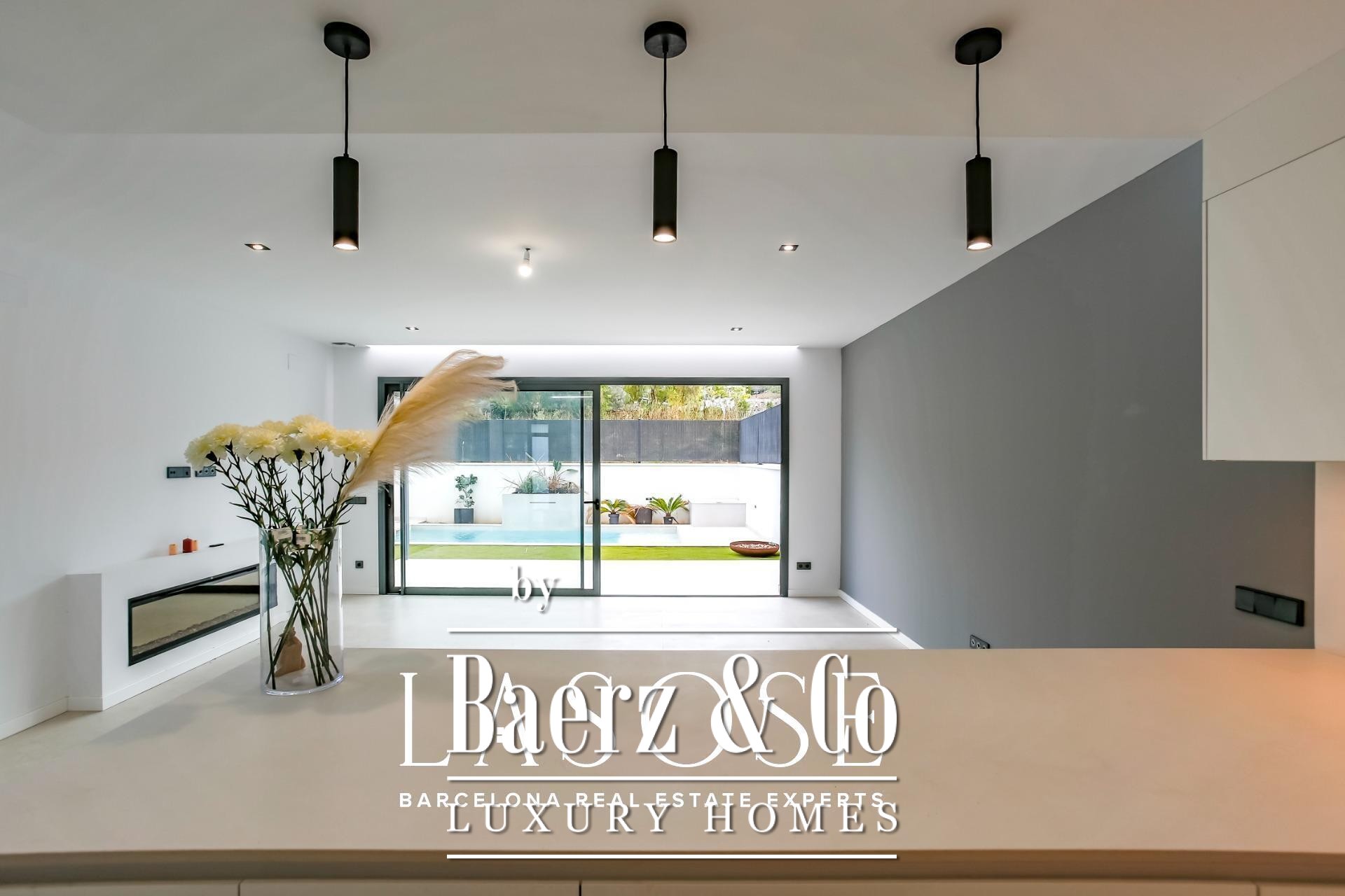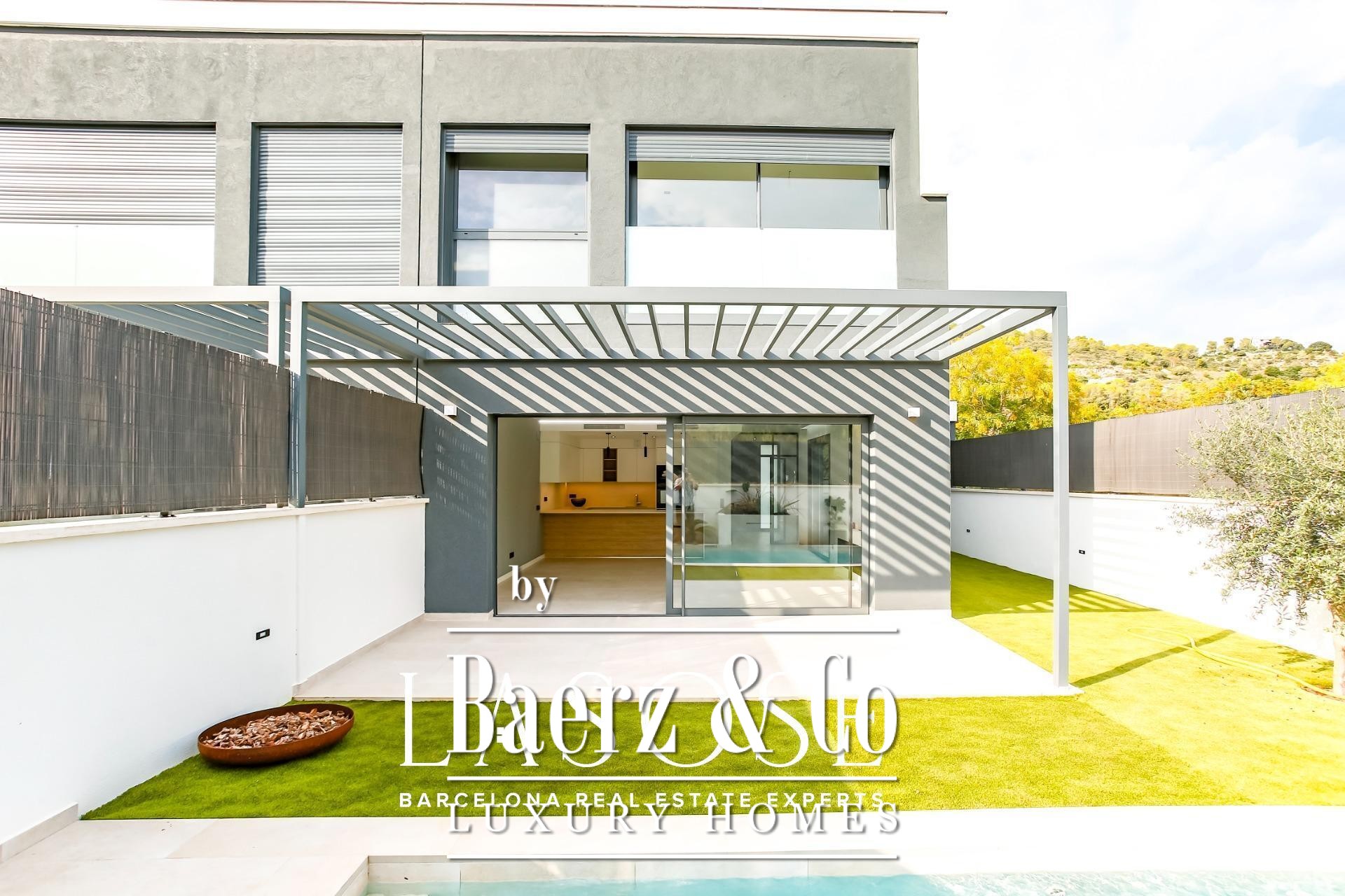 Outdoors, a private swimming pool, terrace, and landscaped garden invite quiet mornings or convivial gatherings. The integrated garage, ample storage, and energy-saving features—including solar panels and aerothermal systems—offer comfort without compromise. This modern villa Sant Pere de Ribes is situated in a coveted residential neighborhood known for its proximity to acclaimed international schools such as the British School of Barcelona, Olive Tree School, Lyceé Bel Air, and Richmond International. Essential services and transport connections are a short distance away, making both daily life and European travel seamless.
