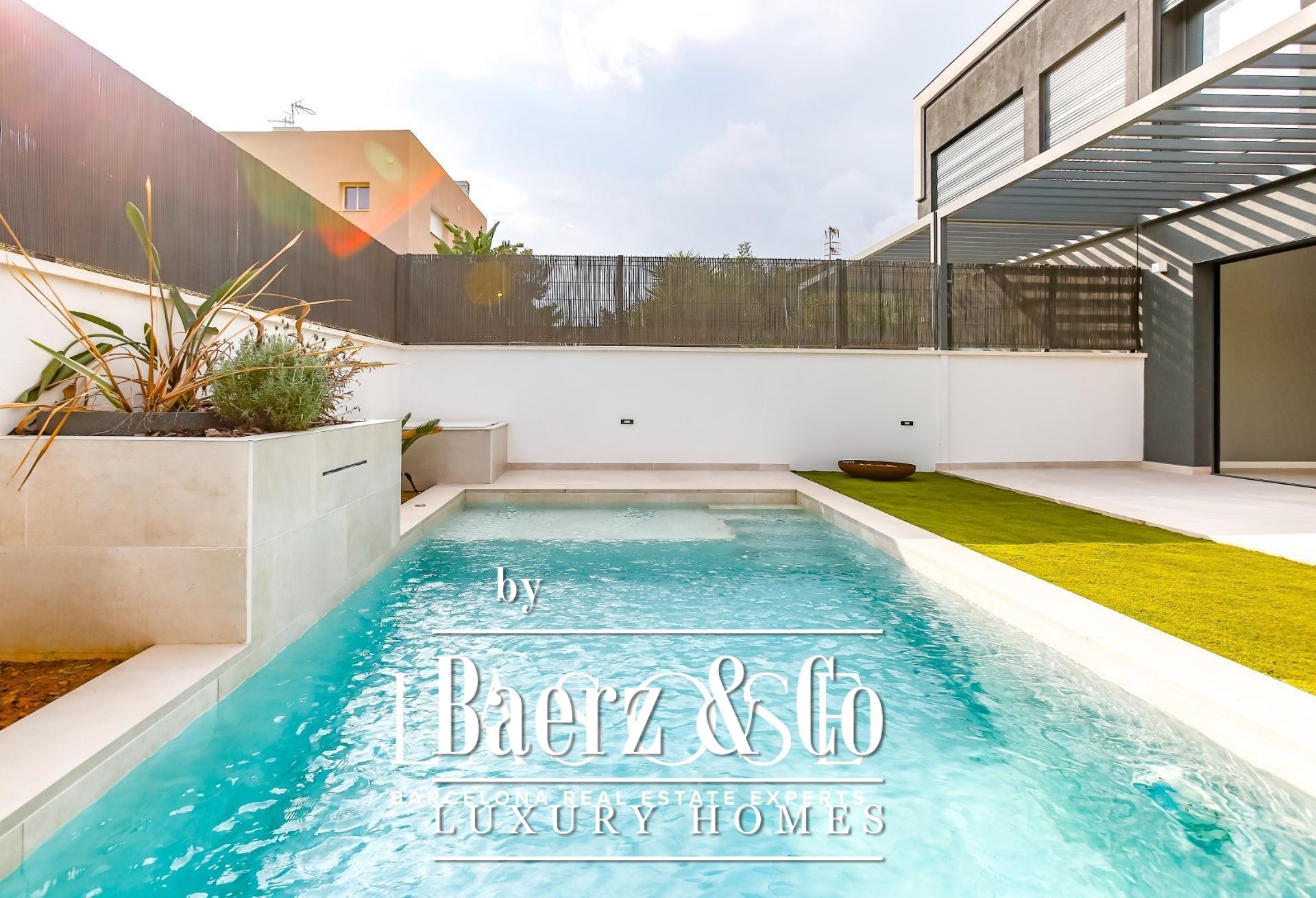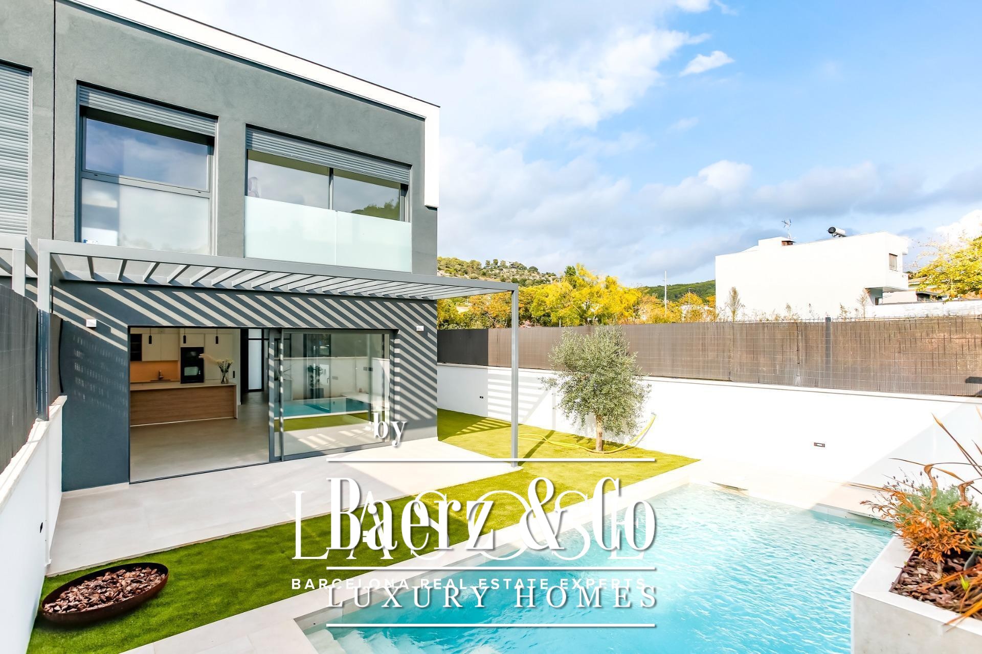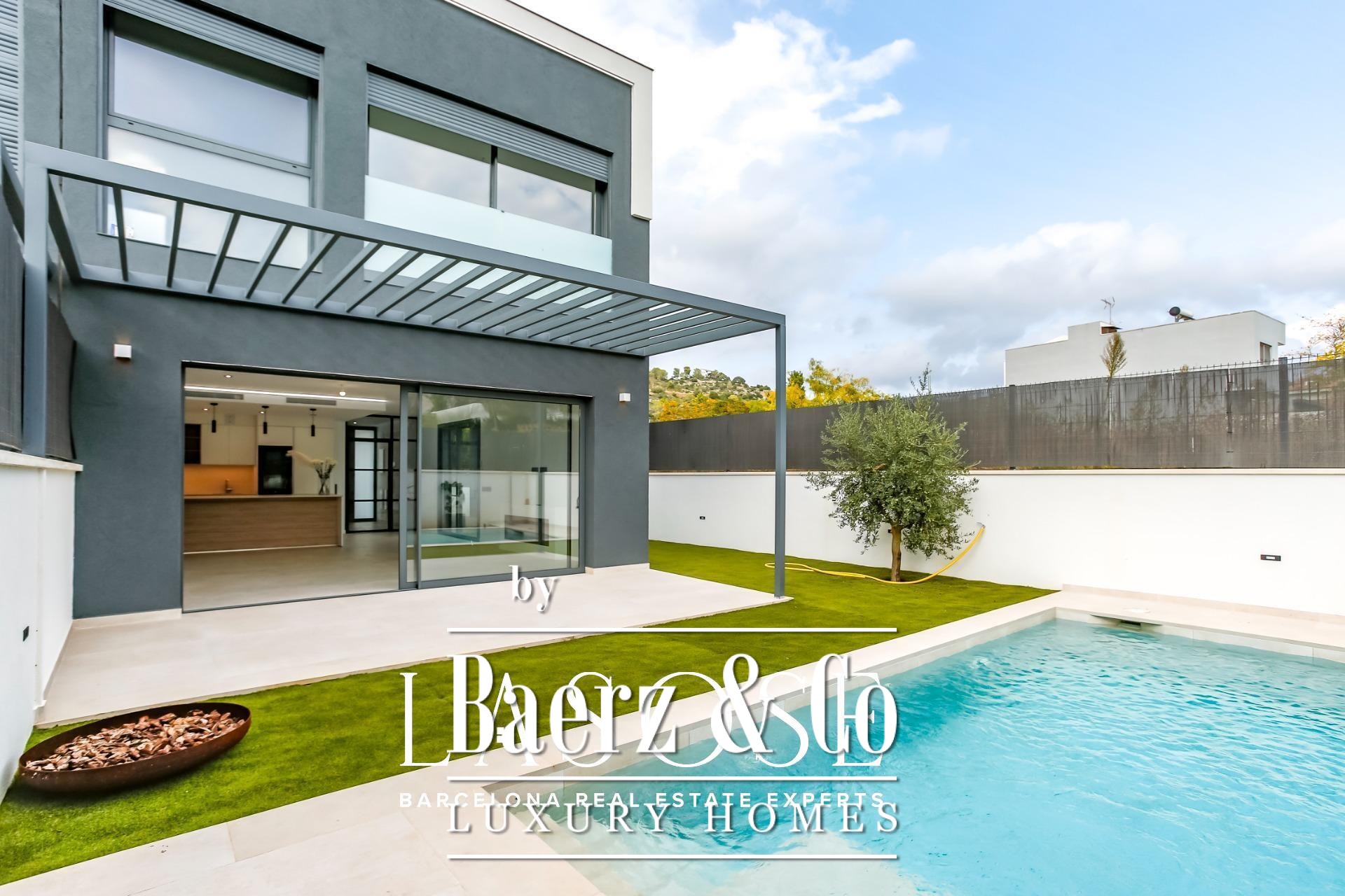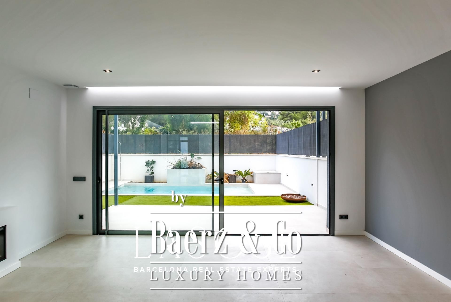 Outdoors, a private swimming pool, terrace, and landscaped garden invite quiet mornings or convivial gatherings. The integrated garage, ample storage, and energy-saving features—including solar panels and aerothermal systems—offer comfort without compromise. This modern villa Sant Pere de Ribes is situated in a coveted residential neighborhood known for its proximity to acclaimed international schools such as the British School of Barcelona, Olive Tree School, Lyceé Bel Air, and Richmond International. Essential services and transport connections are a short distance away, making both daily life and European travel seamless.