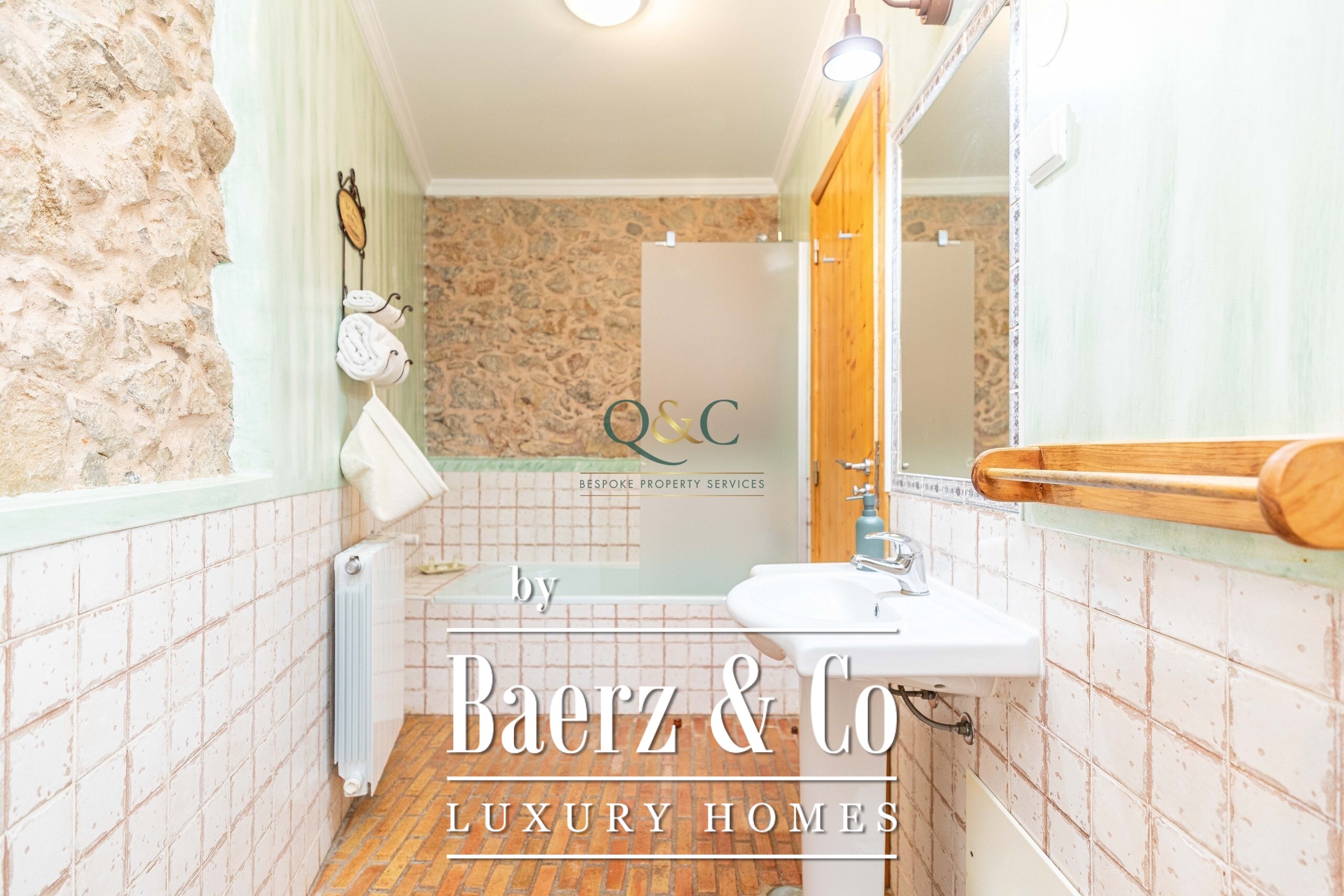 Upon arrival at the property, you are greeted by a parking area for several vehicles, which leads you to the iron gate for pedestrians. You are welcomed by the large, beautifully maintained green garden, full of fruit trees that provide plenty of shade and leisure areas where you can admire the stone well that has been maintained over the centuries.