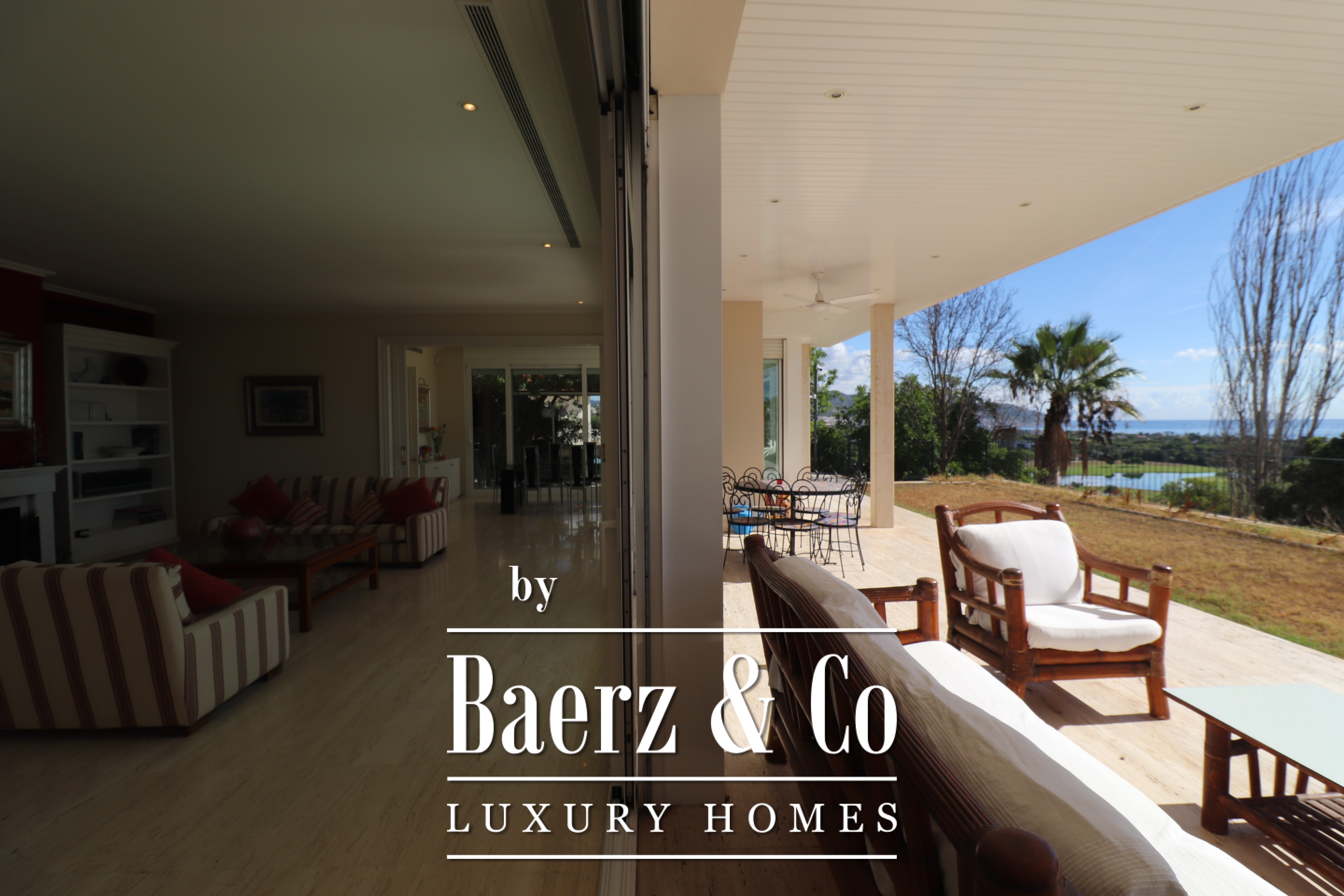 Designed for discretion and comfort, the villa unfolds across three levels, connected by a private lift. The main level opens with a refined entrance hall leading to a fluid living space, including living and dining rooms, a media zone, and a fully equipped kitchen with an adjoining service area and dedicated office. Five bedrooms and eight bathrooms allow for both family intimacy and entertaining on a generous scale.