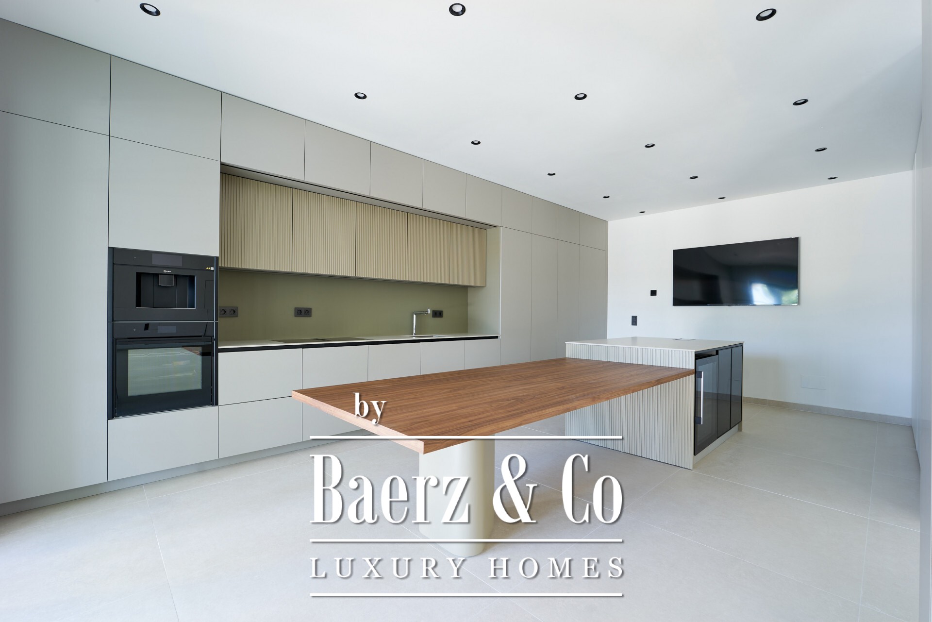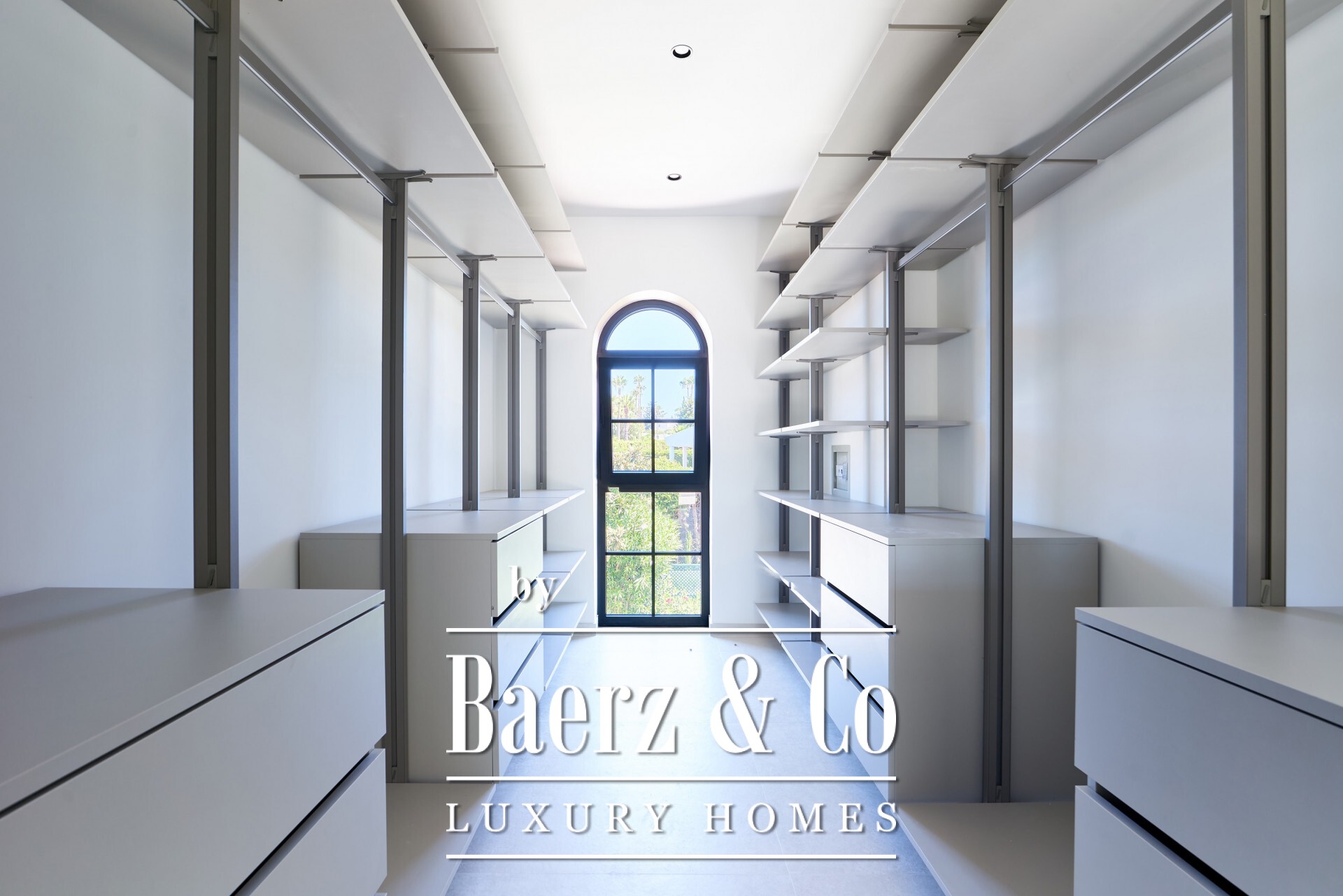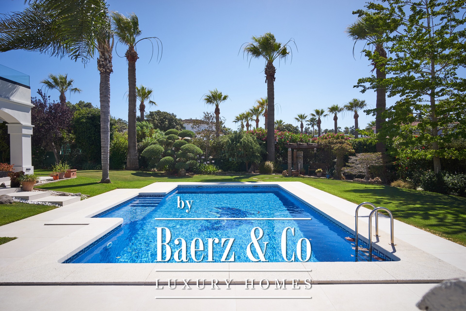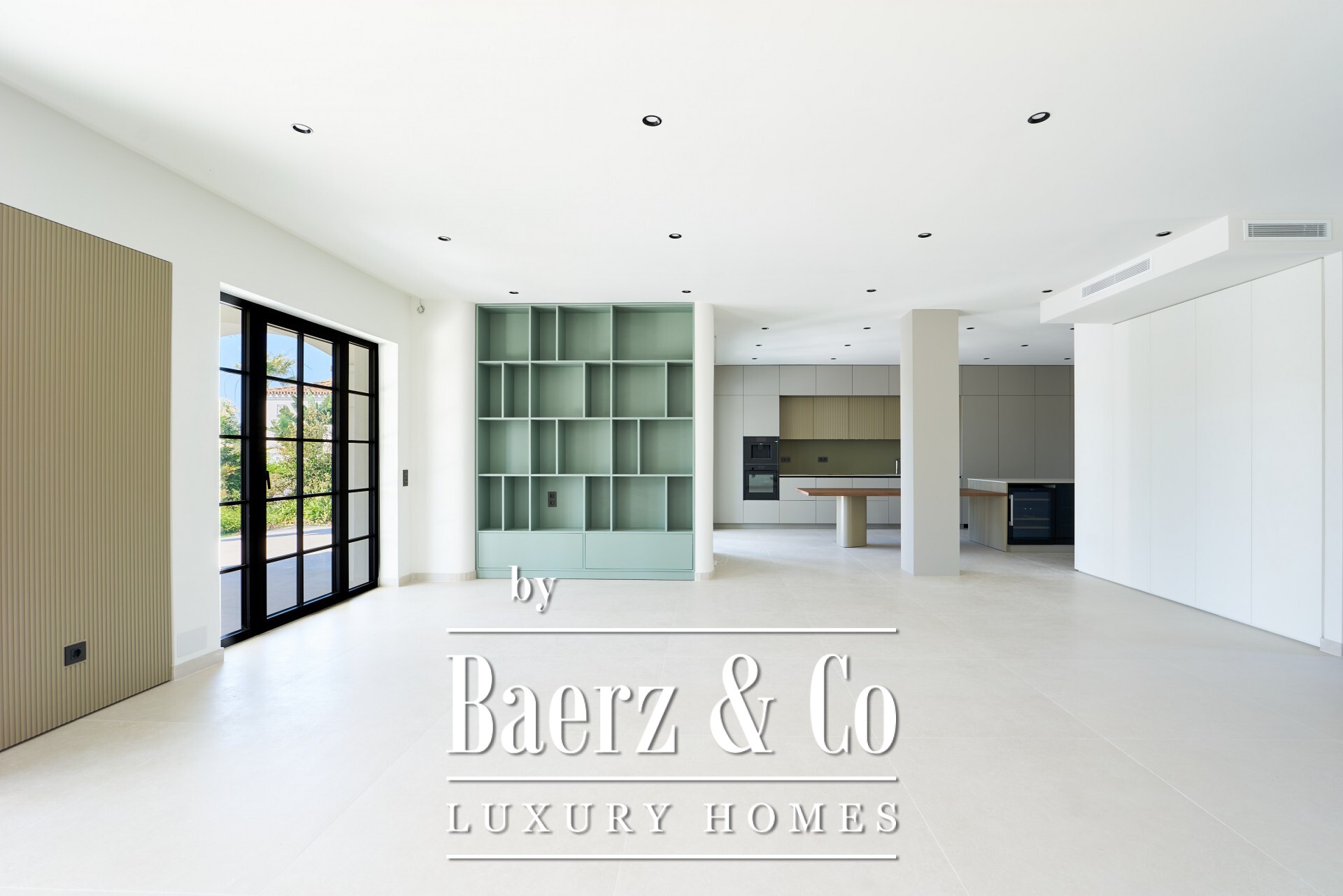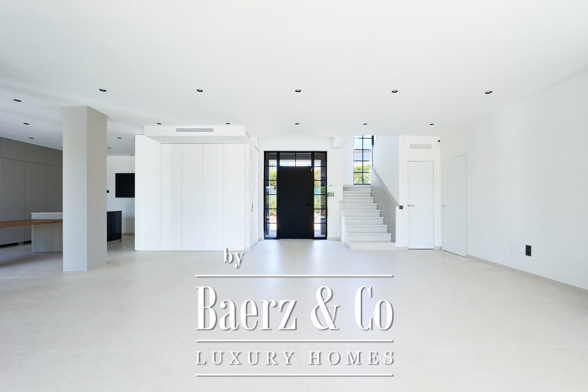 This renovated villa which now is for sale in Sotogrande combines Andalusian character with contemporary design. It offers bright open spaces, modern finishes and a peaceful setting close to golf courses such as Valderrama, La Reserva, as well as the Sotogrande Marina or the Sotogrande International School. The villa features an open-plan living area with floor-to-ceiling windows, connecting the lounge, dining room, and designer kitchen with Neff appliances and a wine cooler. There are three bedrooms: the master suite with private terrace, walk-in dressing room, and en-suite bathroom, plus two guest bedrooms on the ground floor sharing a bathroom and garden access. Premium