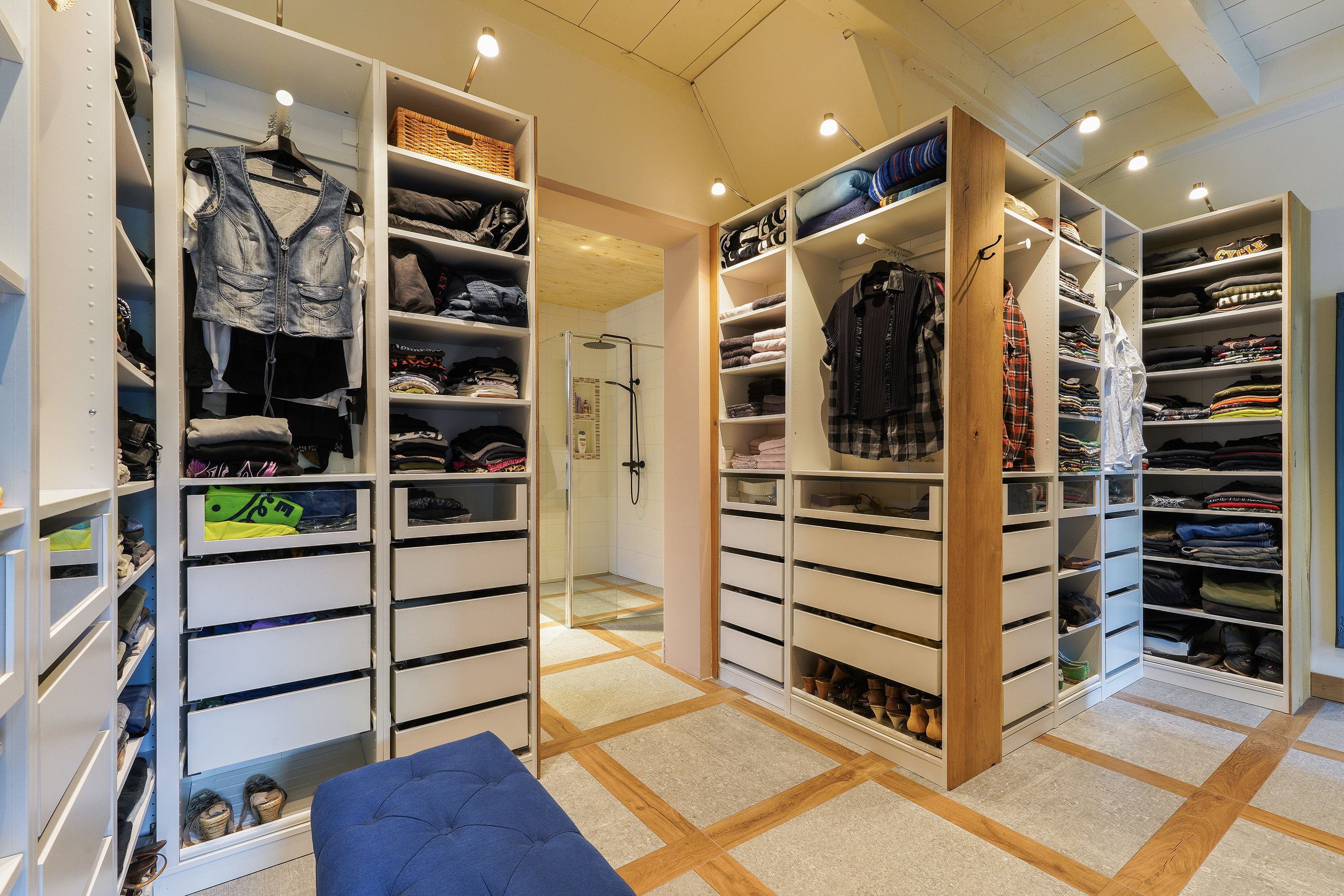 Despite its impressive dimensions, the home feels logical and comfortable. It is fully life-cycle proof. On the ground floor you will find, in addition to the spacious living room, a very generous bedroom, a large walk-in closet and a spacious bathroom. There is also a complete laundry room with ample storage and a sink.