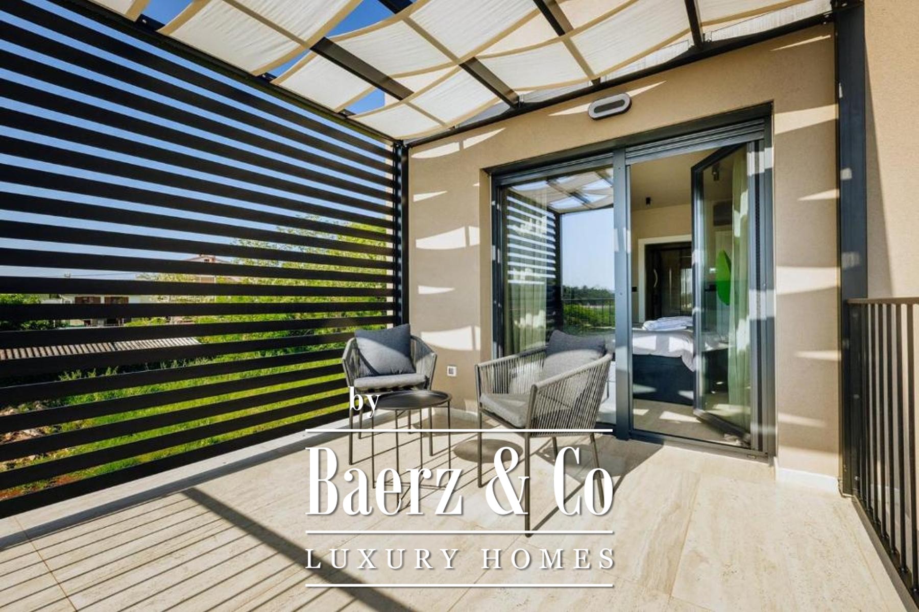 covered terrace.The landscaped yard of 540 m2 is adorned with a swimming pool surrounded by a sunbathing area, a lawn with Mediterranean plants, and private parking, creating an ideal place for relaxation and enjoyment. Special attention has been paid to the quality of construction and equipment - PVC joinery with mosquito nets and electric shutters, air conditioning and heat pump, alarm system, and video surveillance ensure maximum safety and comfort.This house is the perfect choice for those who want a new, modernly equipped home in the heart of Istria, close to all facilities such as shops, restaurants, and cafes.The price includes VAT, and the buyer does not pay real estate tax.For more information or to arrange a viewing, please contact us.