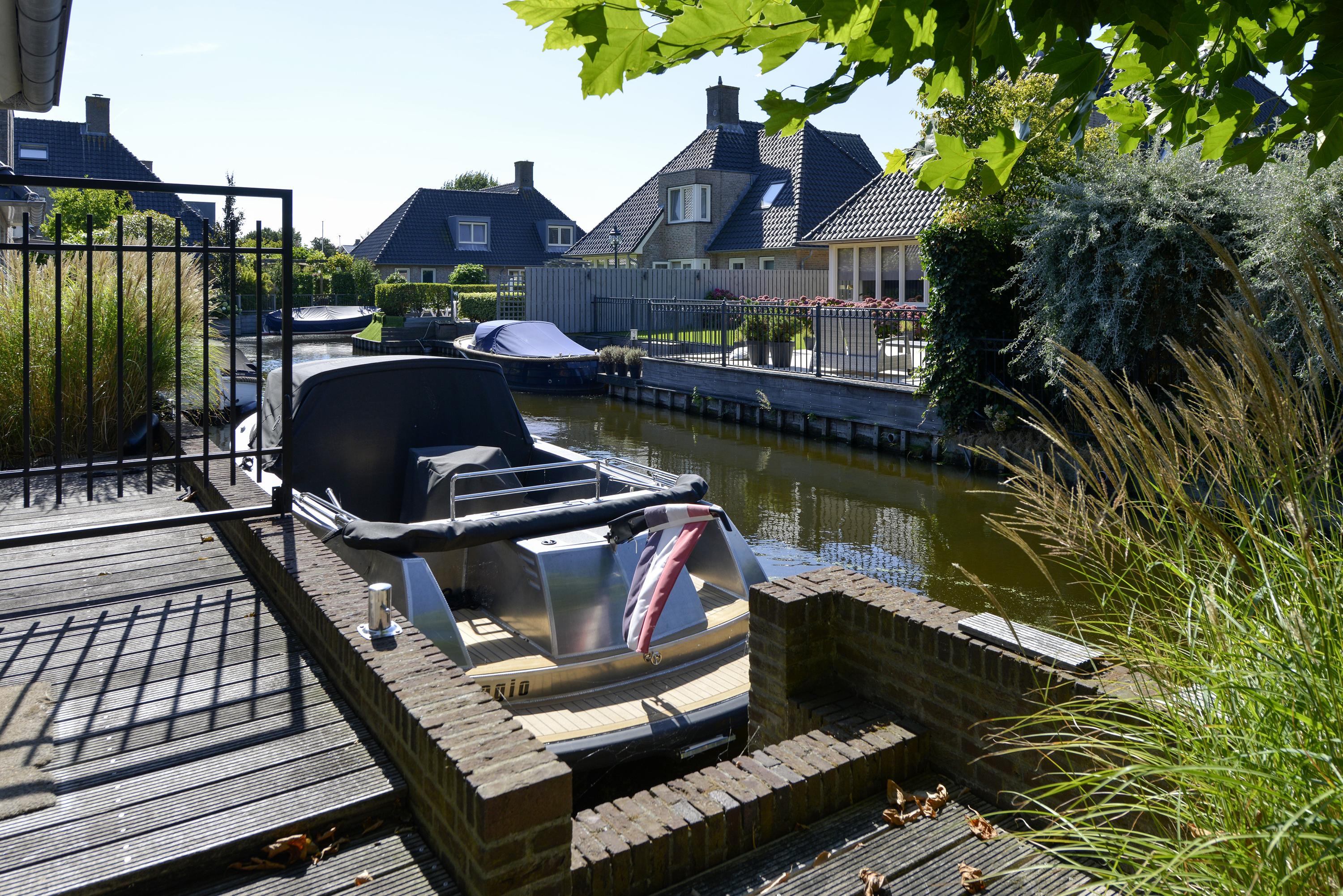 Built in 2004, living area 232m², volume 946m³, plot size 610m², + approx. 151m² of property in the jointly owned plot of 2,657m², consisting of navigable water and a ramp for sloops and boats.