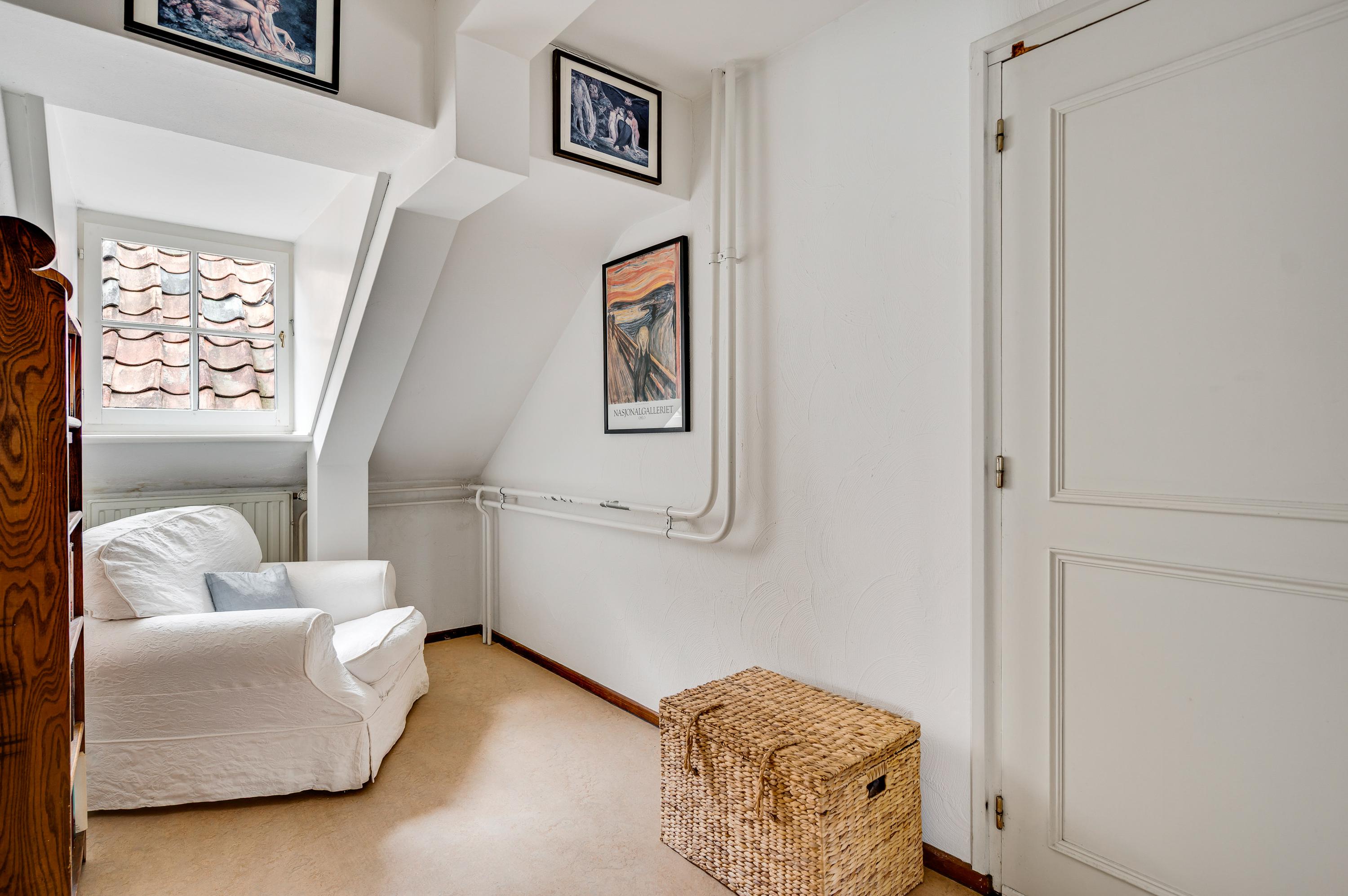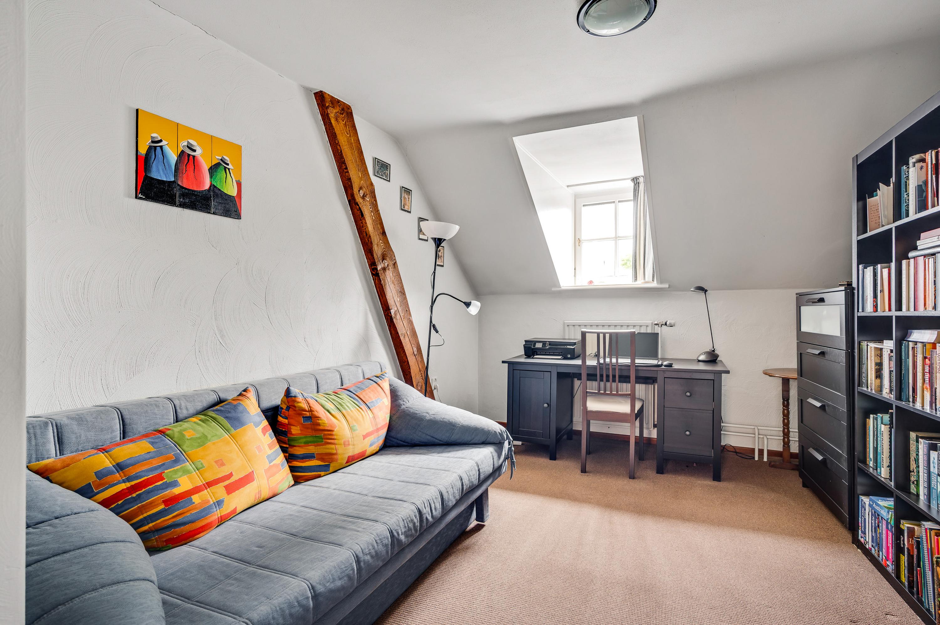 The upstairs room on the ground floor is multifunctional and also accessible from the living room. The wooden plank flooring gives this space a warm atmosphere.