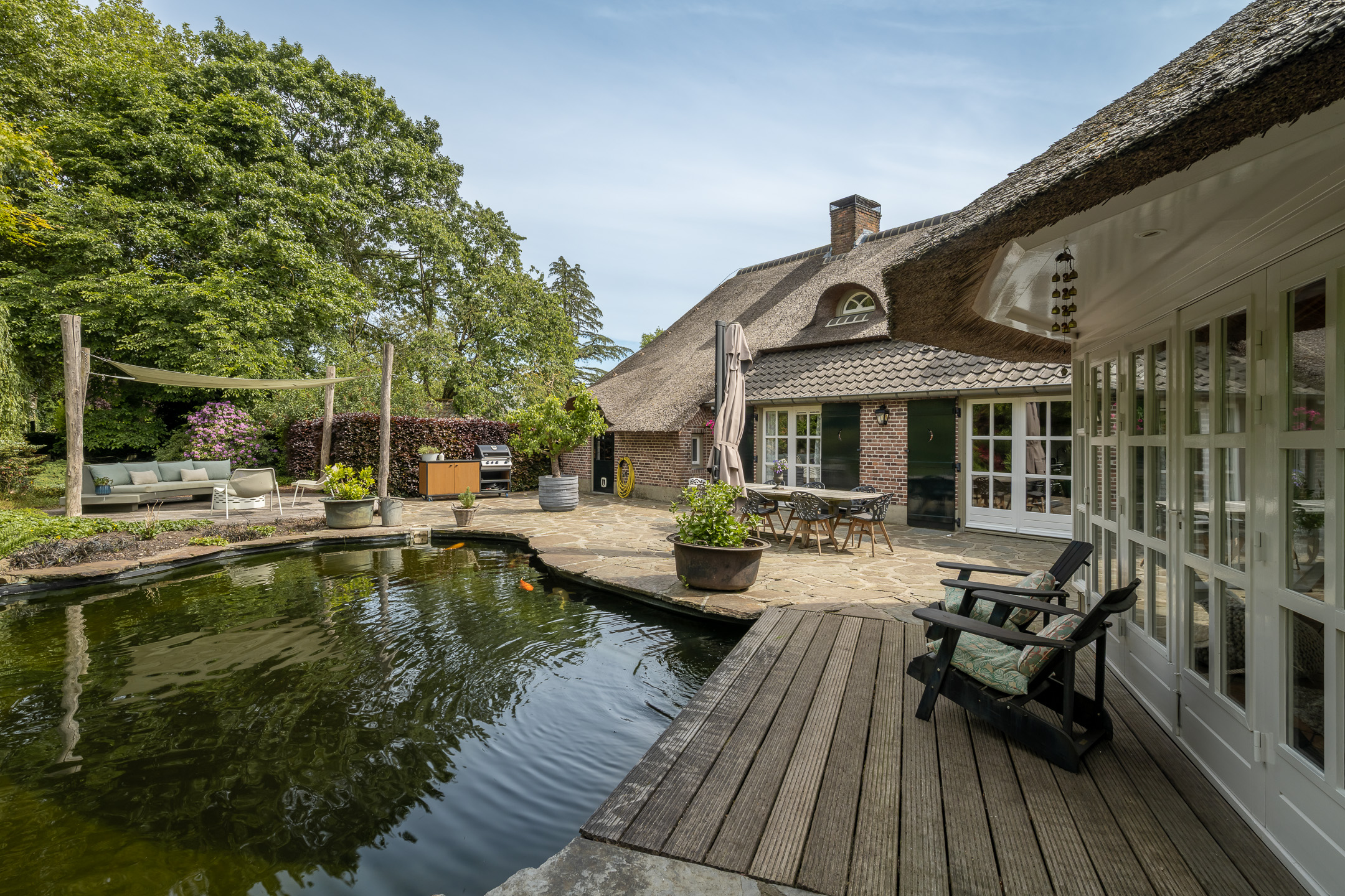 Set on approximately 1 hectare of land, the estate offers a park-like garden with mature trees, a pond, and multiple terraces. For equestrian enthusiasts, there are stables, a fully fenced paddock, and direct riding access to the Bedafse Bergen trails. Additional features include a fruit orchard, vegetable garden, natural pasture pond, animal shelter, an authentic water well, and even a converted baker’s cottage serving as a charming chicken coop.