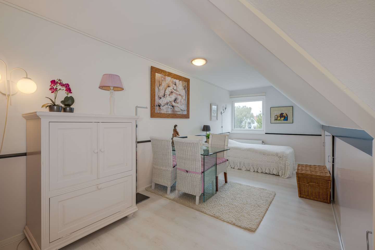 Via a loft ladder you reach the spacious storage loft, perfect for storing seasonal items. Here is also the central heating system. There is enough space in the attic to create one or two extra rooms.