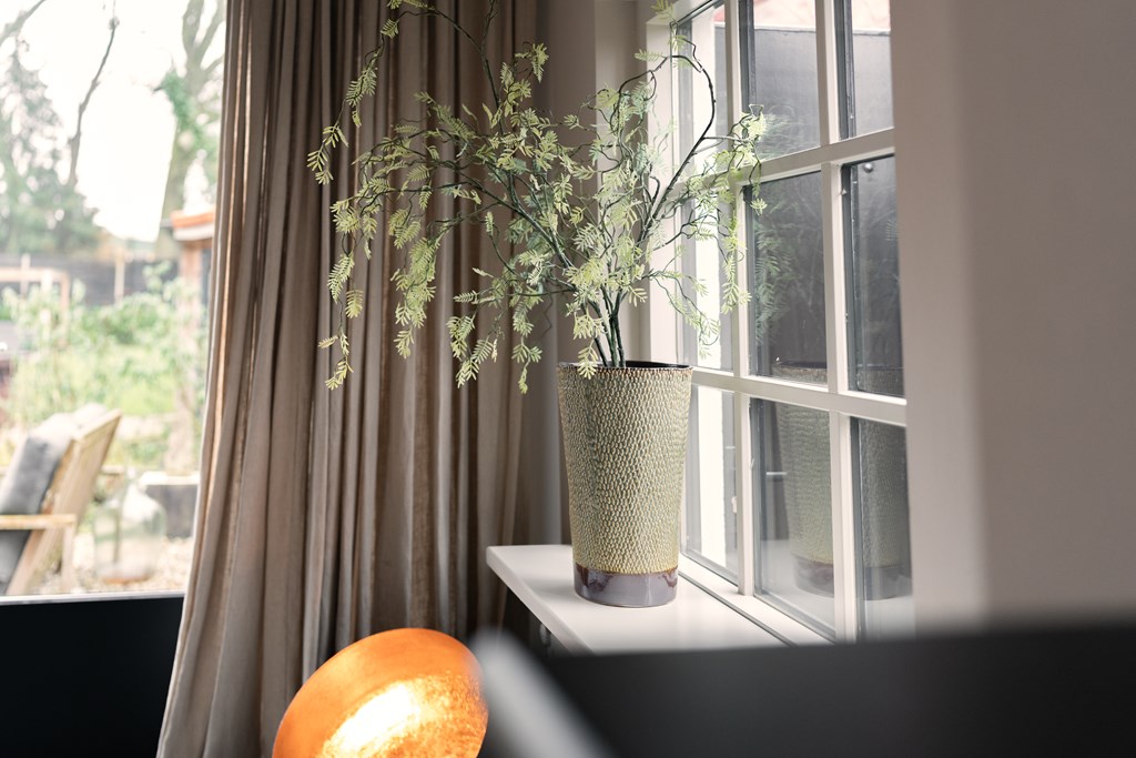 Villa Veenendaal stands as a testament to thoughtful restoration and bespoke craftsmanship. This 1937 villa, 'Domus Paterna', is gracefully set along Kerkewijk, offering 160 m² of living space and a generous plot of 1,043 m². The property exudes authenticity, with features such as a vestibule, original glass-in-lead, a living room en-suite, and a staircase with a landing. Expanses of light and classic finishes define each room, while a modern veranda with wood stove and bar overlooks lush, landscaped gardens for privacy and outdoor enjoyment.