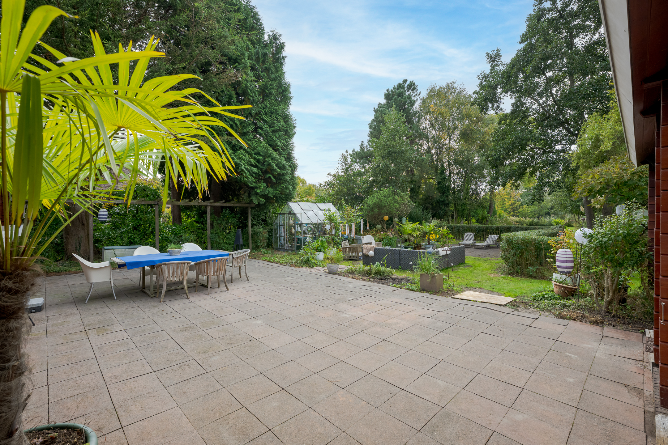 In truly the most beautiful location in Warmond, at a dead end, nestled among trees and water features, lies this truly unique villa. The house itself is a so-called Finn House, a highly sustainable wooden house in typical Scandinavian colors, making it a perfect fit for the green and watery surroundings.