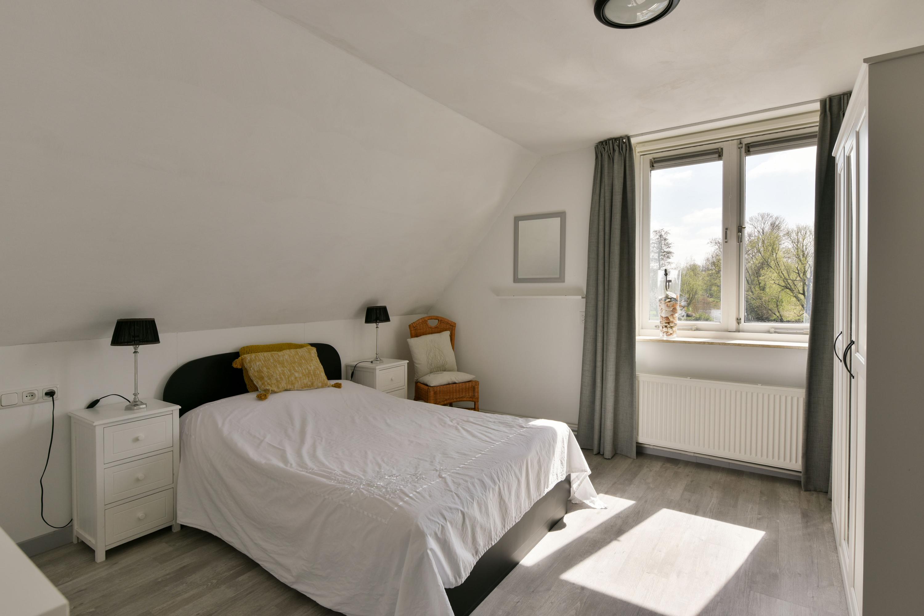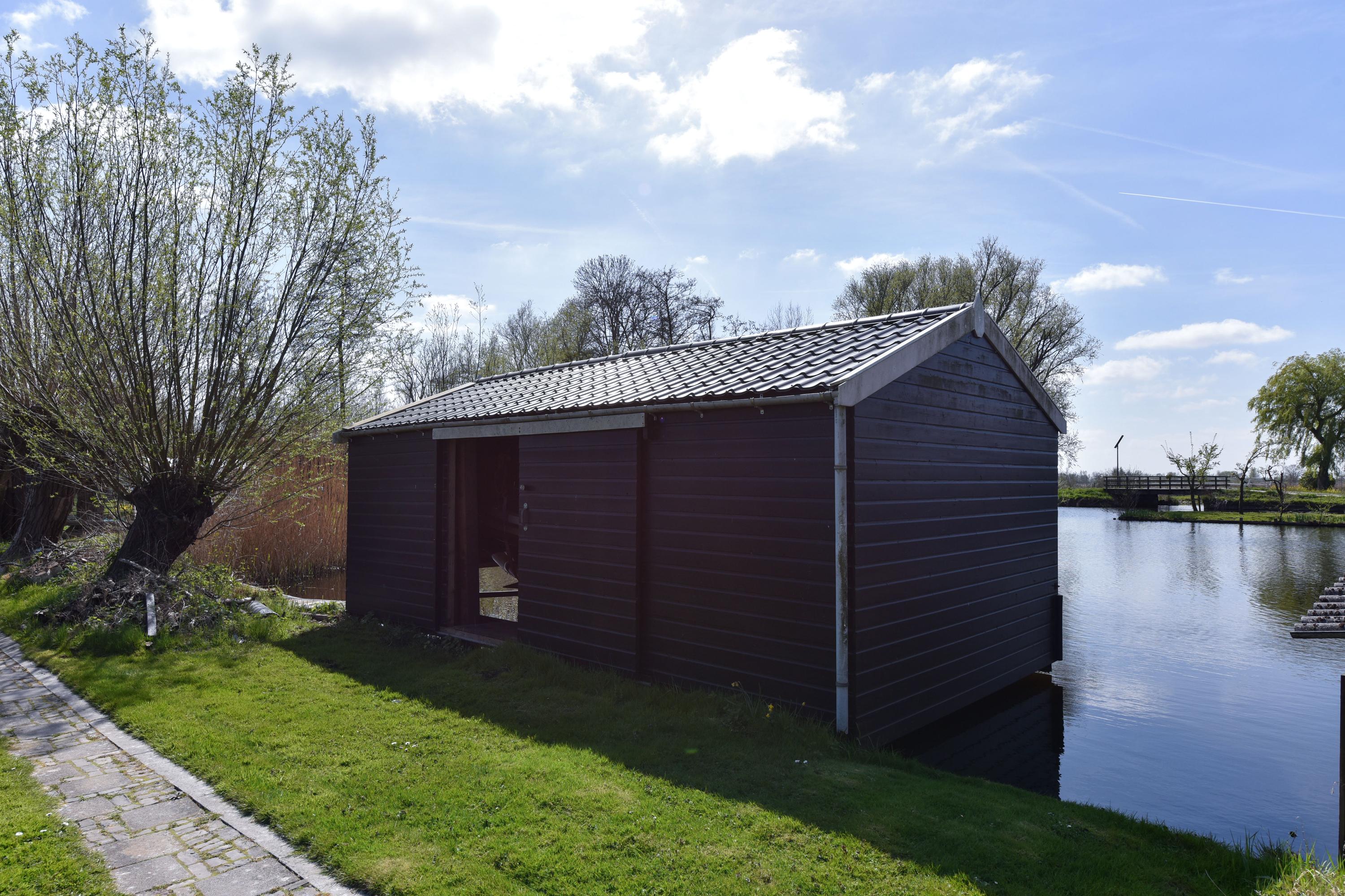 The main residence welcomes you with a light-filled hallway, spacious living area, and expansive views across the water. Large sliding doors, underfloor heating, and modern insulation create a sense of refined comfort. The open kitchen is fully equipped for both daily living and entertaining, while outdoor terraces and a well-kept garden provide tranquil vantage points across the water, with mooring access for your boat and sailing opportunities to the surrounding lakes.