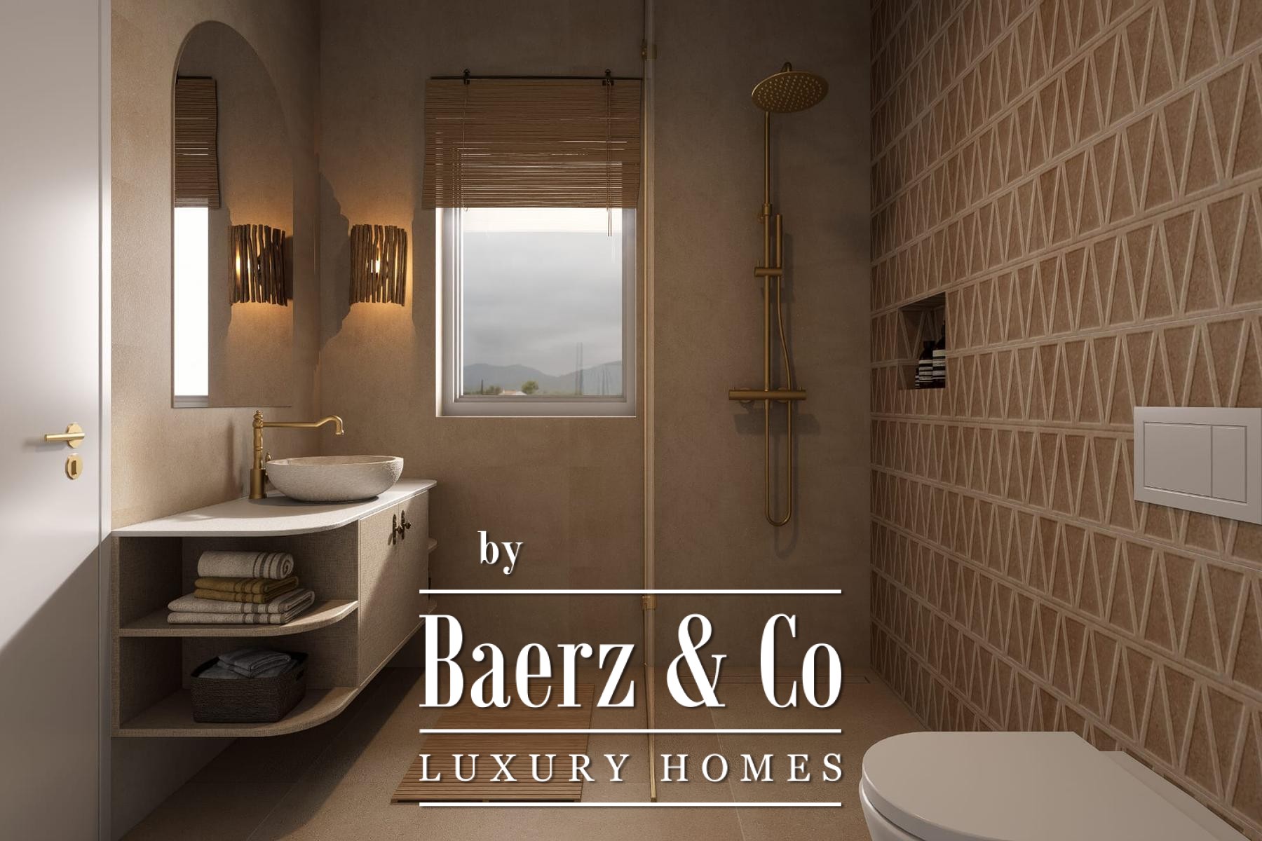 Upstairs, three bedrooms and two bathrooms open onto a covered terrace, encouraging a flow of air and light. Thoughtful material choices—stone, wood, and high-quality finishes—anchor the villa in understated luxury, while inviting warmth.