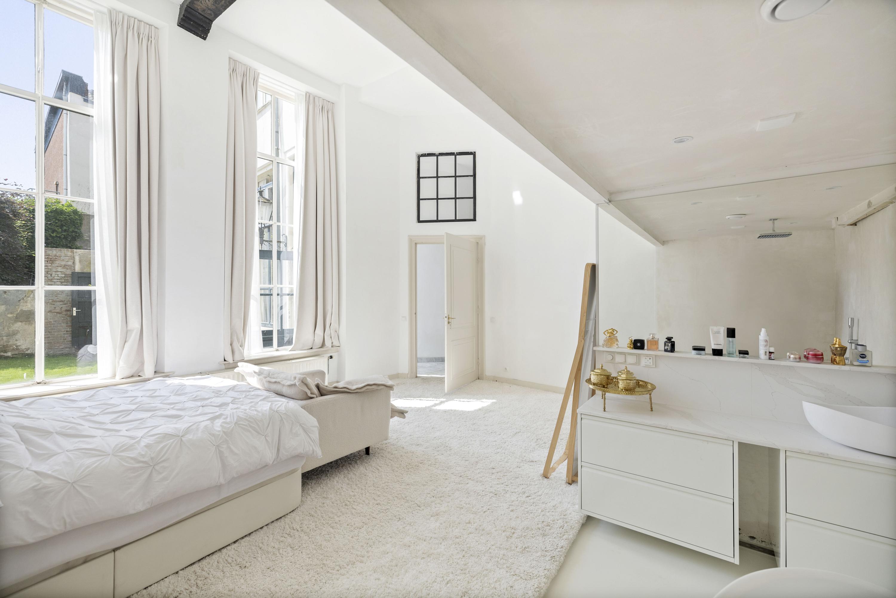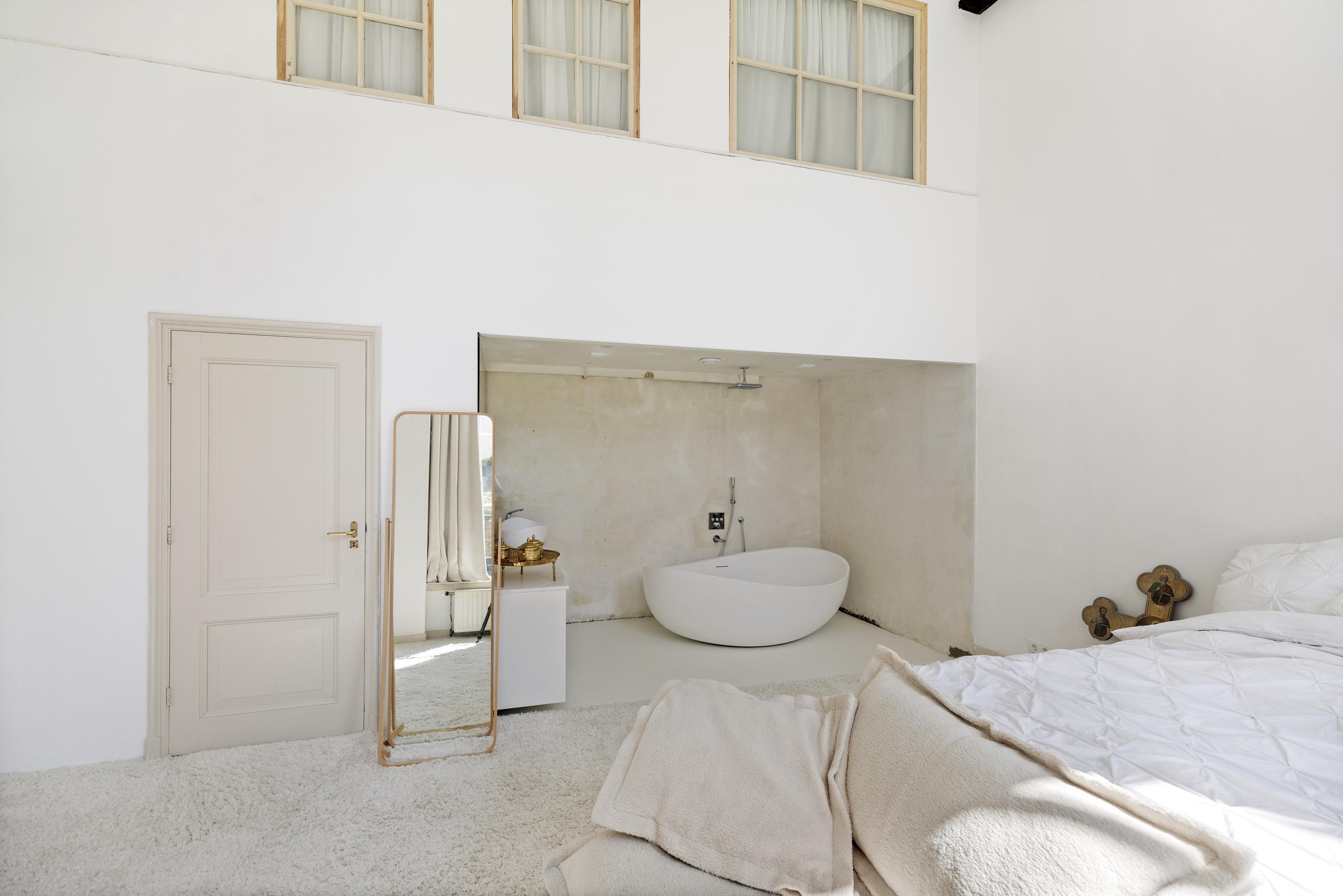 Three bedrooms are arranged for both privacy and connection. The master suite is complemented by a plush ensuite with a freestanding bathtub and double sinks, while the mezzanine reveals a fourth bedroom with a private bathroom and walk-in closet. Contemporary comfort is woven throughout, yet the romantic grandeur of the late nineteenth century endures.