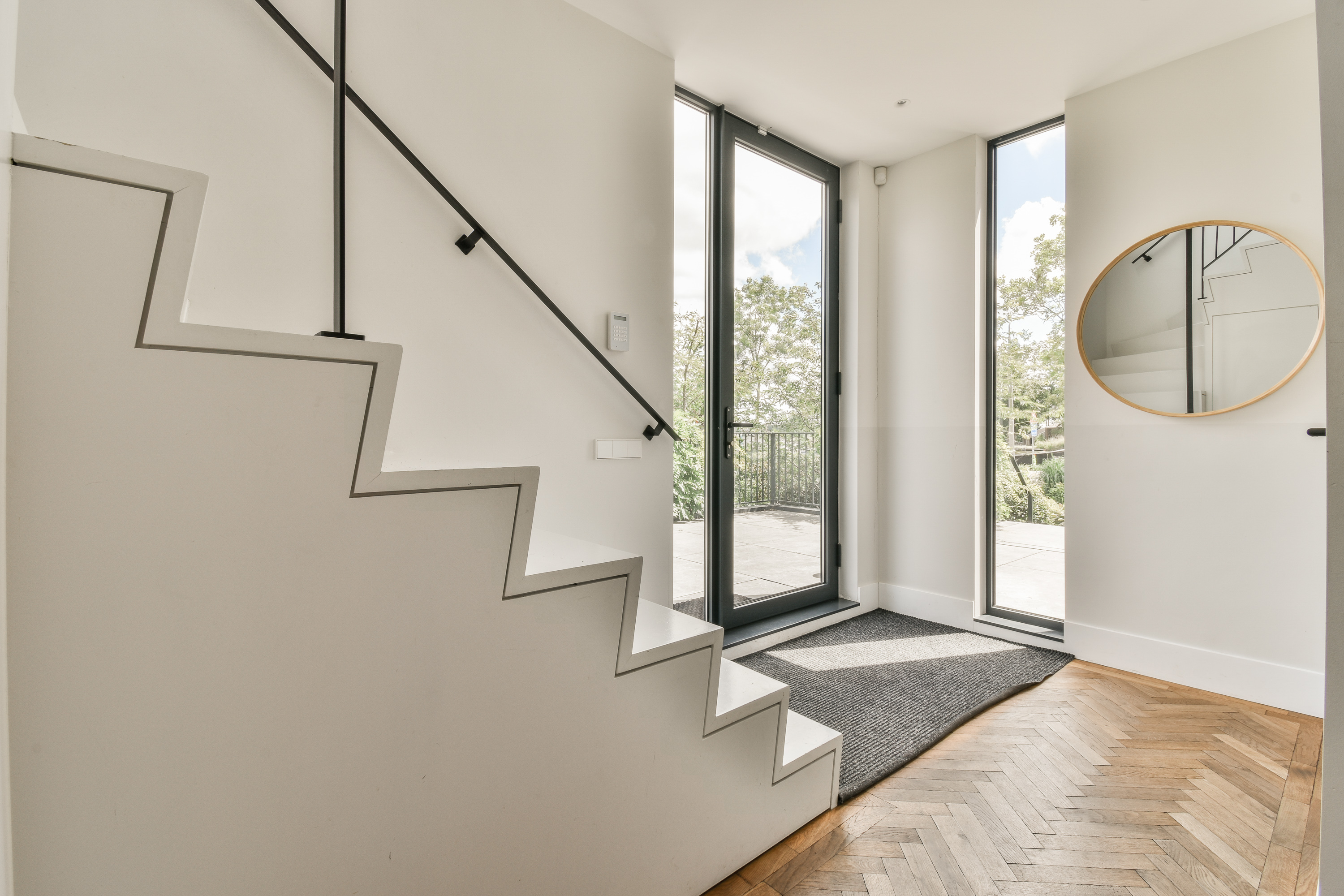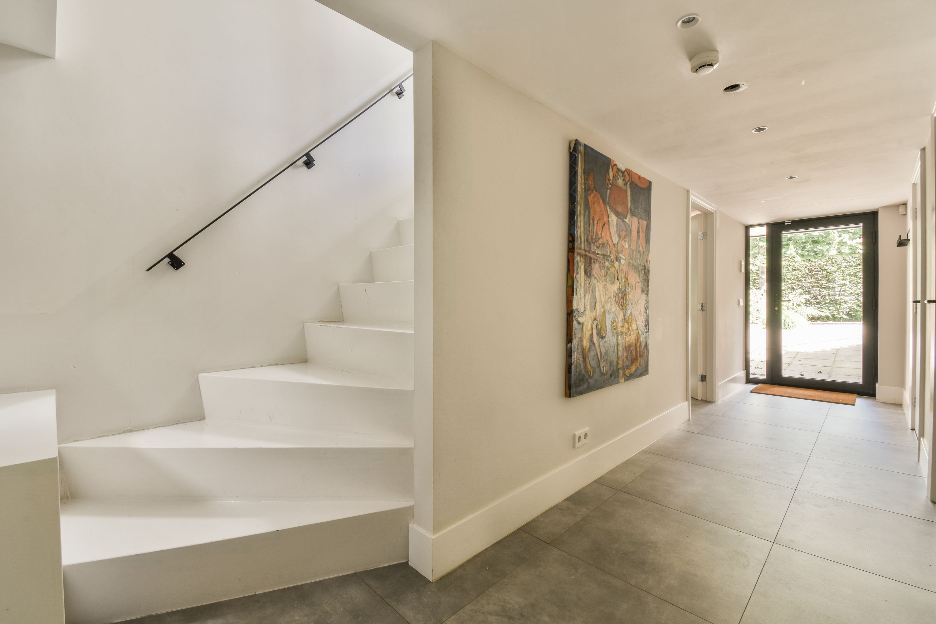 De bel-etage is te betreden via de representatieve entree aan de voorzijde van de woning. Bij binnenkomst vind je een gastentoilet en de centrale hal met toegang tot de sfeervolle woonkamer. Aan de achterzijde bevindt zich de royale woon-eetkeuken, compleet uitgerust met hoogwaardige inbouwapparatuur. Dankzij grote raampartijen en meerdere toegangen tot de buitenruimte, ervaar je hier veel licht en openheid. Rondom deze verdieping bevinden zich één groot terras : aan de zijkant en aan de voorkant – perfect voor buiten dineren of ontspannen in de zon.