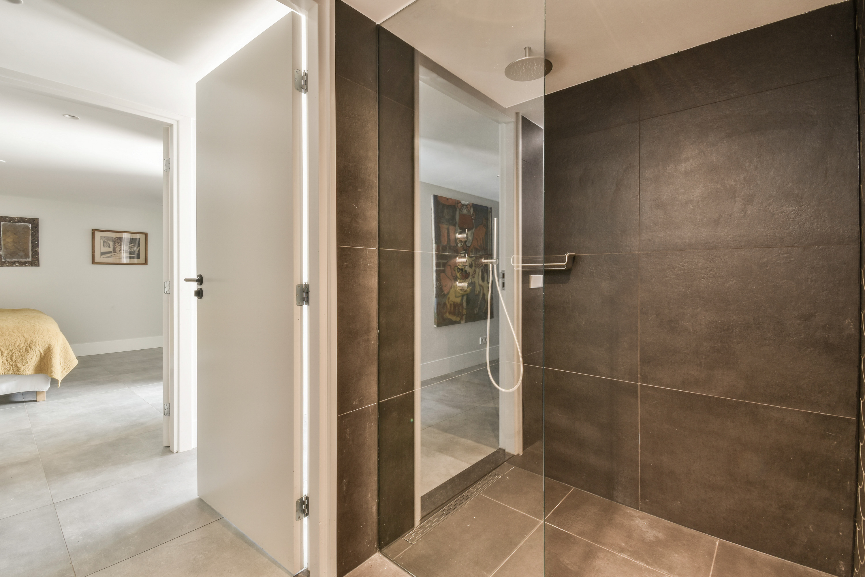 Via de trap bereik je de eerste verdieping, waar rust en privacy centraal staan. Aan de voorzijde, met uitzicht op de Amstel, ligt de ruime master bedroom. Deze kamer beschikt over een royale inloopkast en een luxueuze en-suite badkamer, voorzien van een vrijstaand ligbad, dubbele wastafel, ruime inloopdouche en toilet. Aan de achterzijde van de verdieping bevindt zich een tweede ruime slaapkamer, eveneens met een eigen badkamer. Deze badkamer is uitgerust met een dubbele wastafel, inloopdouche en toilet. De overloop verbindt beide kamers op harmonieuze wijze en versterkt het gevoel van comfort en ruimte.